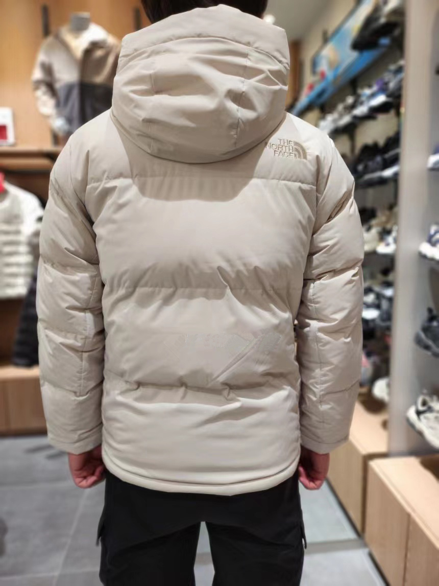 High-quality Guangzhou version The North Face hooded down jacket. 90% white duck down. Colors: Black, Off-white. Sizes: S to 3XL.