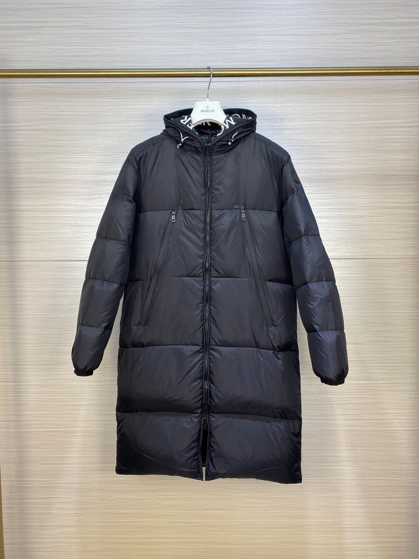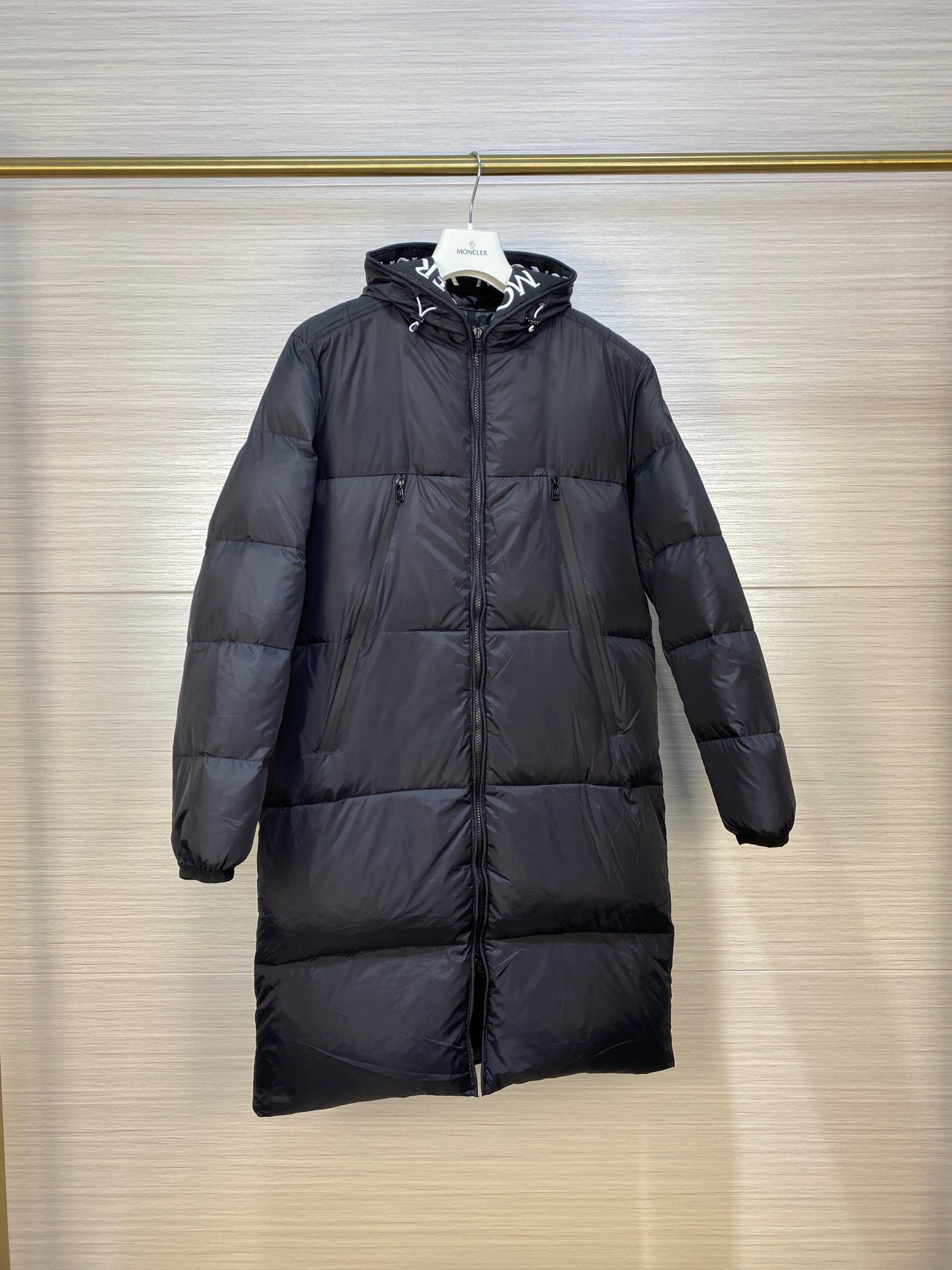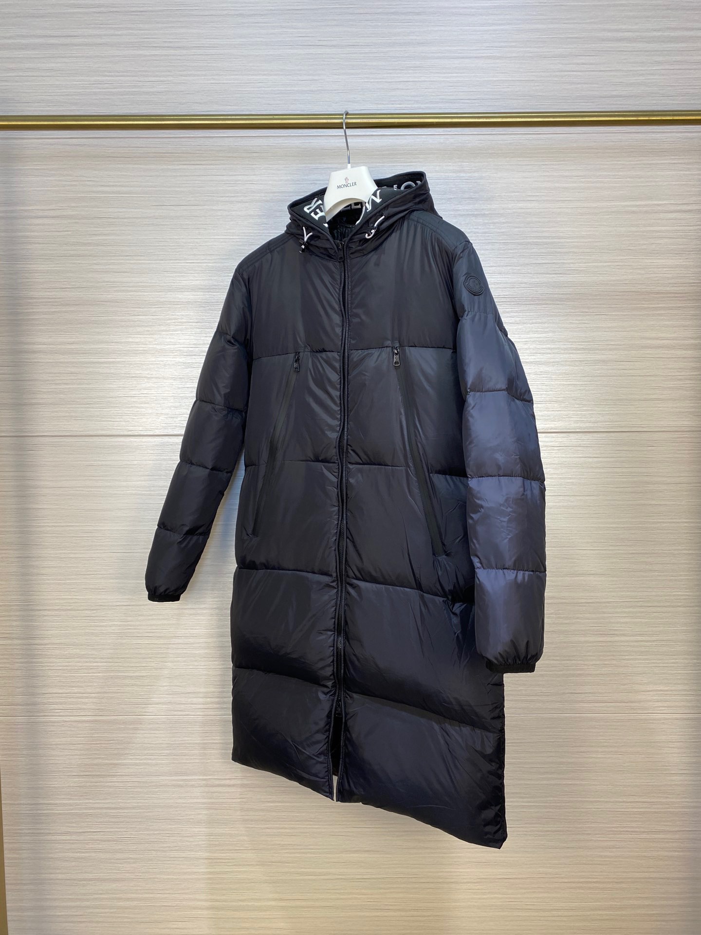 Guangzhou high version Moncler long embroidered ribbon hat black label Montclar jacket nods to those 80s brands that made Moncler a global icon. Waterproof with optimal insulation, and embroidered logo printed on the hood and trim, always on the podium. Down quilted nylon raincoat fabric jacket. Die-cast zipper front placket and pockets. Moncler's embroidered ribbon trim inside the hood and jacket closure. Adjustable elastic drawstring hood and hem. Technical knitted cuffs, feel the Moncler logo