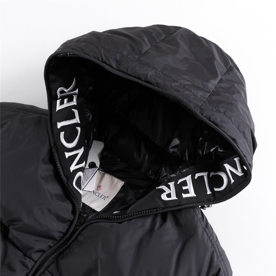 Guangzhou high version Moncler long embroidered ribbon hat black label Montclar jacket nods to those 80s brands that made Moncler a global icon. Waterproof with the best insulation, and embroidered logo printed on the engine cover and trim, always on the podium. Down quilted nylon raincoat fabric jacket. Die-cast zipper front placket and pockets. Moncler's embroidered ribbon trim inside the hood and jacket closure. Adjustable elastic drawstring hood and hem. Technical knitted cuffs, feel the Moncler logo