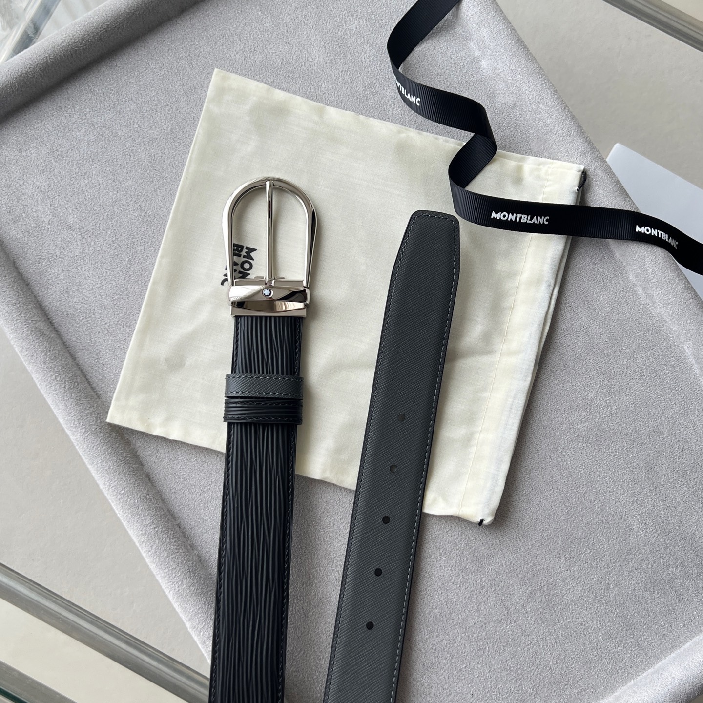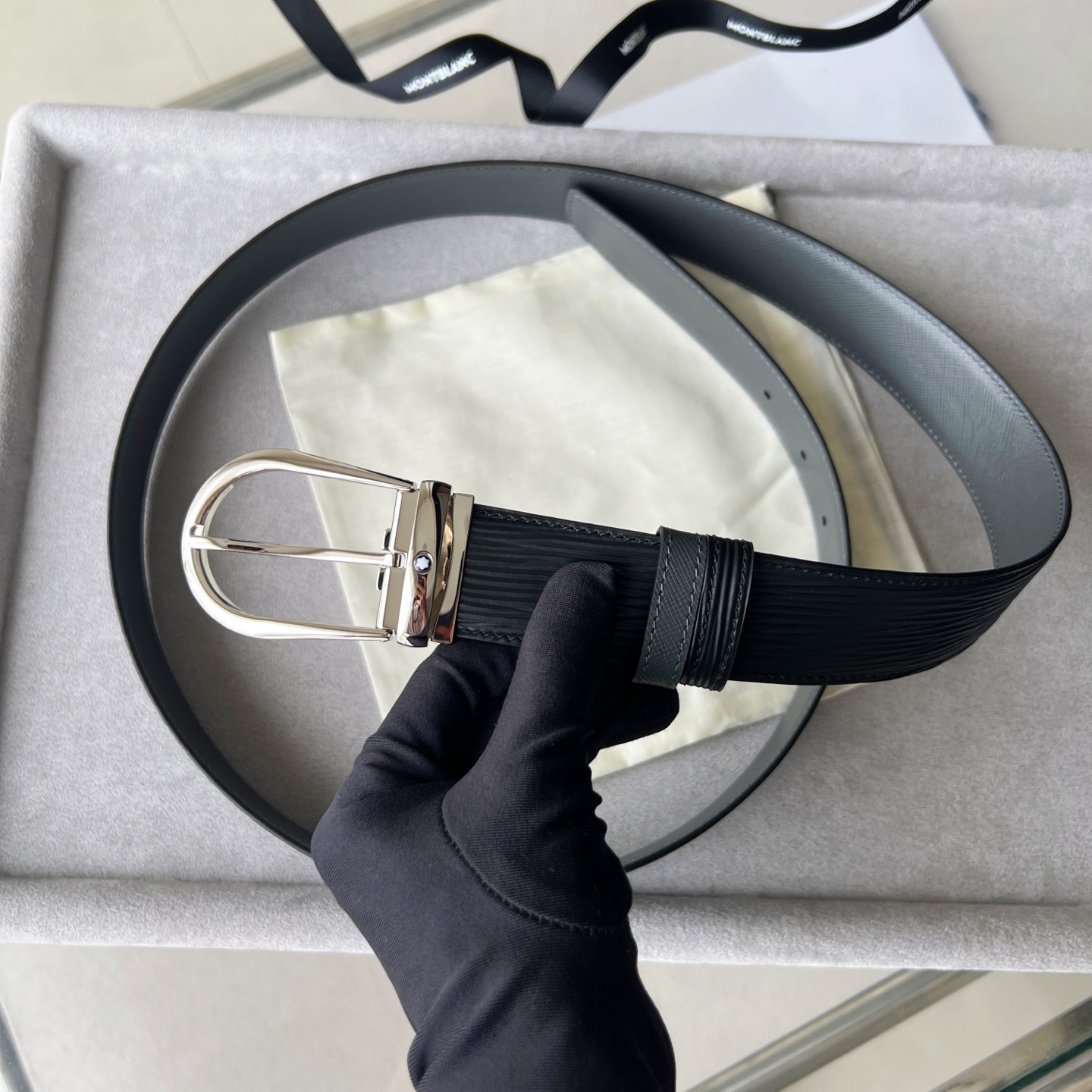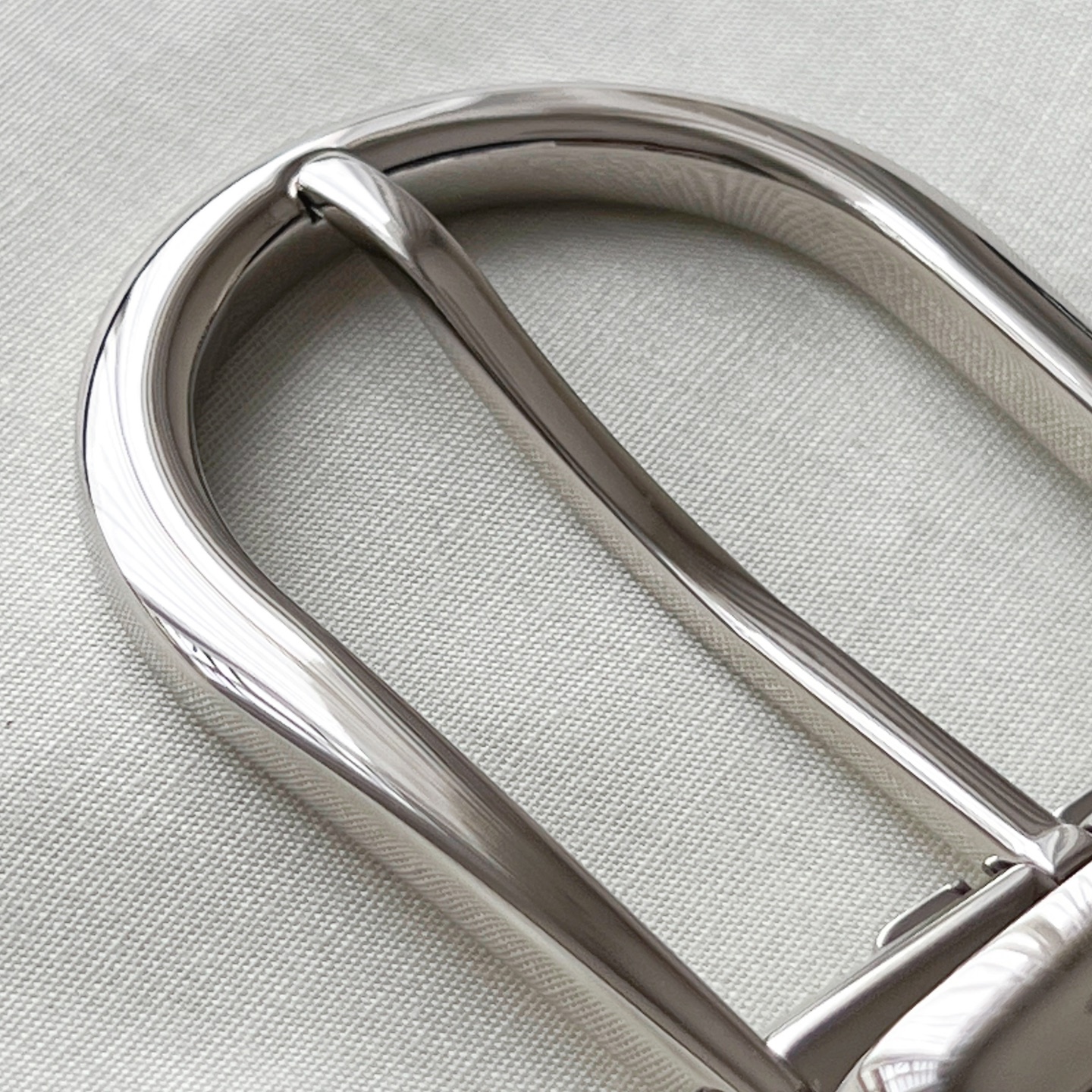 Horseshoe buckle black gray leather belt (35mm) Horseshoe palladium-plated and ruthenium-plated pin buckle. Adjustable length, 3.5 cm x 120 cm, black gray leather belt. A refined accessory that blends traditional elements with modern style.