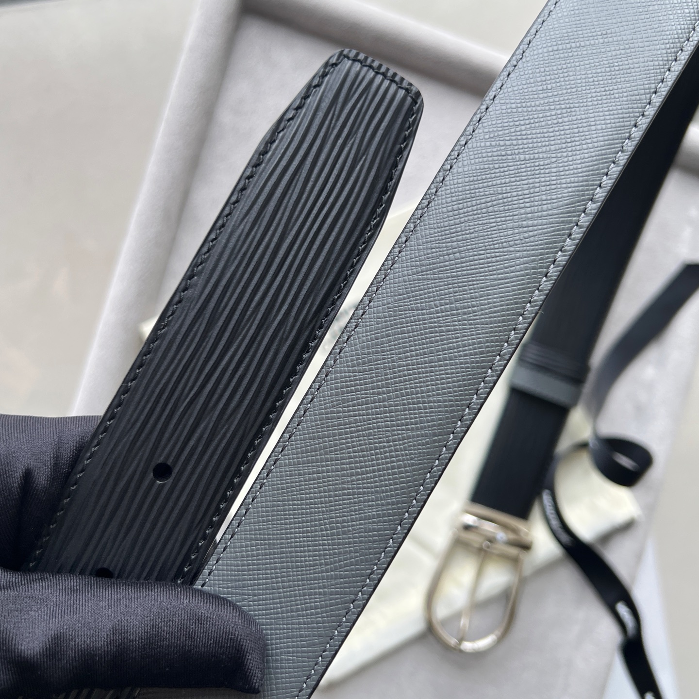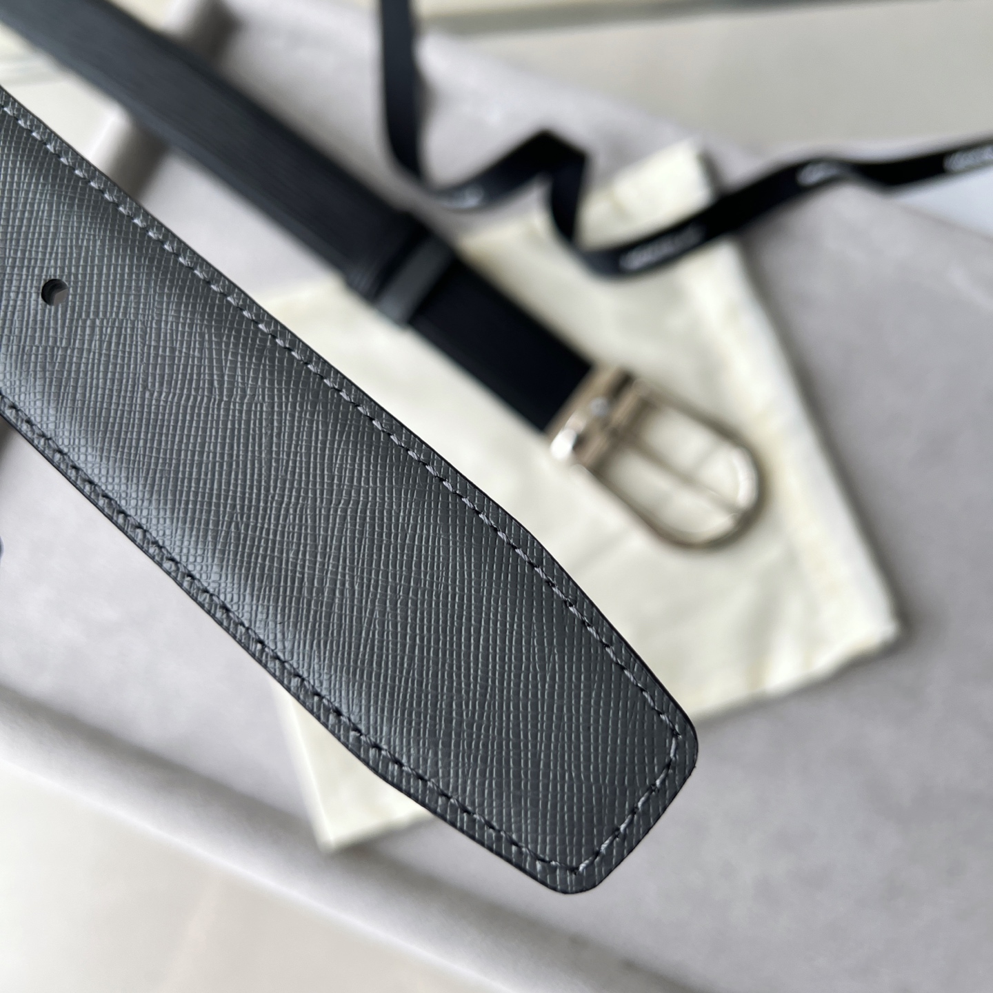 Horseshoe palladium-plated and ruthenium-plated pin buckle. Adjustable length, 3.5 cm x 120 cm, black gray leather belt. A refined accessory that blends traditional elements with modern style.