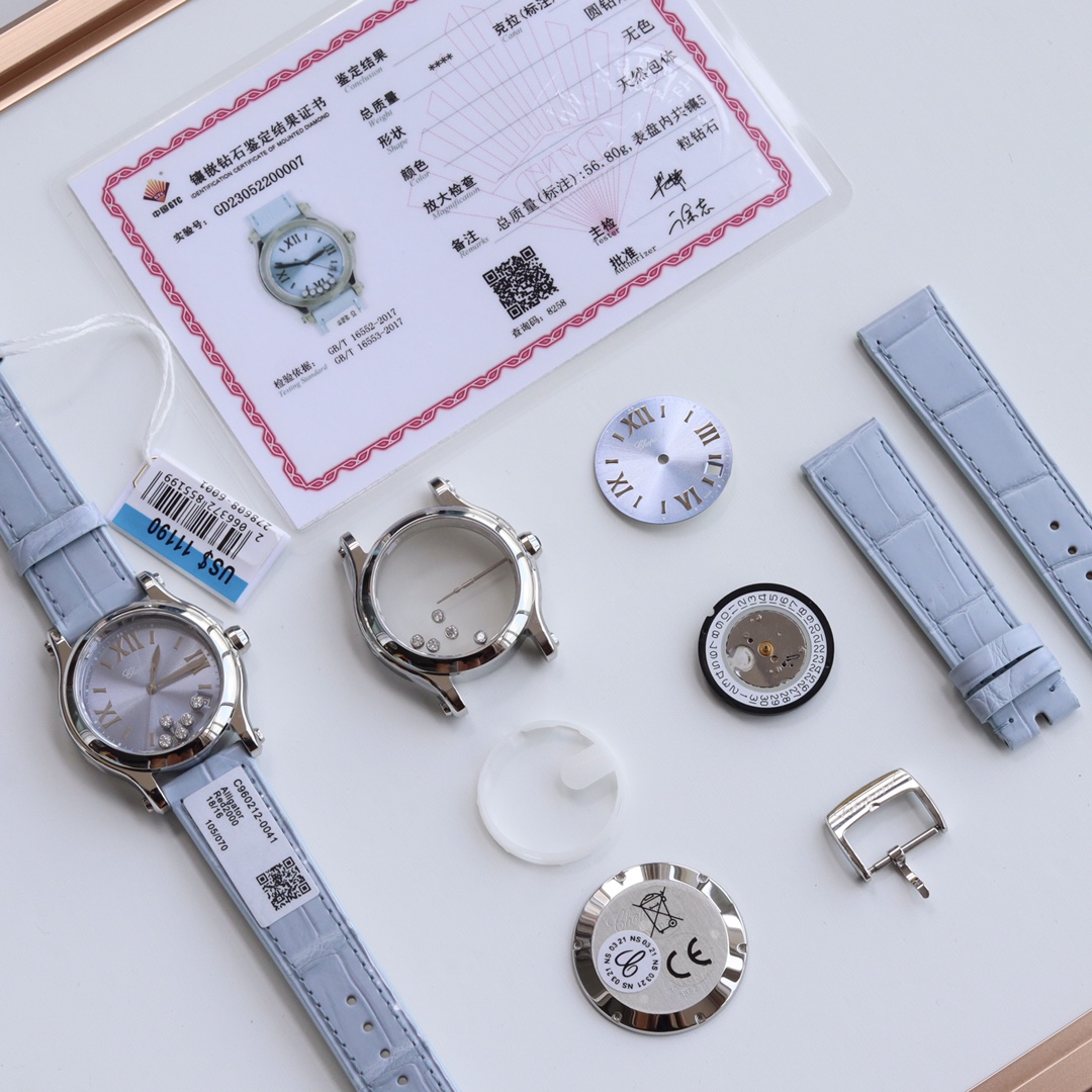 Swiss Ronda 515 movement, natural genuine diamonds.