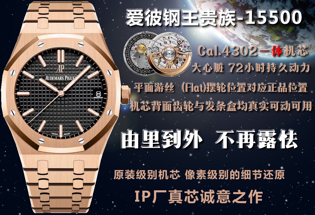 IP.Factory Pixel-Level Masterpiece – Audemars Piguet 15500 Integrated Movement 4302 Version, Steel King Aristocrat with Long-lasting Power