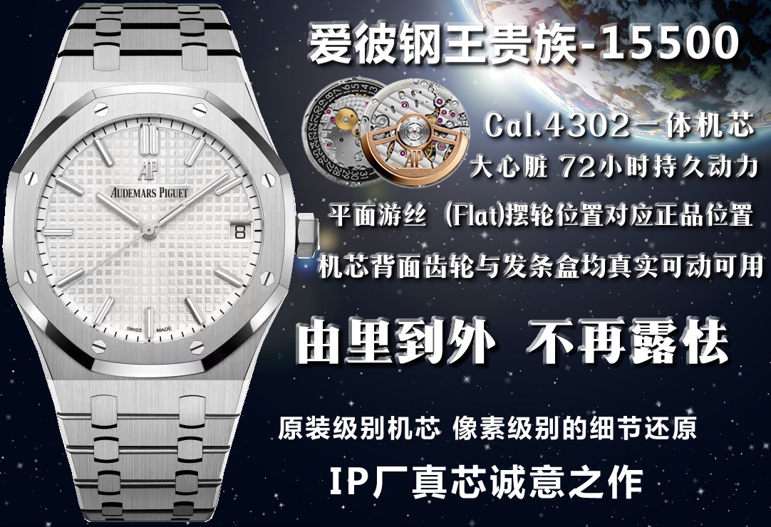 IP.Factory Pixel-Level Masterpiece - Audemars Piguet 15500 Integrated Movement 4302 Version, Steel King Aristocrat, Long-Lasting Power