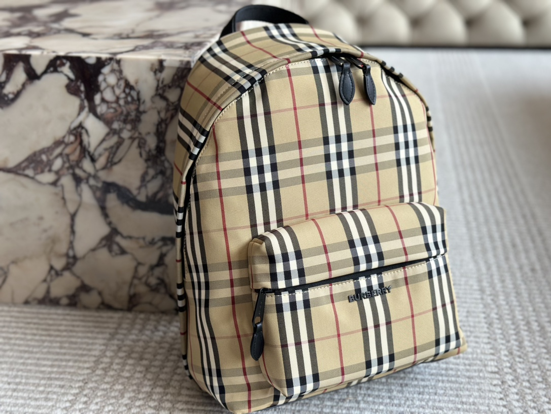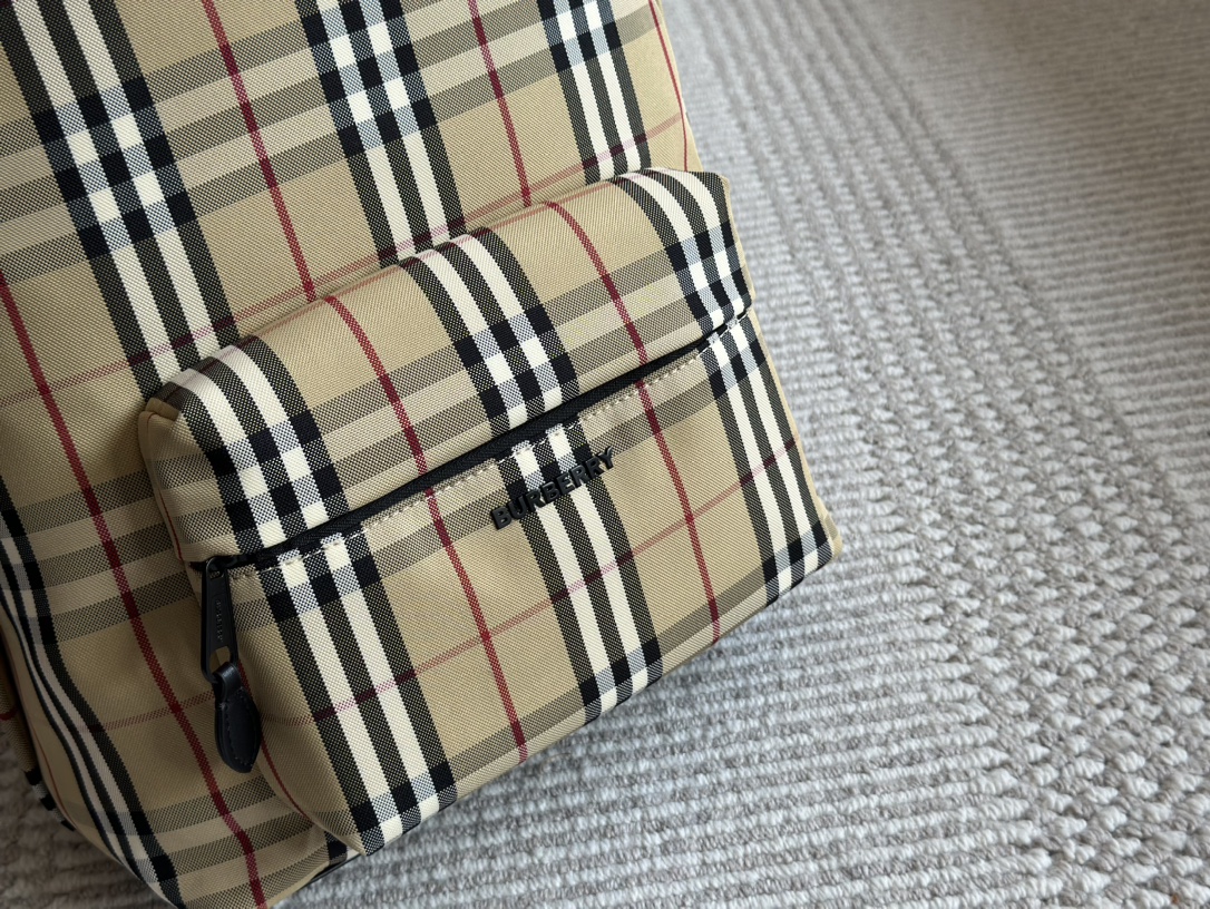 Light and spacious 30x42cm Bur backpack, inspired by Burberry Trench coat fabric, made of durable woven nylon. Highly practical.