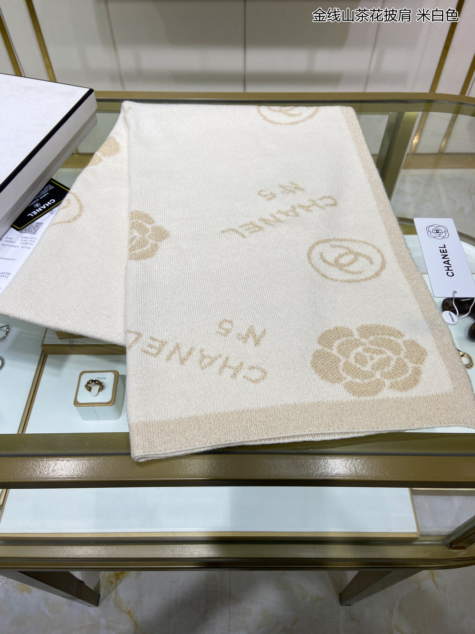 Explosive item is out, slow to grab! Top original batch, unparalleled beauty CHANEL N°5 [Gold Thread Camellia Shawl] Top high-end product [Absolutely worth collecting] Chanel's stunning versatile style, limited edition at the counter! Hard to order even with money. Top pure cashmere, gold thread jacquard, superior quality. Perfect for gifting or personal use, absolutely premium. Exclusive real-item photography! What you see is what you get, color is super accurate. Top-quality goods won't wait, special channel items, once sold, they're gone. Absolutely top-quality goods, every detail matches the counter standard! 62*195 top imported customer-supplied cashmere. Highly recommended!