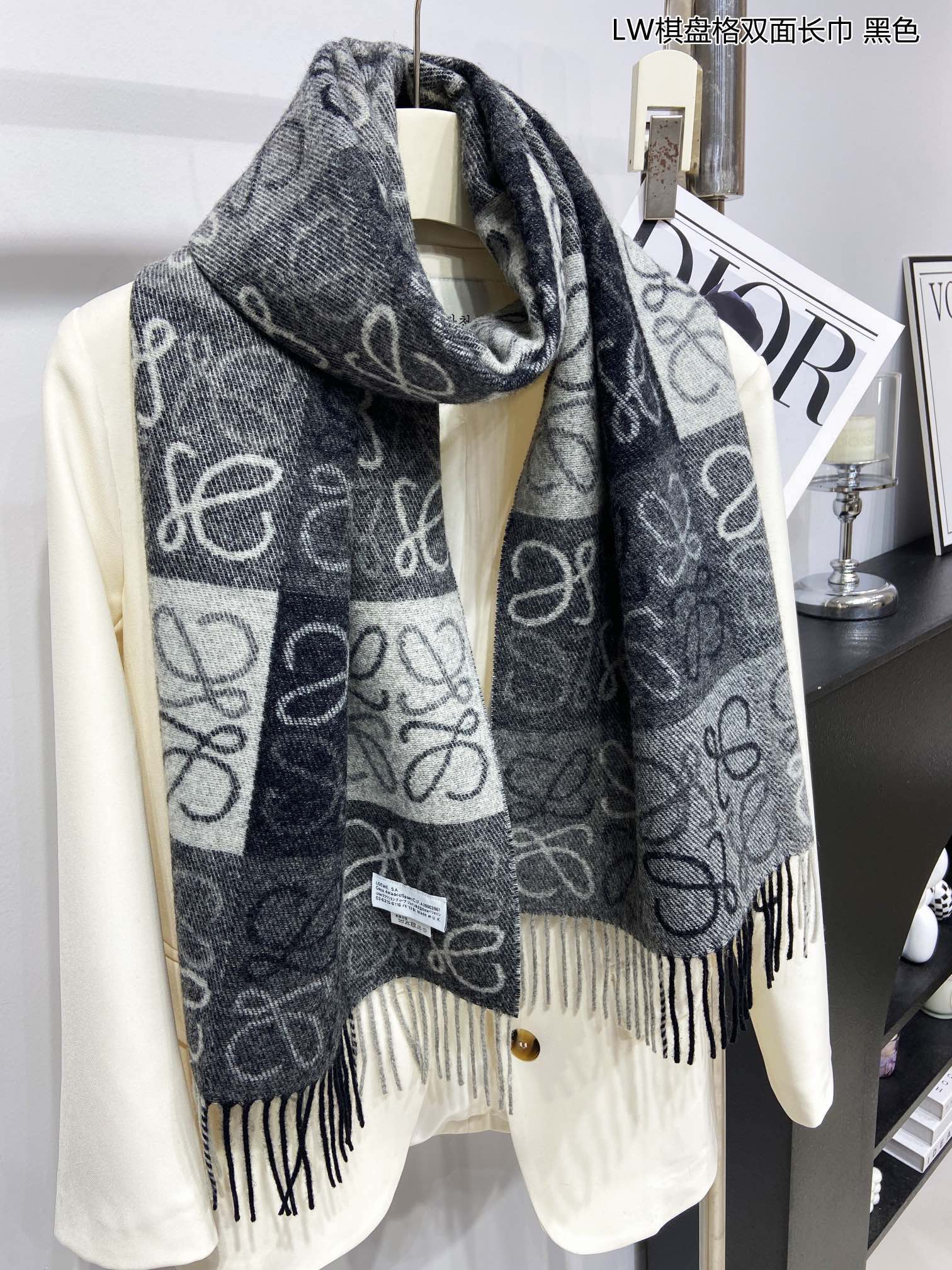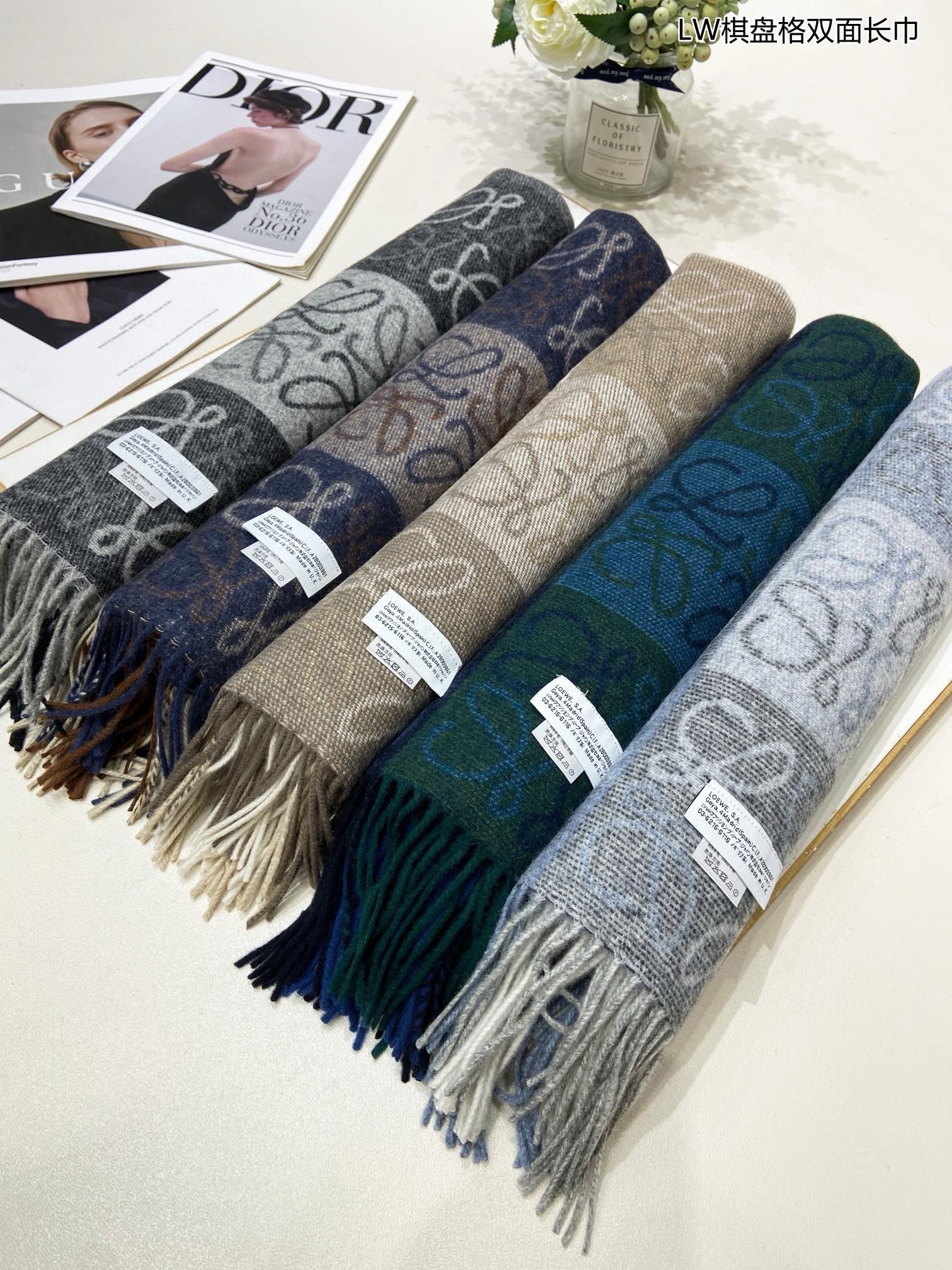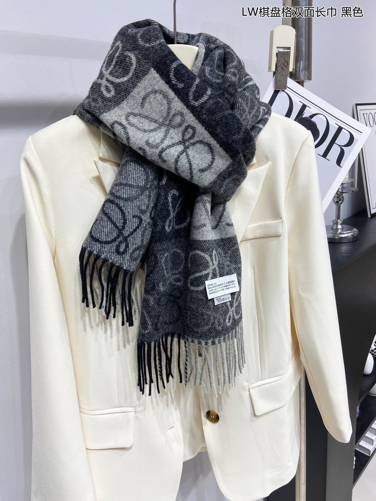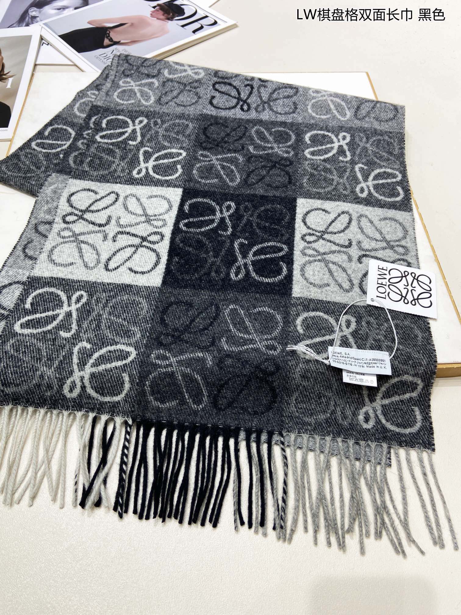 Loewe [LW Checkerboard Double-Sided Long Scarf] It's very lucky to get items from this brand, they are truly rare. They rarely take orders domestically, and the available styles are pitifully few! ! ! As a top luxury brand from Spain, Loewe upholds tradition, craftsmanship, and passion, exuding a unique Spanish aristocratic vibe! This piece is a custom window display item from the Barcelona counter! The scarf's overall composition features their brand's most classic logo-style design. Specifications: 40x200cm, 90% wool + 10% cashmere