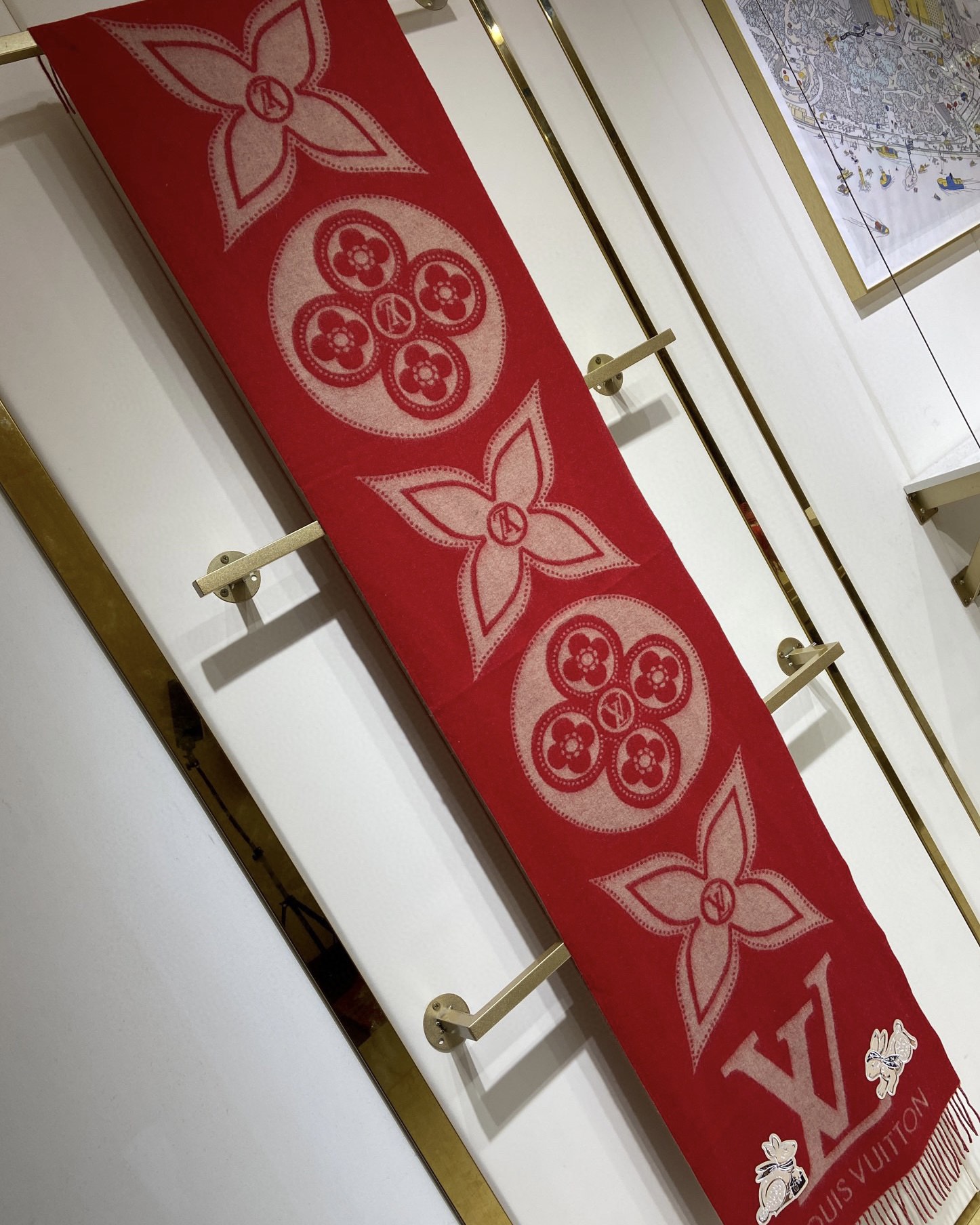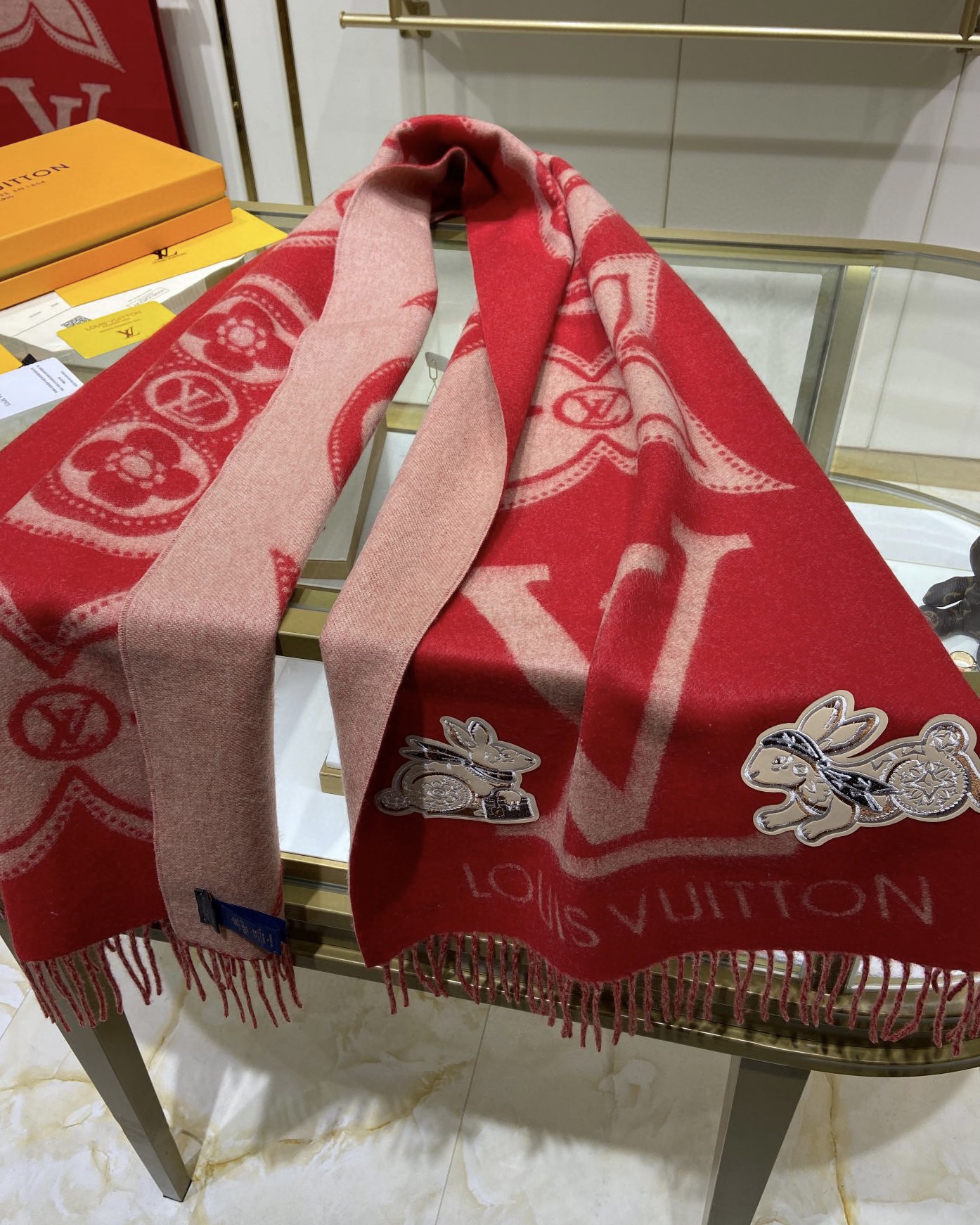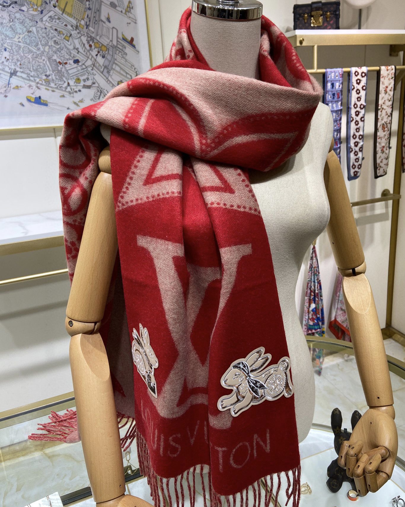 Louis Vuitton exclusive rabbit-print large cashmere scarf. Double-sided, 100% Alpine cashmere, 45x190cm. Limited daily stock.