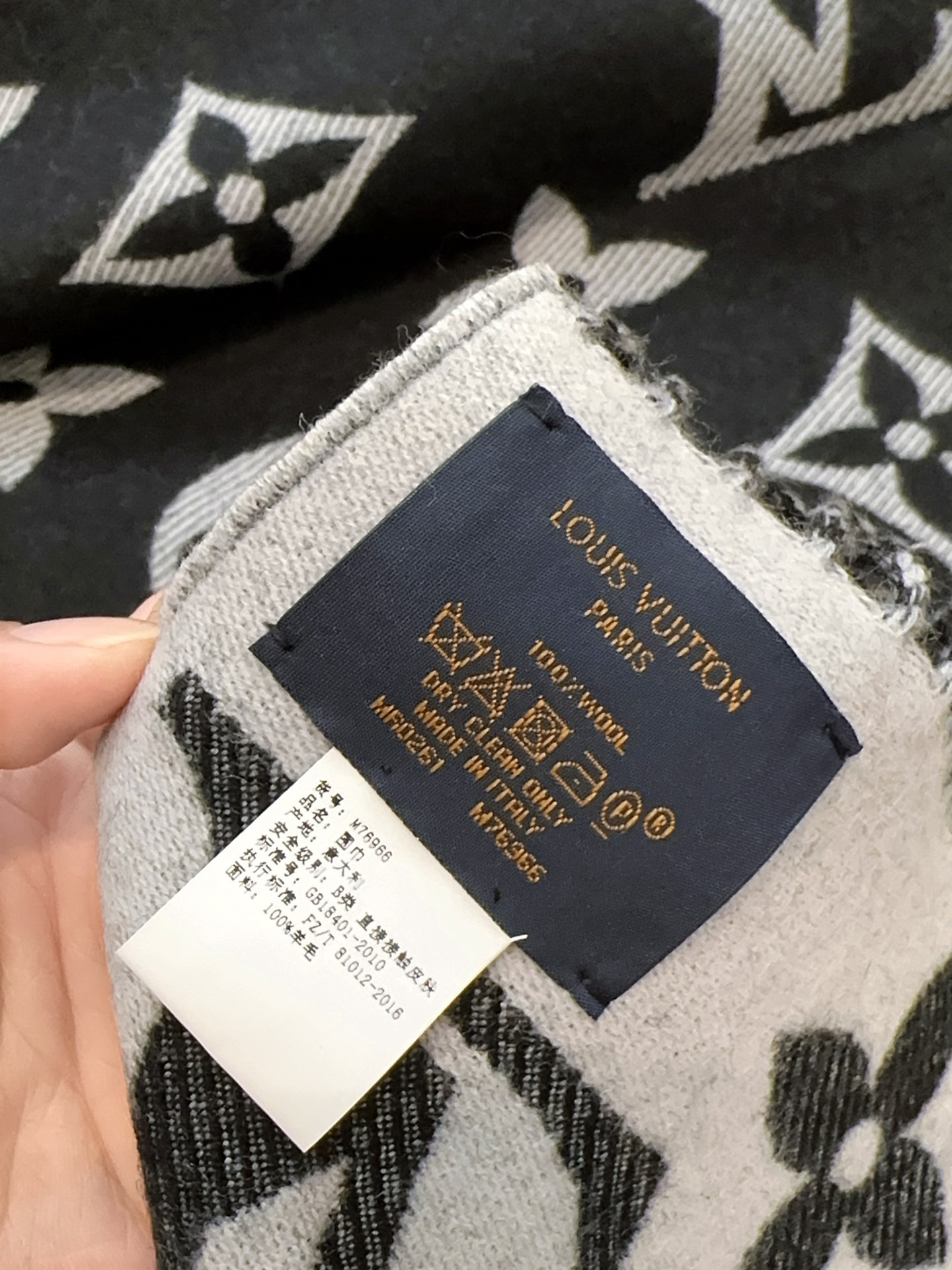Louis Vuitton's popular pink and white scarf, 100% wool with fringes, measures 186x34cm.