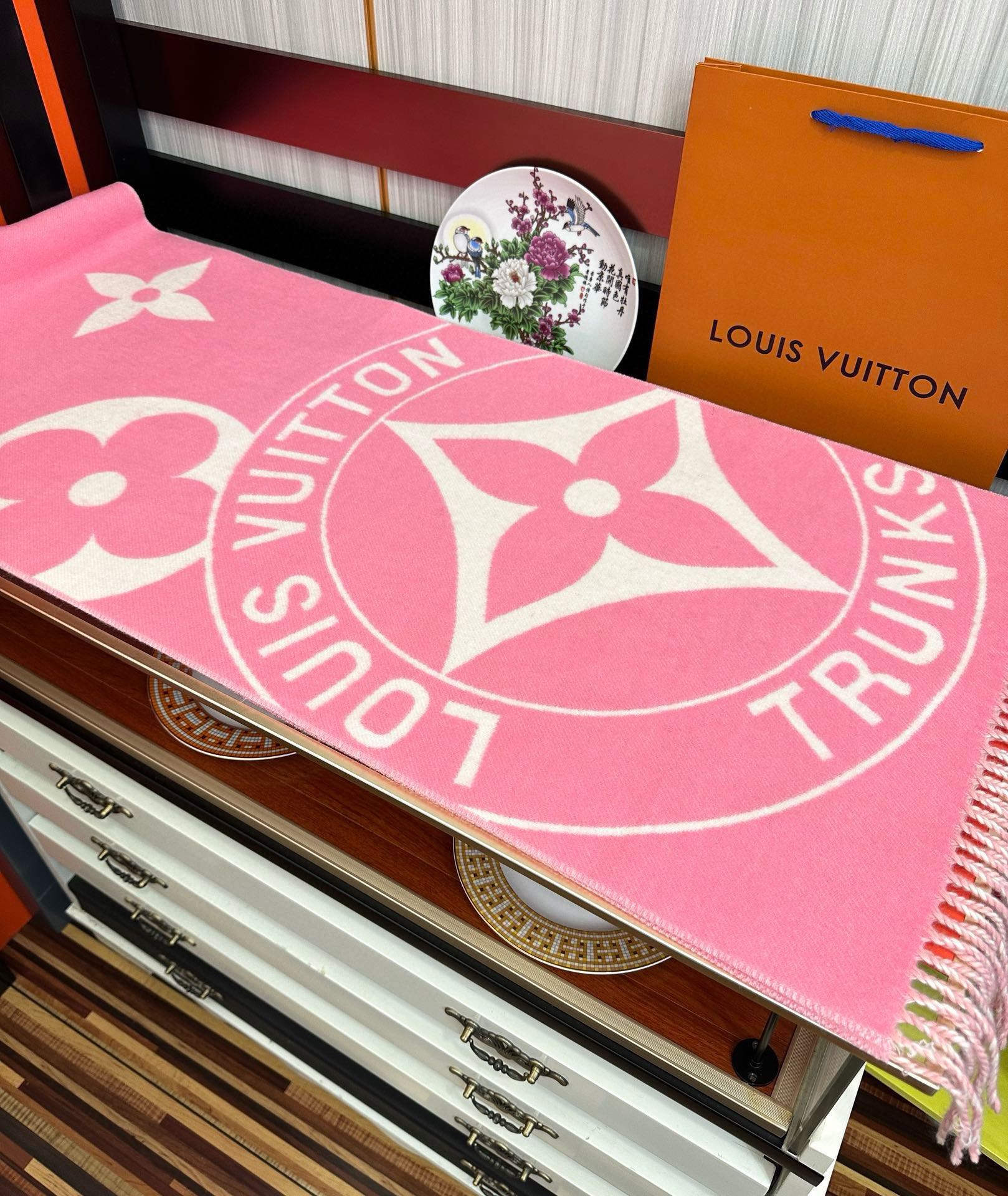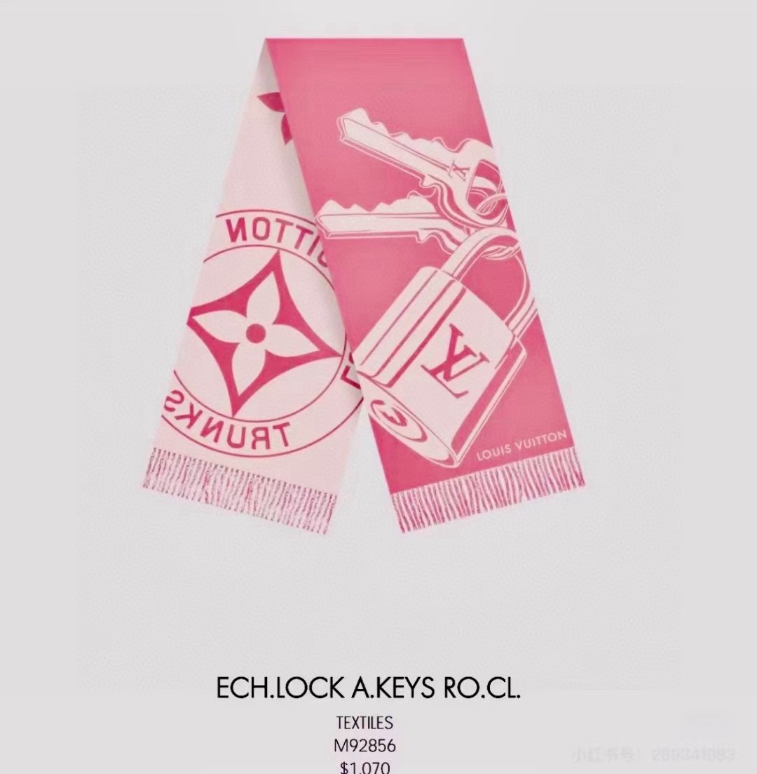 High version arrived LV new scarf🧣 Too beautiful Lock And Keys scarf made of warm plush mixed fabric [Sun] One side depicts padlock and key pattern [Smirk] Reverse side reveals Trunks round emblem, playfully tracing the brand's trunk-making heritage [Rose] Adorned with long fringe for luxurious texture. Unafraid of the cold winter winds [Celebration] Dimensions: 45x215 Material: 60% wool + 40% cashmere, 3⃣️ colors