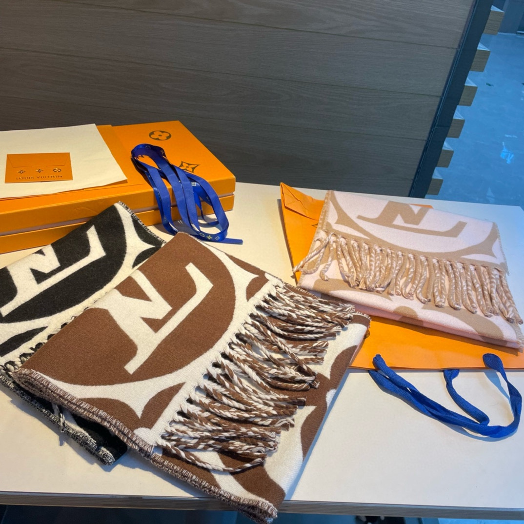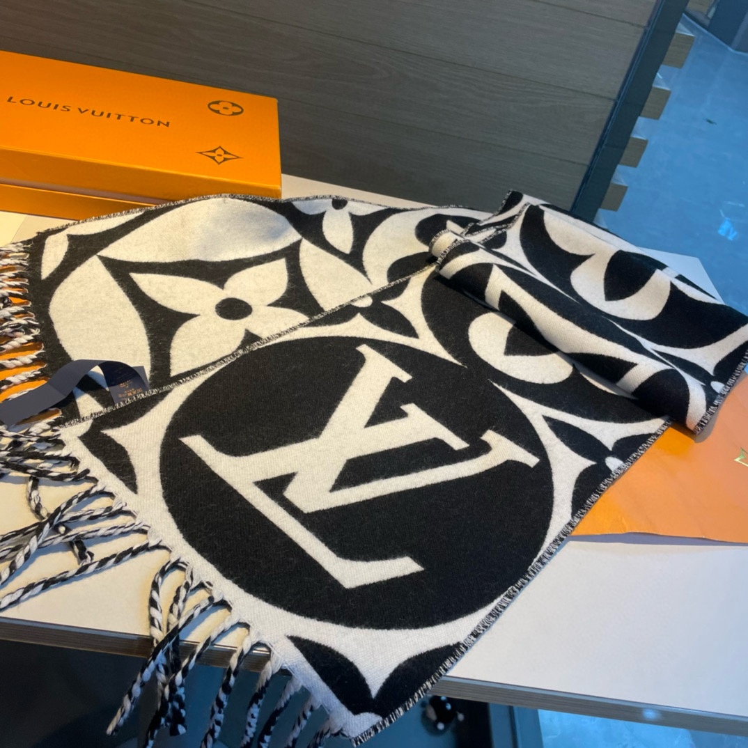 LV 23 autumn-winter new Medallion scarf, large classic letters and Monogram flowers, long fringe trim. 100% lambswool, 209x30cm.