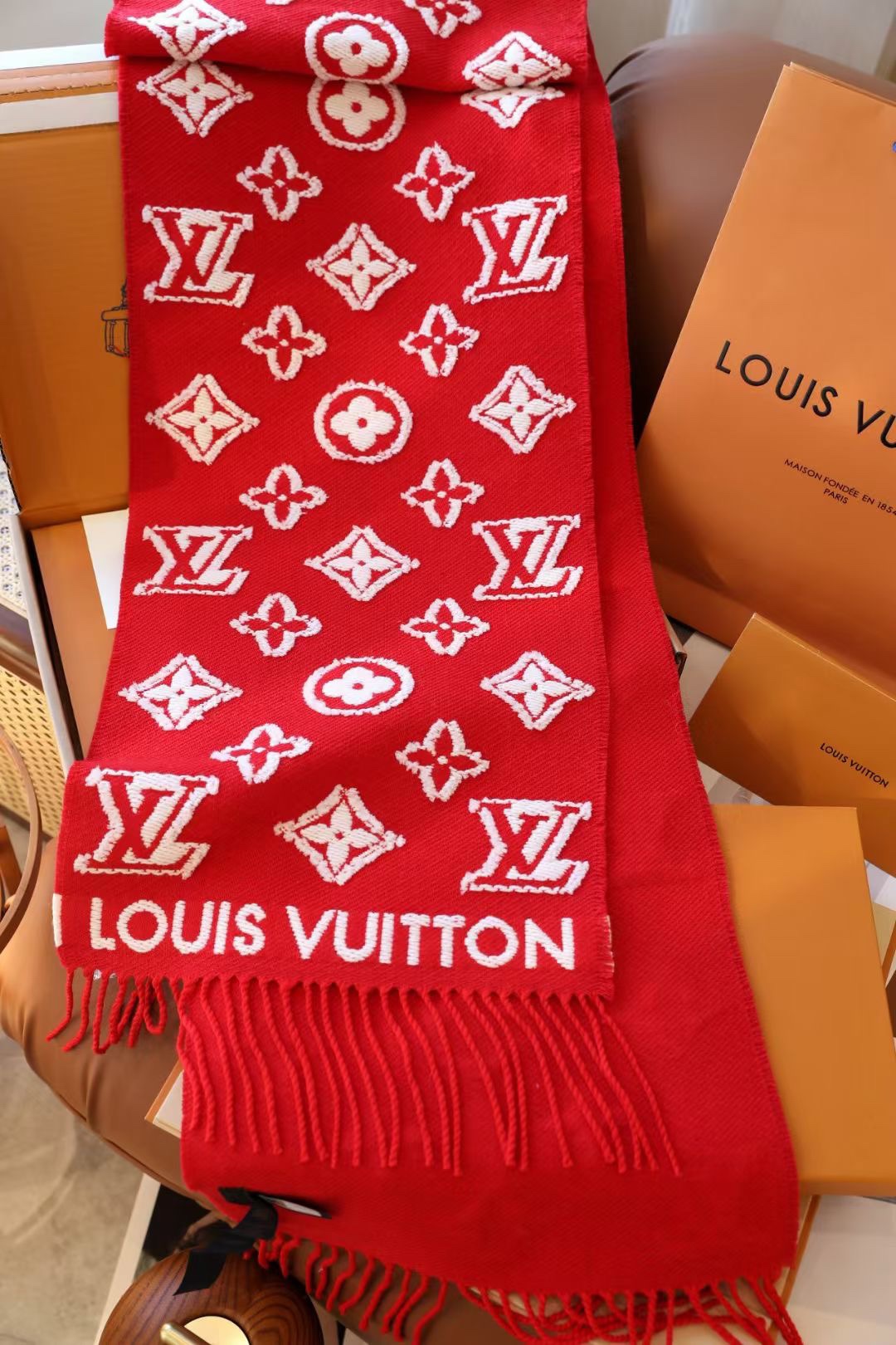 ·90% sheep wool, 9% cashmere, 1% mulberry silk · 3D effect Monogram pattern · Louis Vuitton logo · Tassel trim