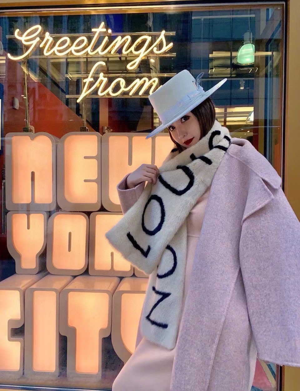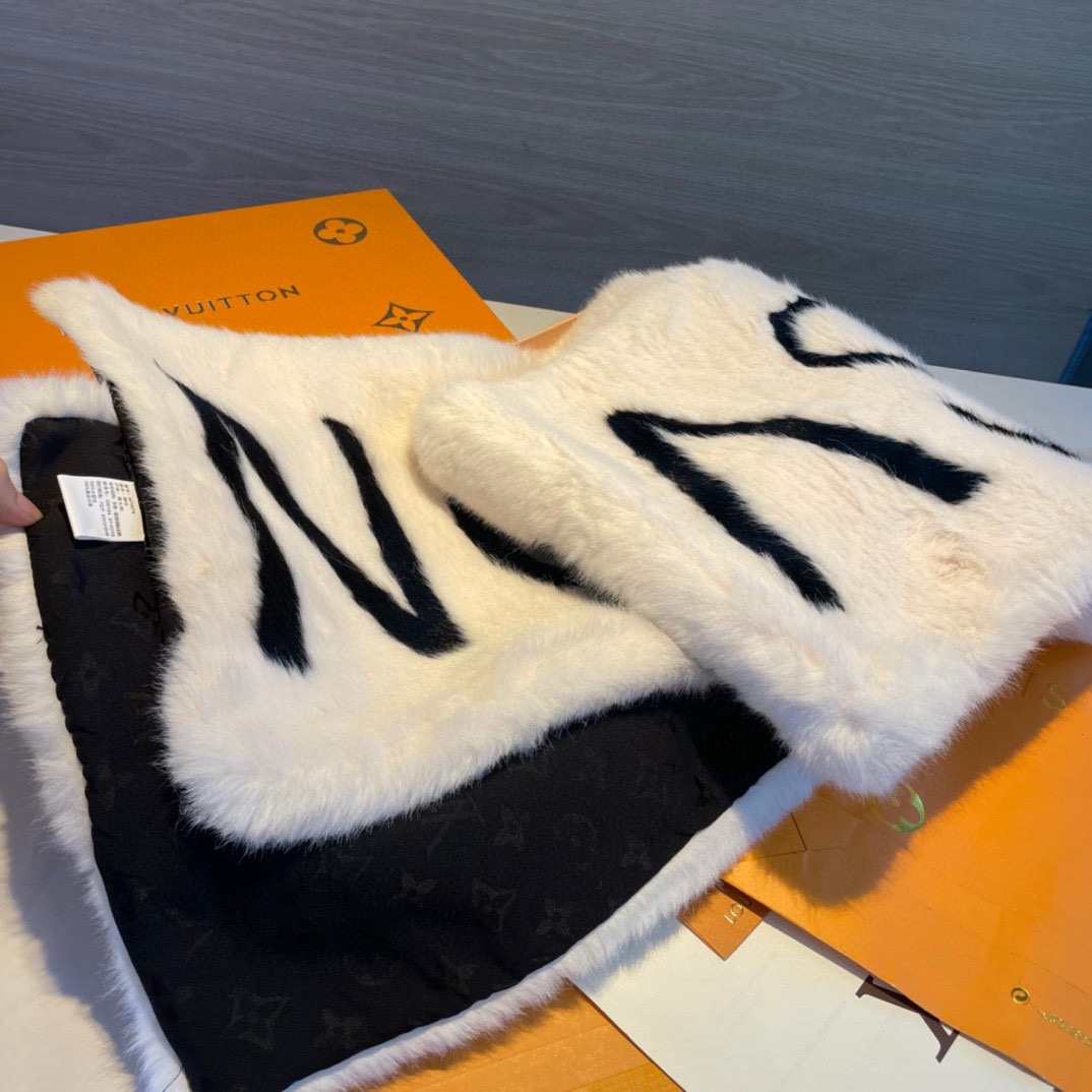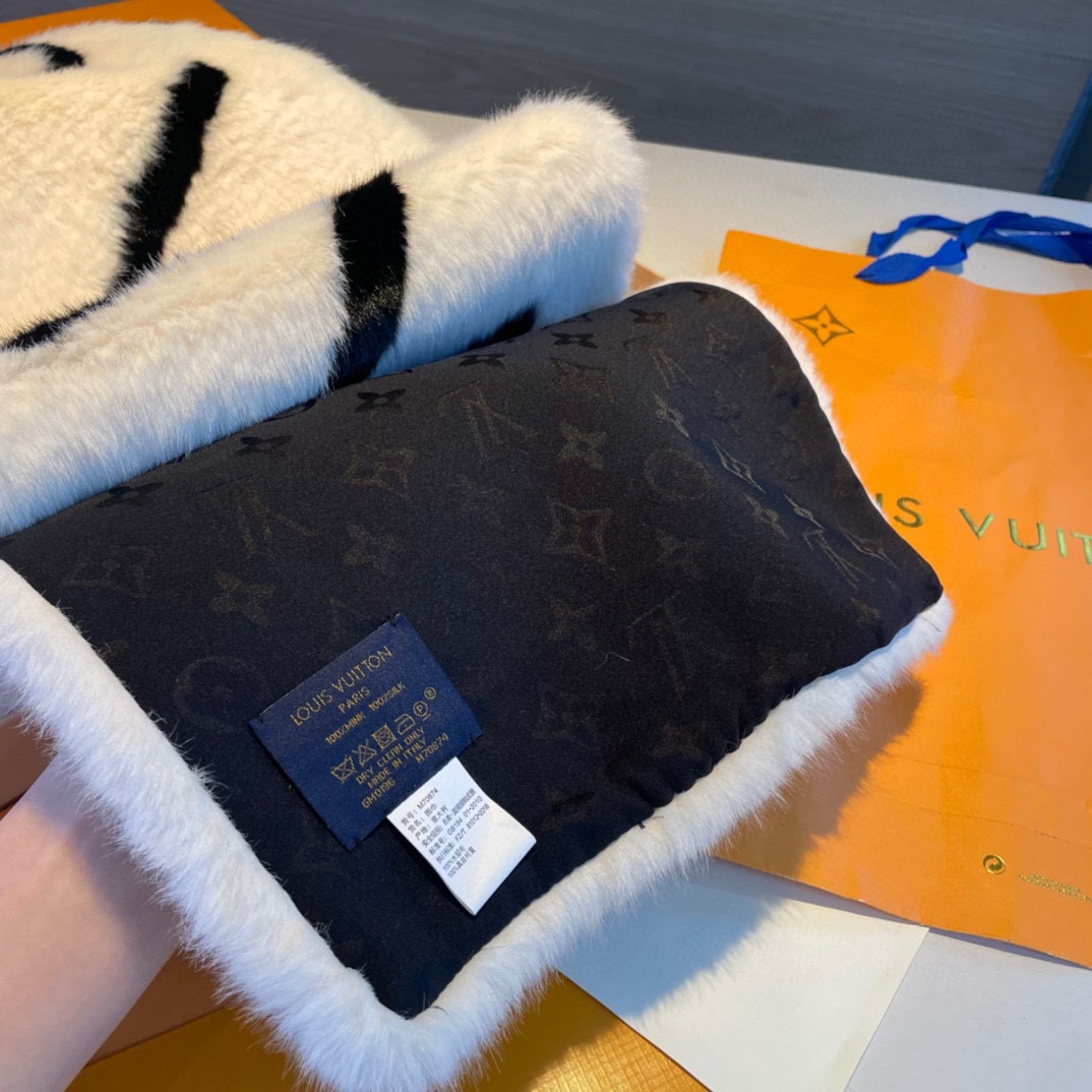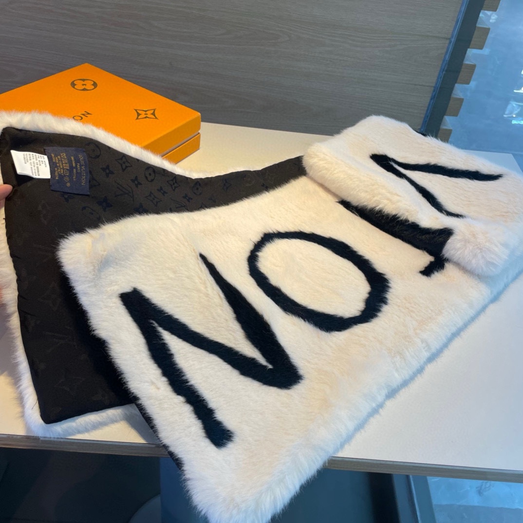 LV premium scarf with eco-mink and 100% silk logo back, 27cm*176cm. Exudes luxury and elegance, perfect for enhancing any outfit.
