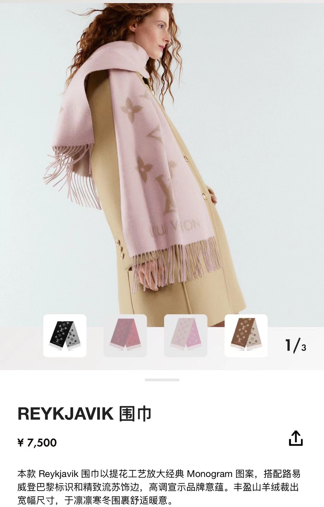 Official website synchronization 🔥 🔥🔥🔥 New color (milk tea pink) 300g timeless LV REYKJAVIK cashmere scarf. A bestselling style at brand counters, consistently out of stock in mainland China stores! The original LV factory shipped it; the boss accepted without even seeing the sample. This LV shawl's popularity needs no introduction—beloved by Huo Siyan, Li Xiang, Wang Mingquan, who can't put it down. It can be used as both a scarf and a shawl, with a warm and soft texture that makes it utterly irresistible! Classic logo pattern.. Absolutely high-end and luxurious.. 100% cashmere! Not the so-called "lamb wool" used in counterfeit market products. The feel is impeccable, with a softness and fineness like that of a newborn baby. 100% cashmere. Specifications: 45*180cm