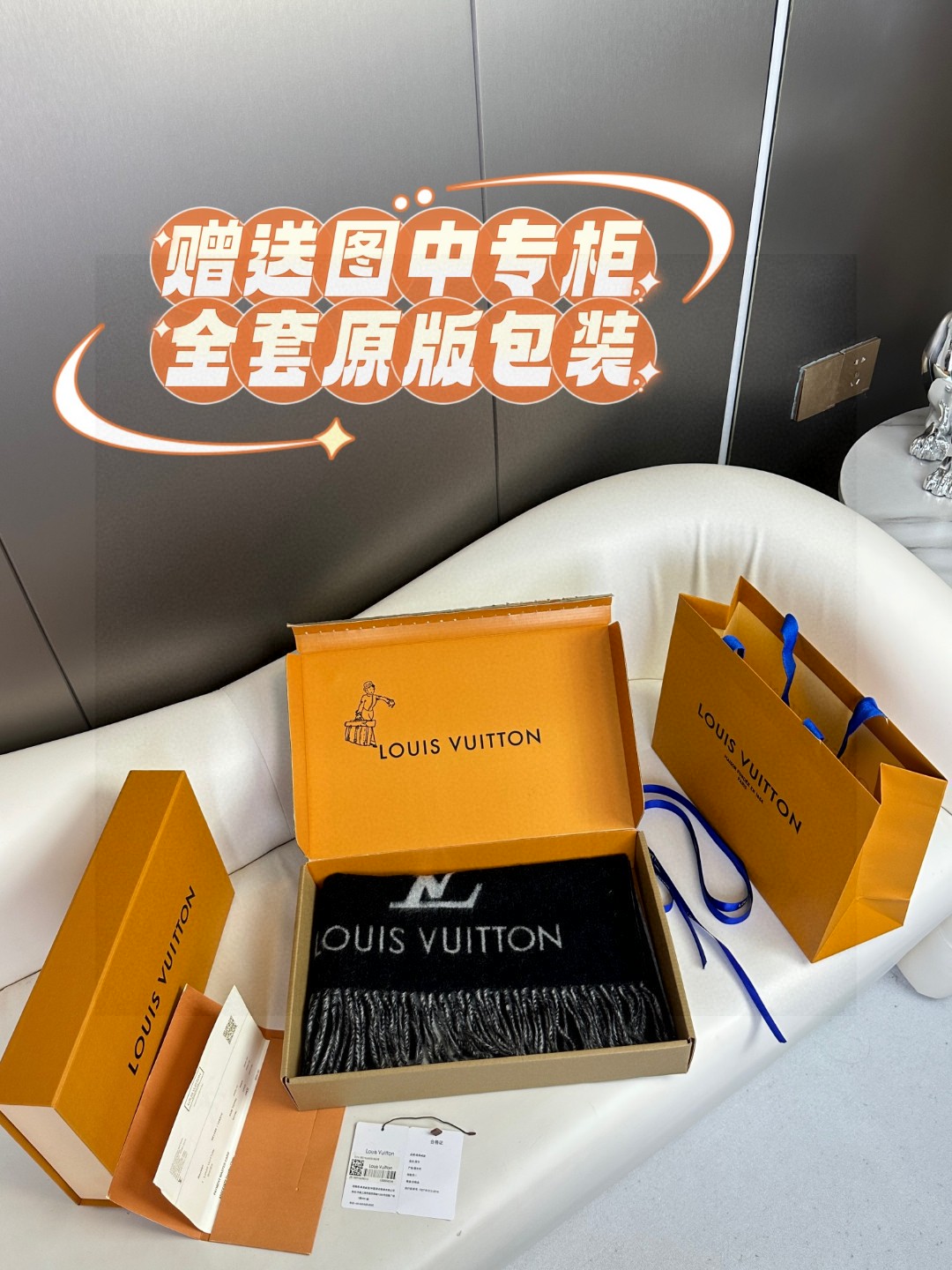 Gift includes the full set of packaging box shown in the picture. Lv Donkey Brand #𝑹𝒆𝒚𝒌𝒋𝒂𝒗𝒊𝒌 double-sided cashmere scarf.