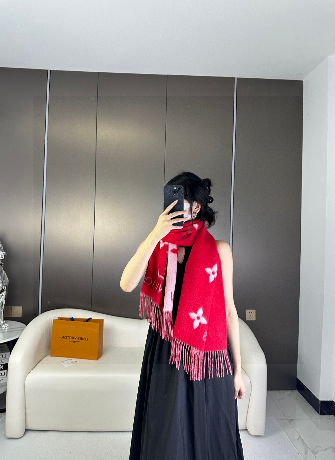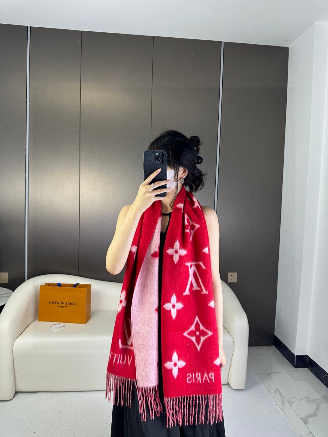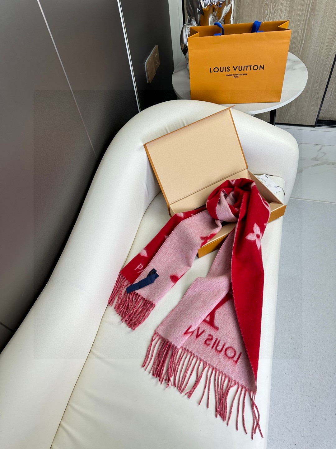 Full set packaging Lv brand #Reykjavik double-sided cashmere scarf