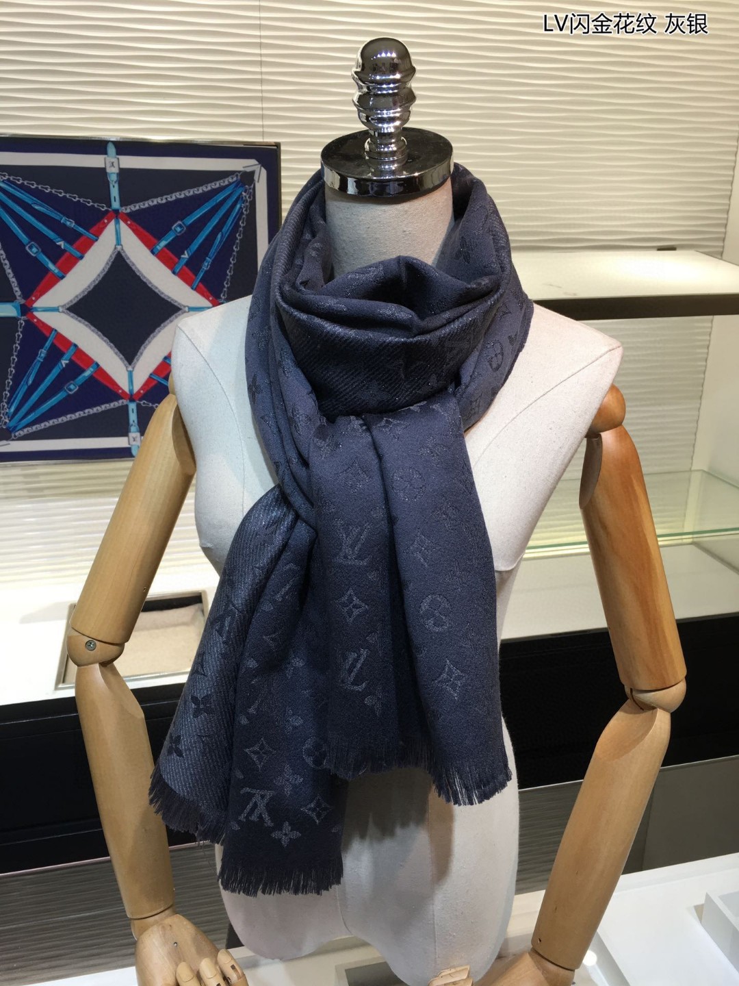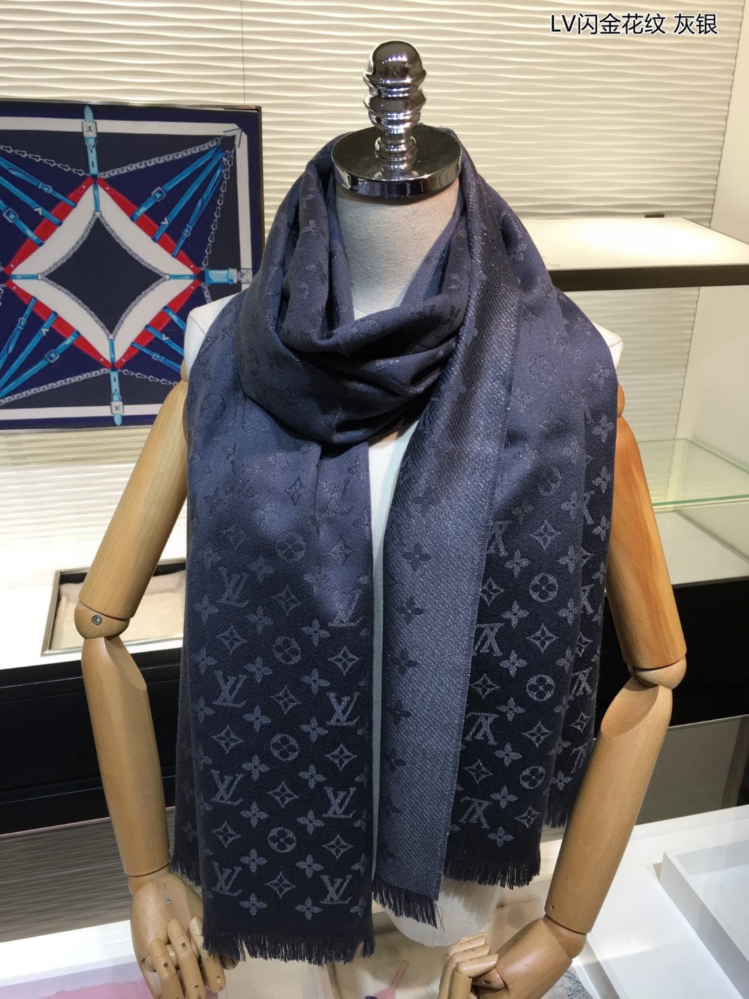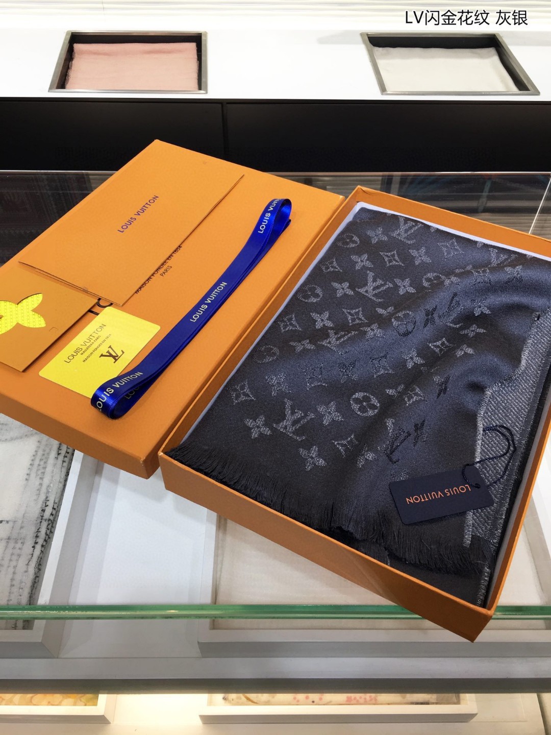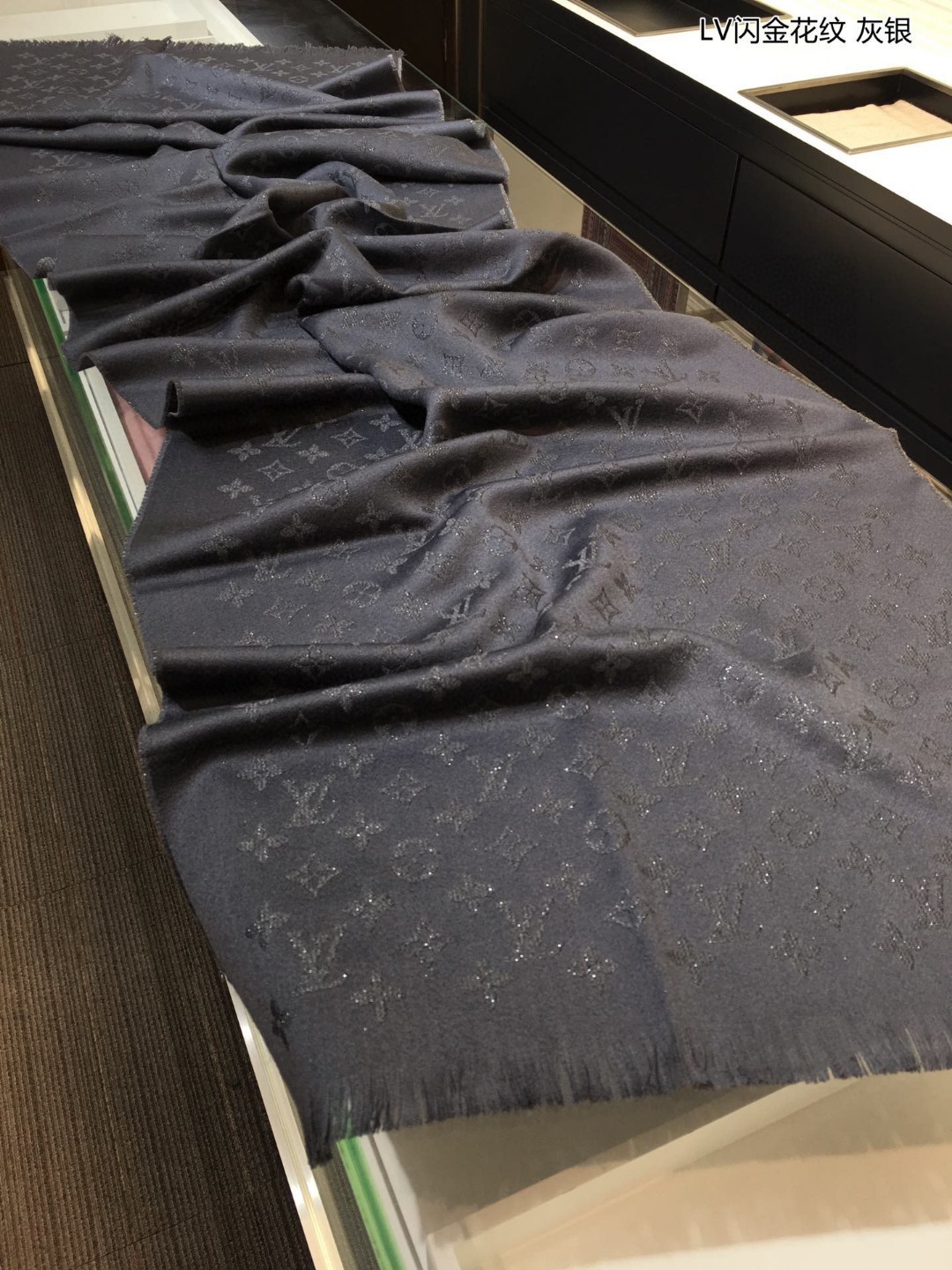 LV golden flash pattern original 1:1 custom, finely textured and mature style long scarf is an ideal match for many looks, crafted from precious cashmere, adorned with gold thread and Monogram pattern weave, soft and warm, perfectly designed, highly recommended don't miss out don't go to the boutique to buy absolutely identical, 100% top pure cashmere price truly good, this size is neither too big nor too small, especially easy to match, quality super good you'll understand the high-end quality once you get it, high-end details what you see is what you get heavyweight grand release VI customers must-buy recommendation 47*190cm
