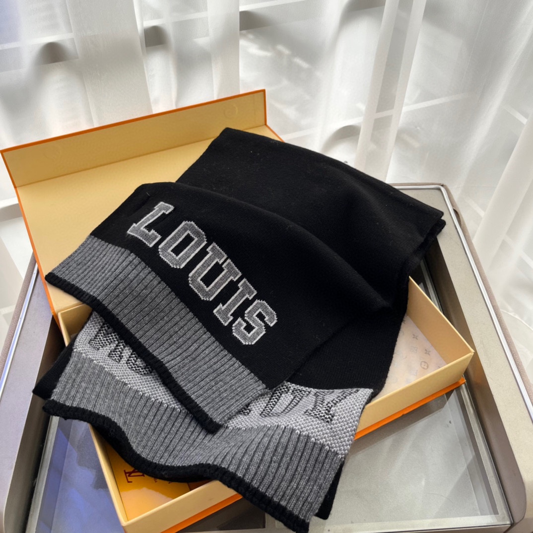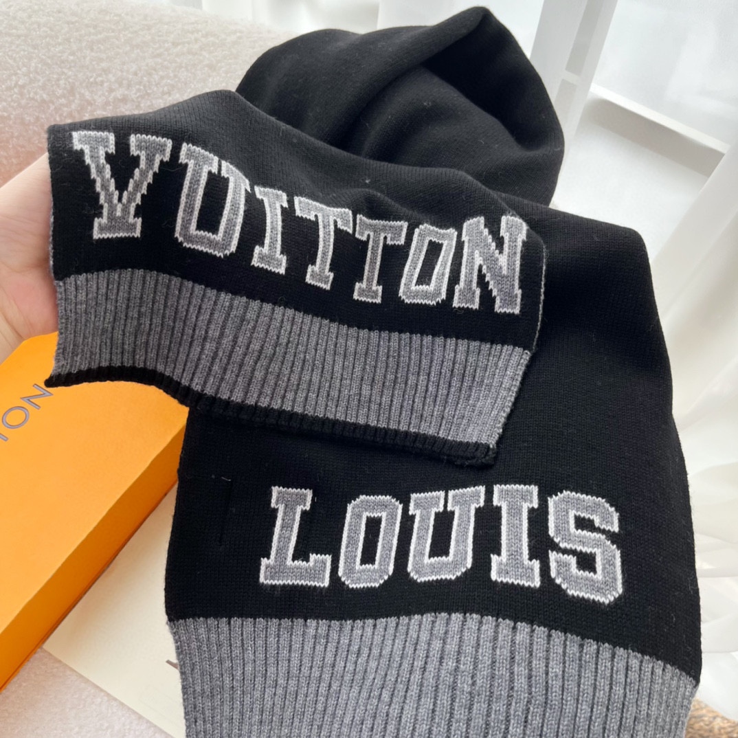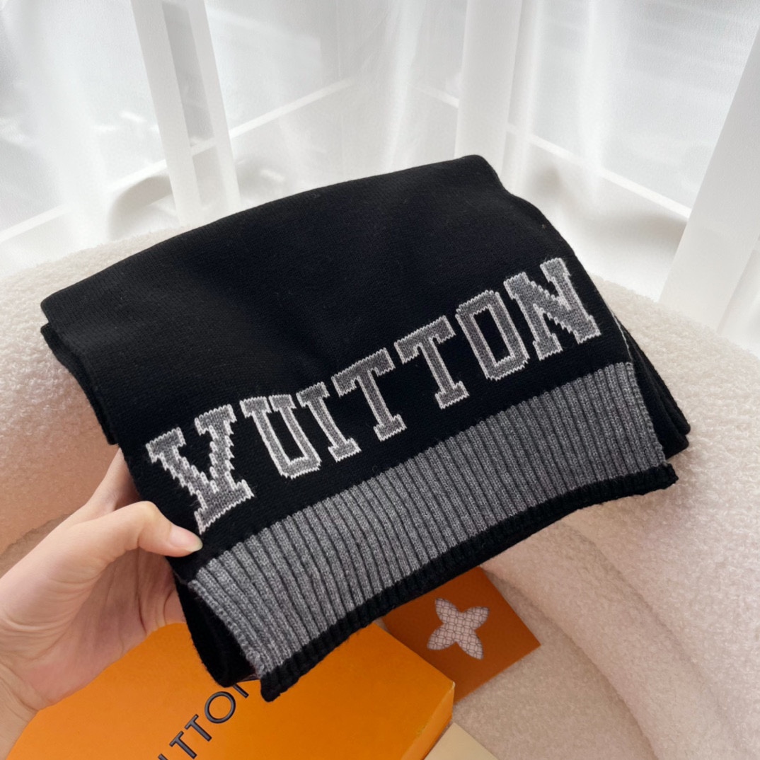 Lv's currently hottest big-name sporty style is modern and fashionable! Very stylish, can be used as a couple set. Loved by stylish men, gentlemen, and beautiful women alike—absolutely irresistible, a must-have! LV's latest letter-pattern sports wool scarf is super substantial in weight. A motherly price brings warmth; once you get it, I bet you'll find it incredibly worth it!!! No need to say more about the quality—even during the photoshoot, I was captivated by the texture, it's truly excellent! The fabric is thick, the yarn is moist and glossy, very clean and fresh! The size is 30*180cm, so it wraps around the neck very comfortably! Such a sporty scarf is truly rare, highly recommended!