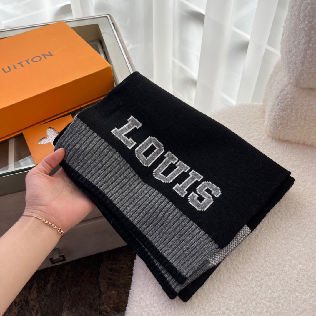 Lv's trendy sports-style wool scarf, modern and fashionable. Unisex design, loved by all. High-quality, thick fabric, size 30*180cm. Highly recommended!