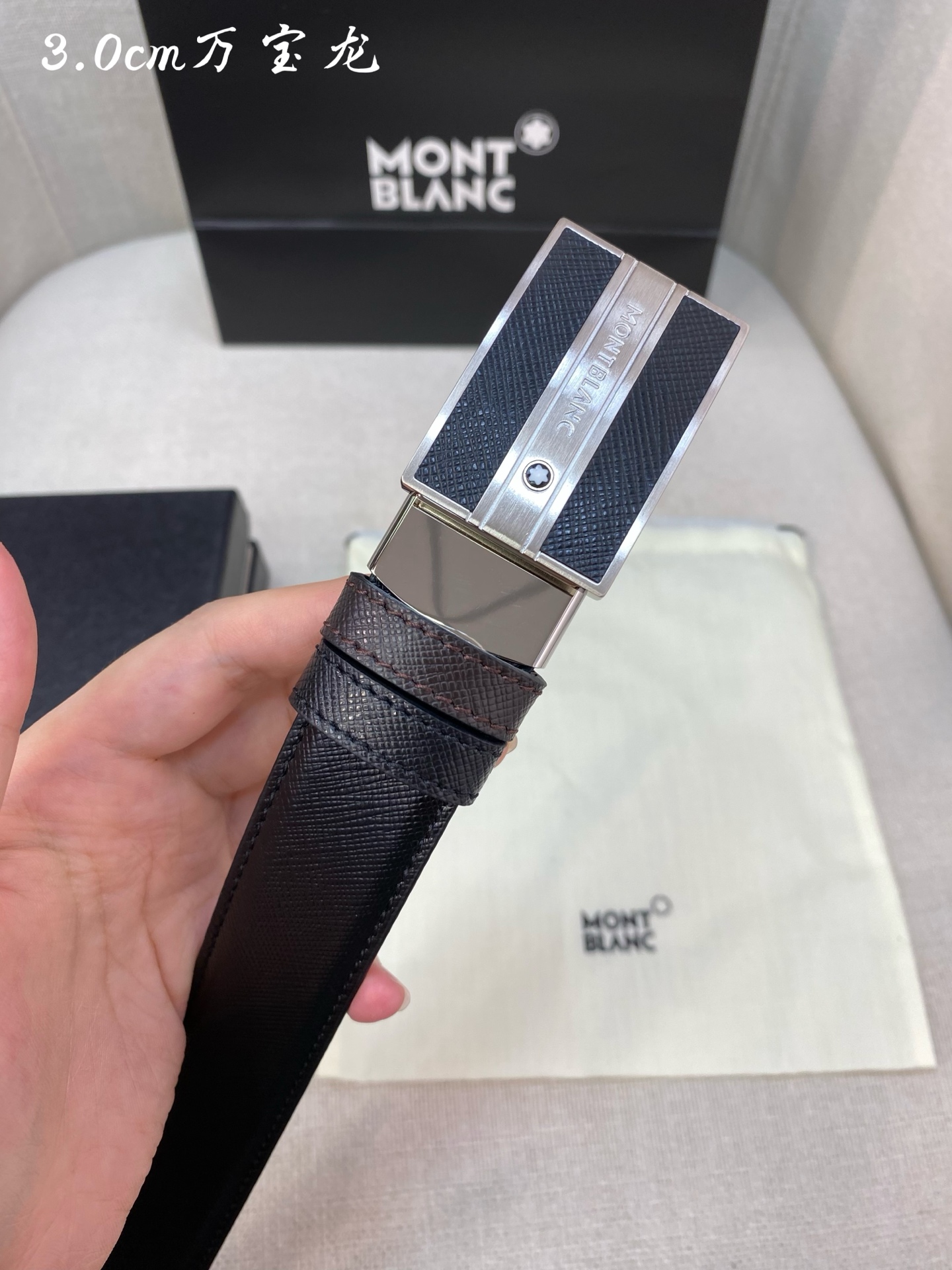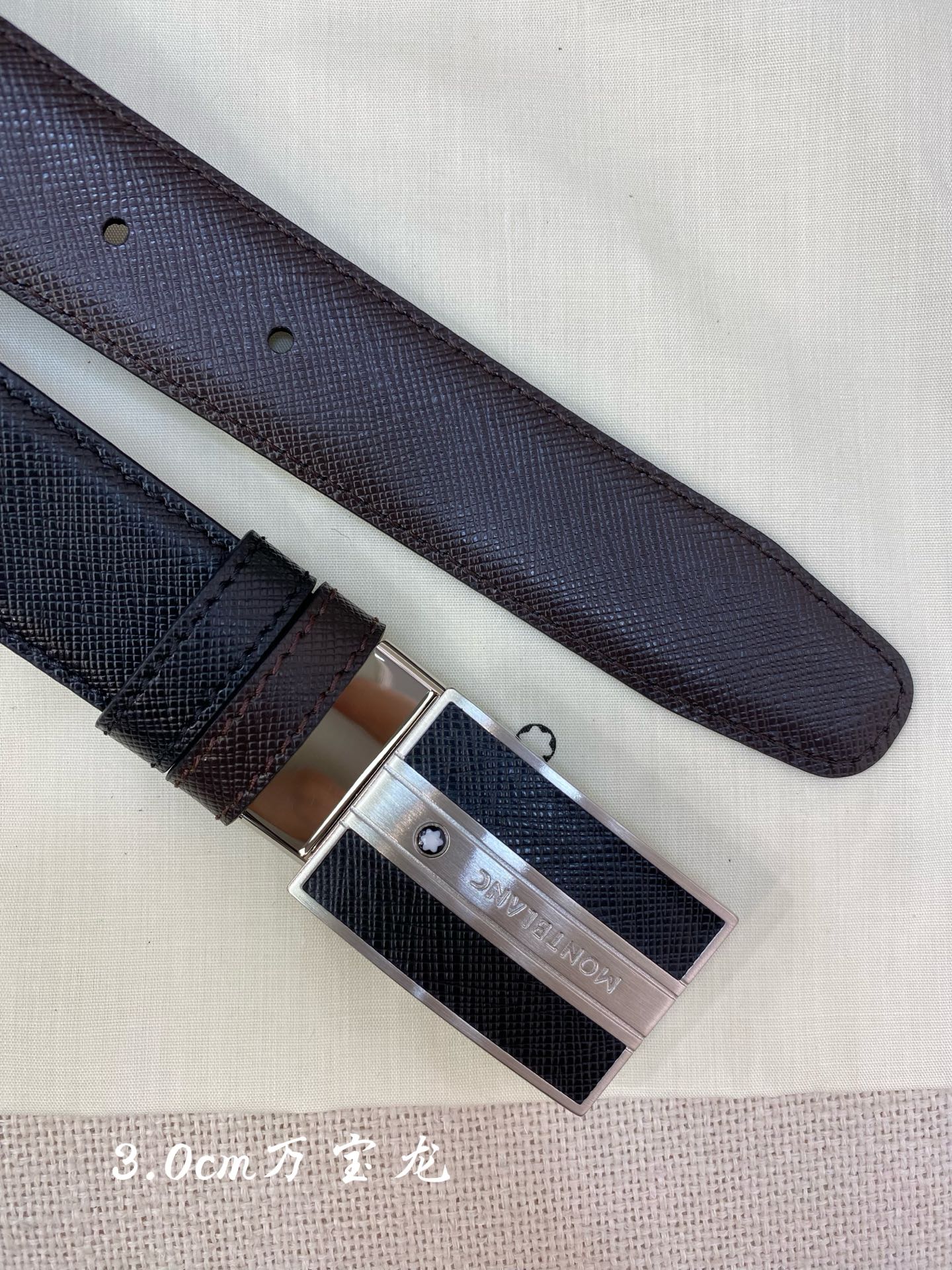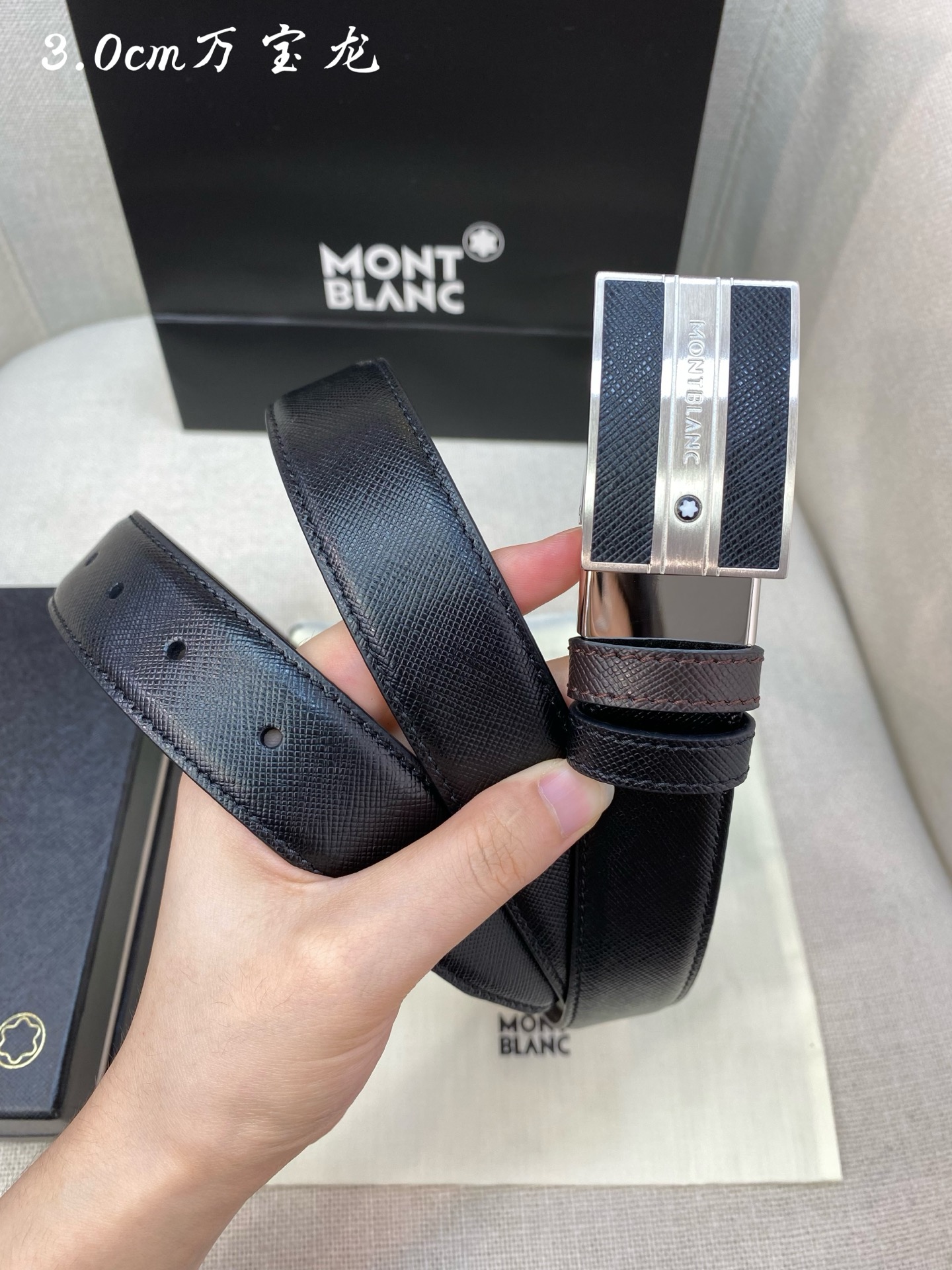 Montblanc 3.0cm wide genuine leather belt with pin buckle, adjustable length.