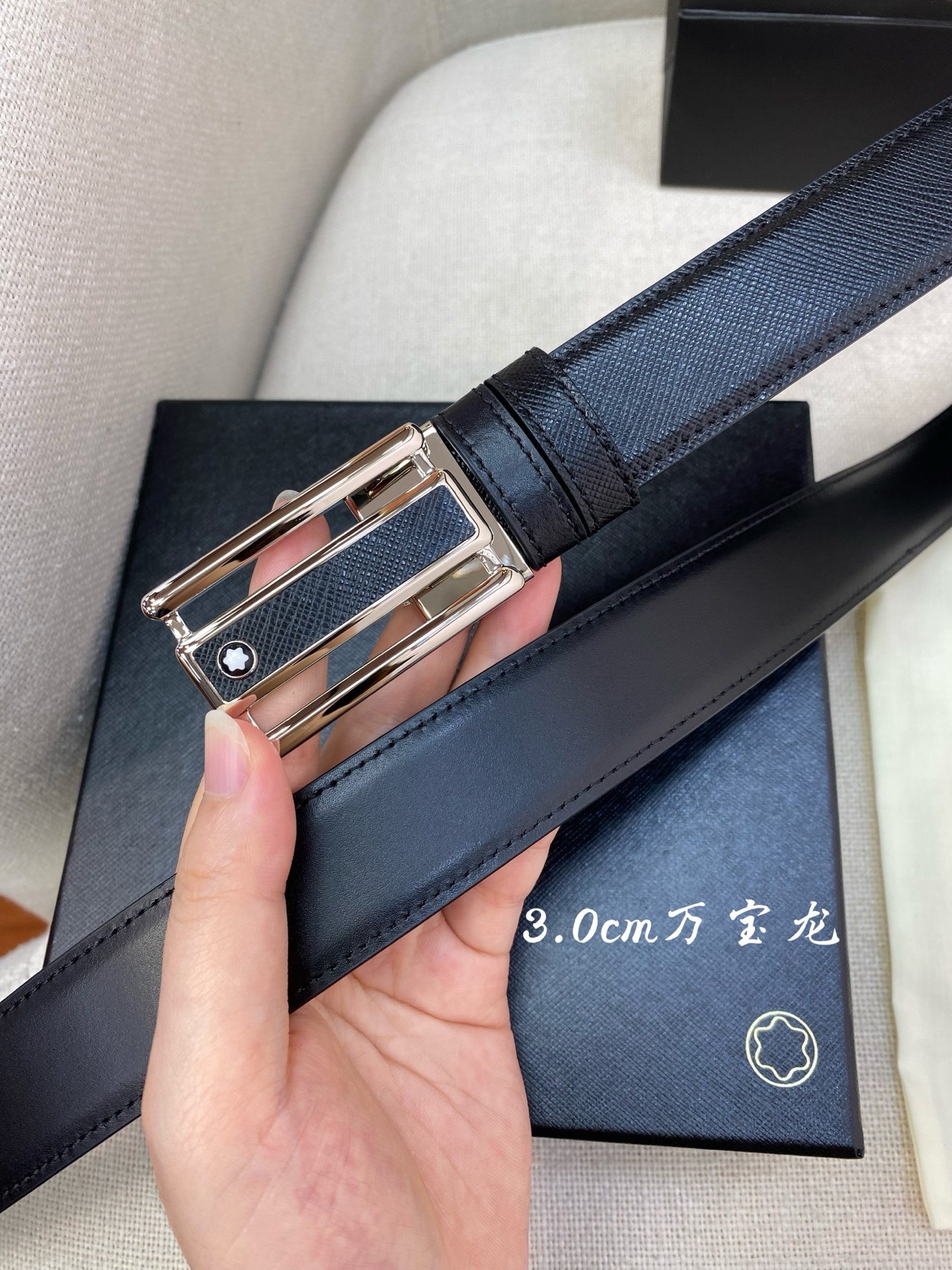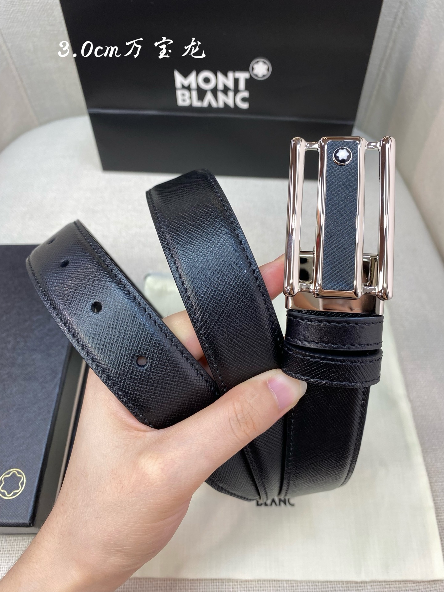 Montblanc 3.0cm wide uses top layer cowhide exquisite pin buckle free cutting business casual belt