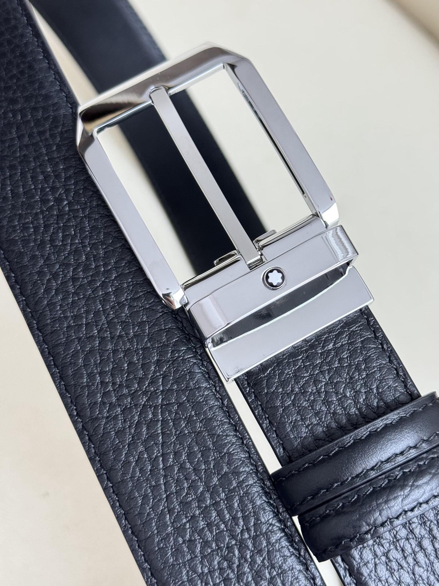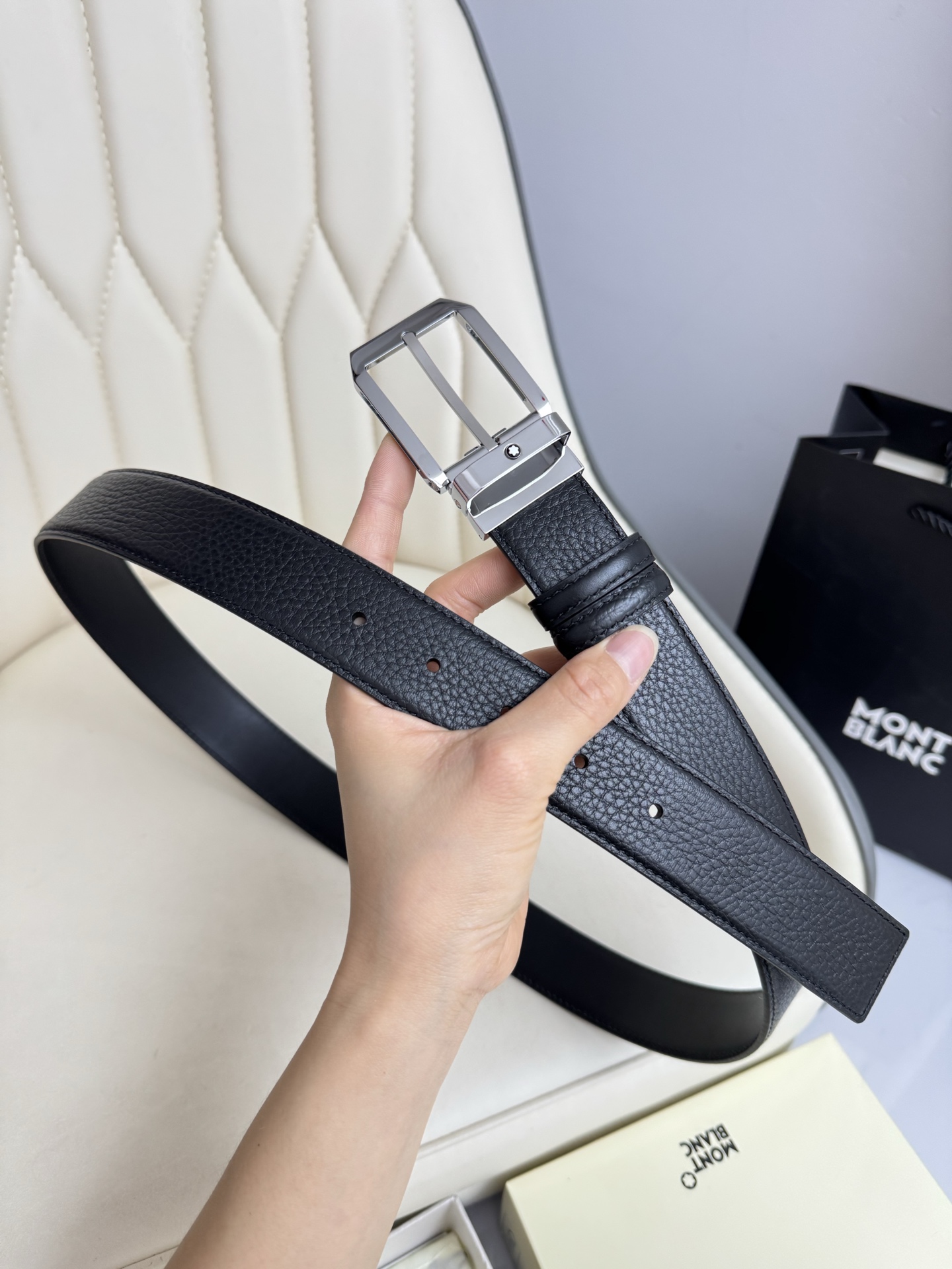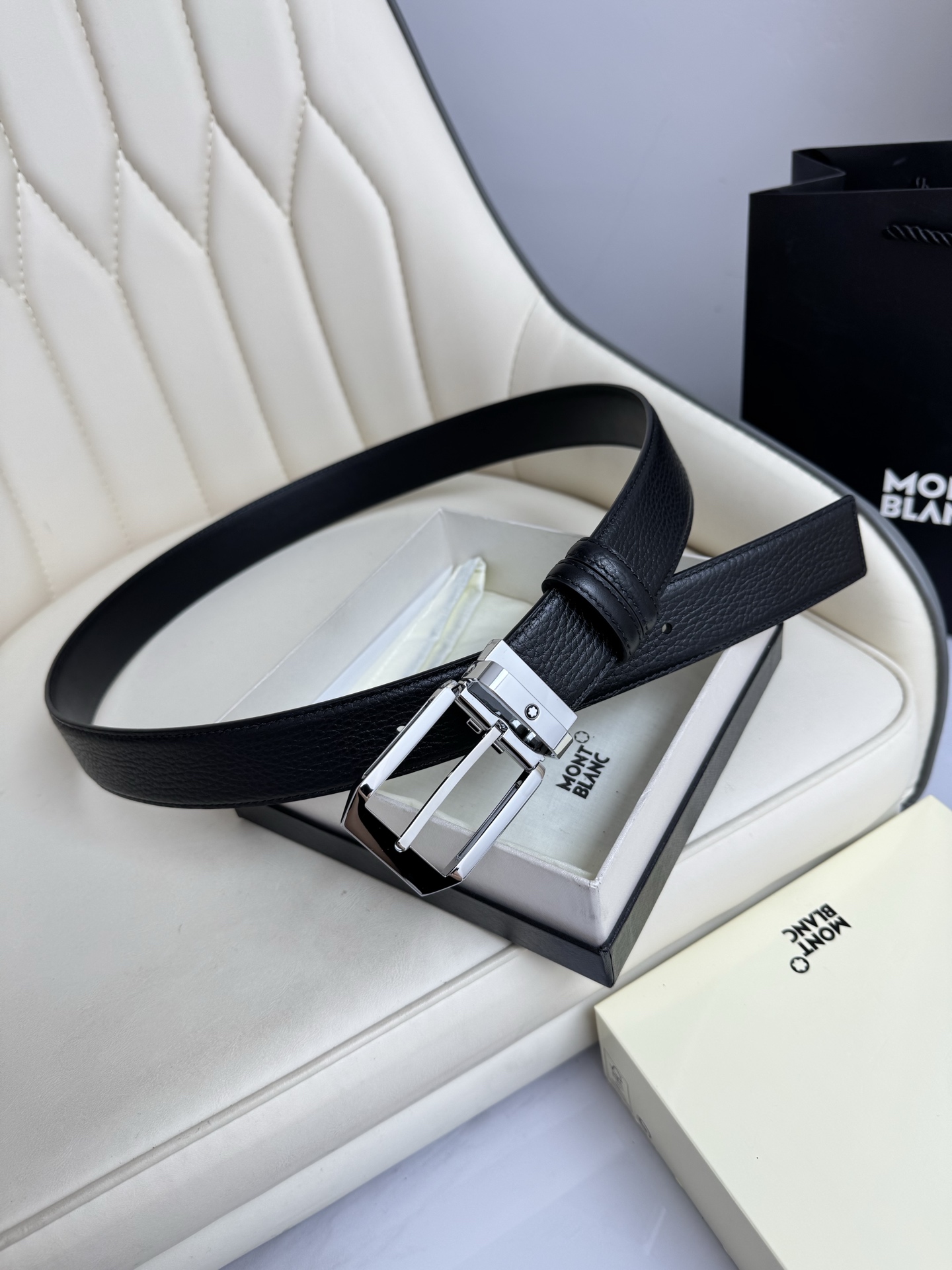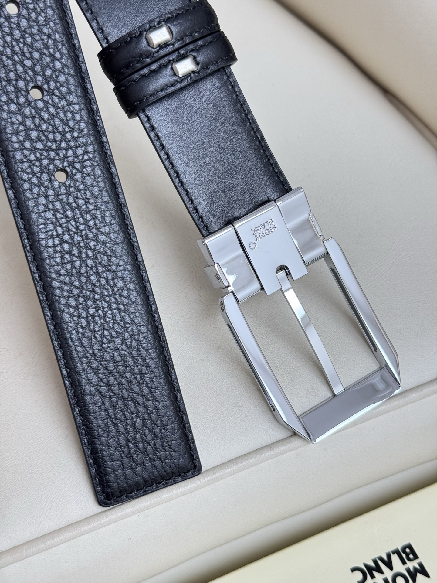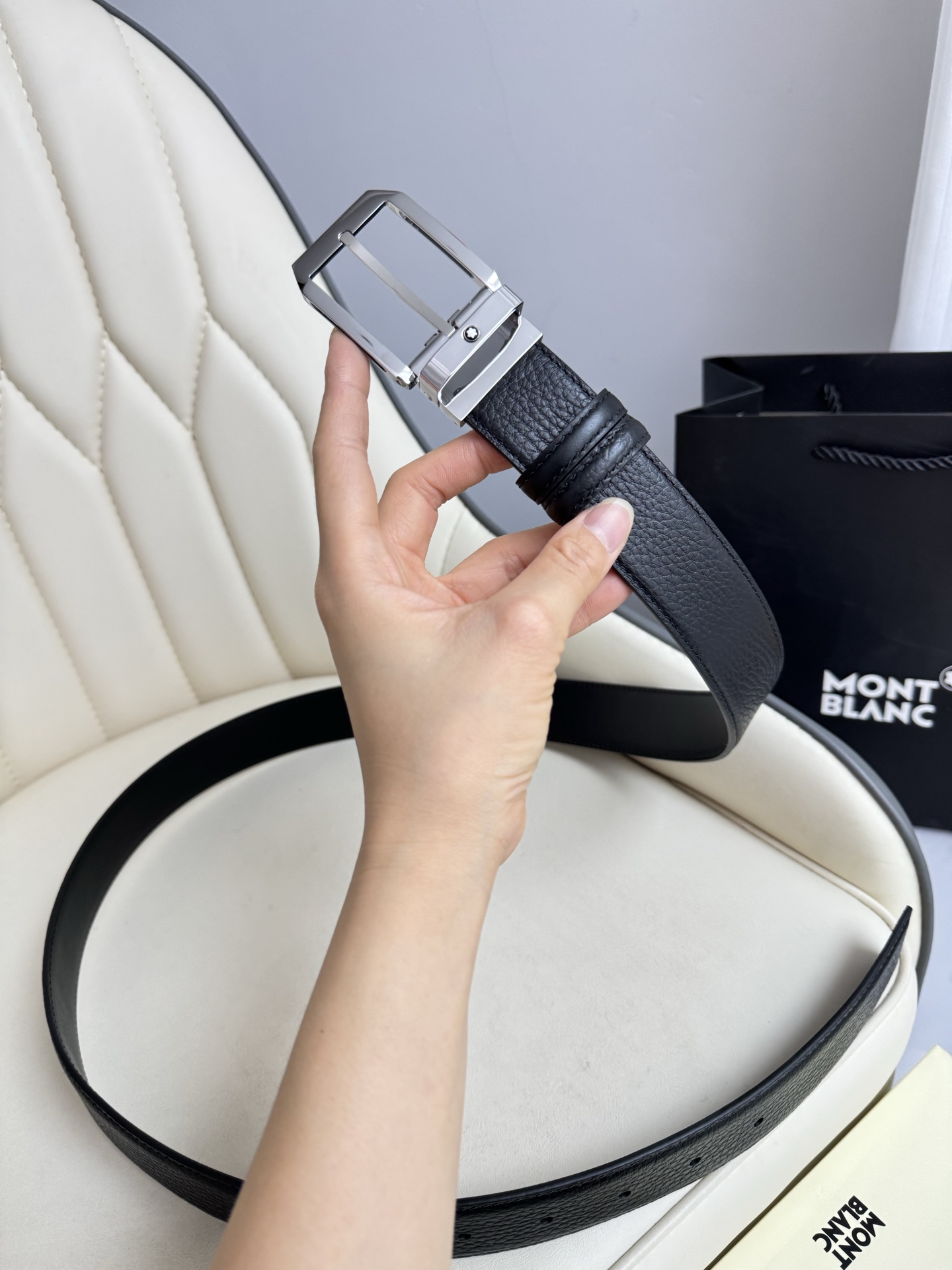 Montblanc 3.5cm wide genuine leather belt with pin buckle, business casual style.
