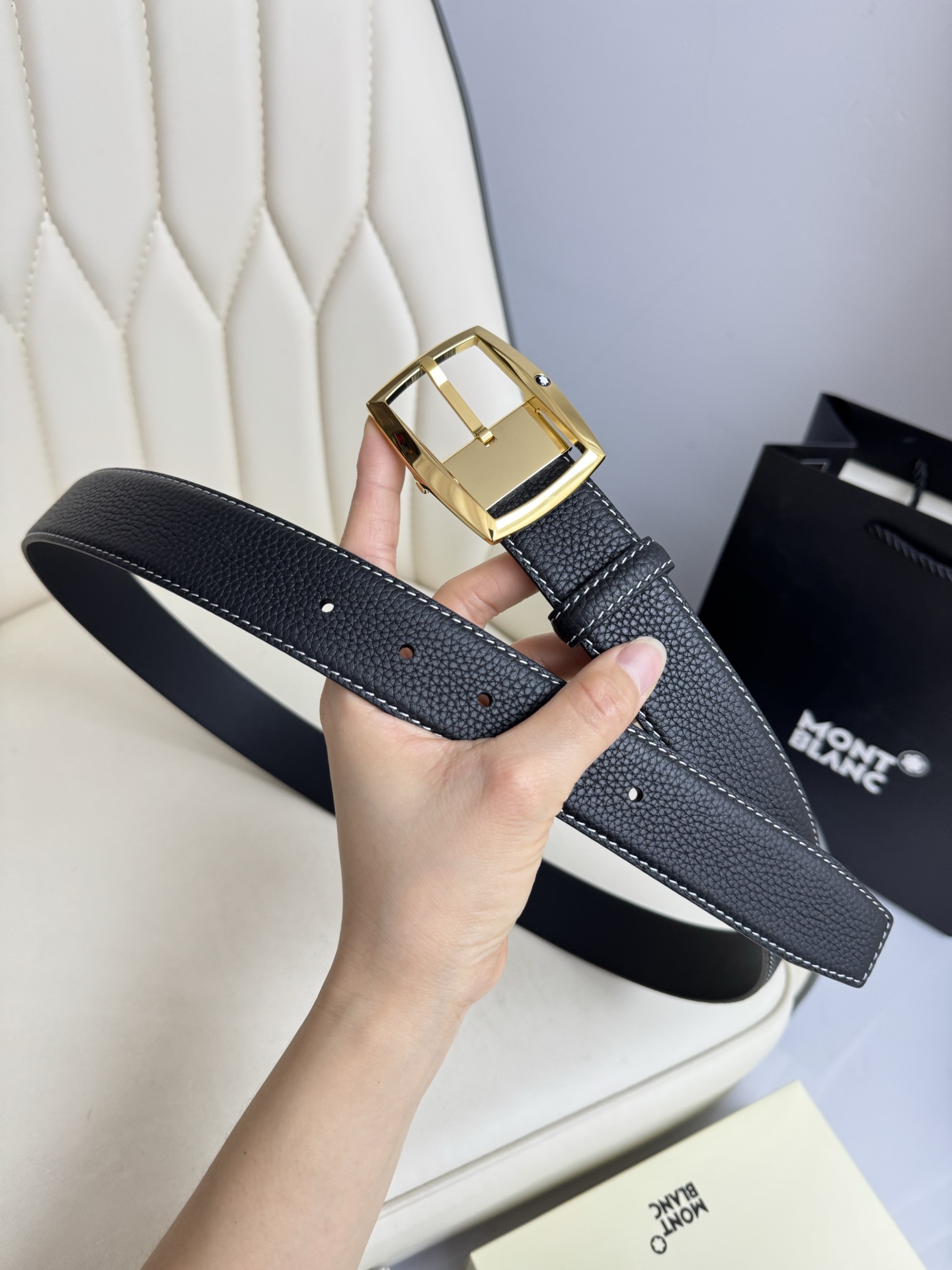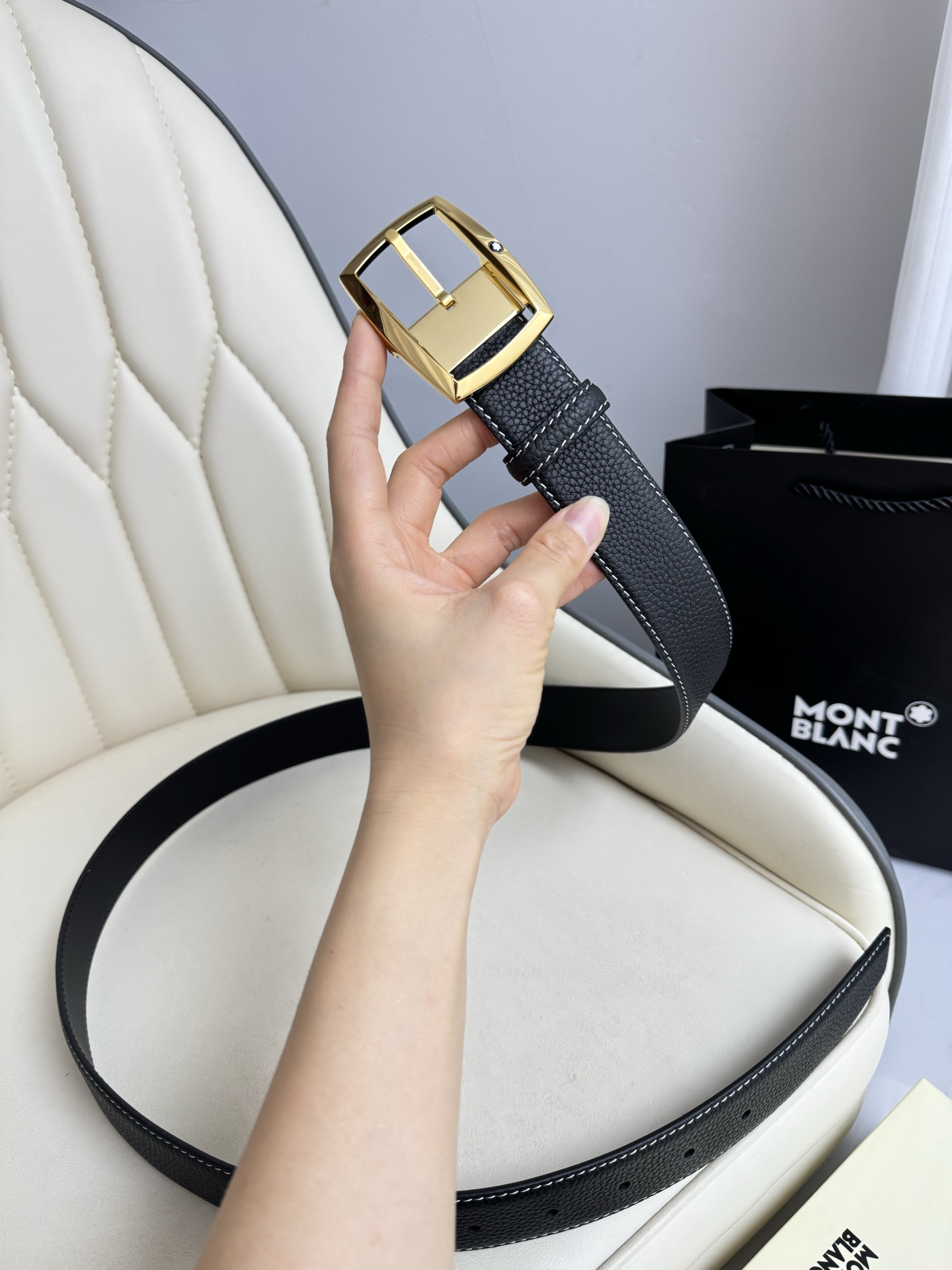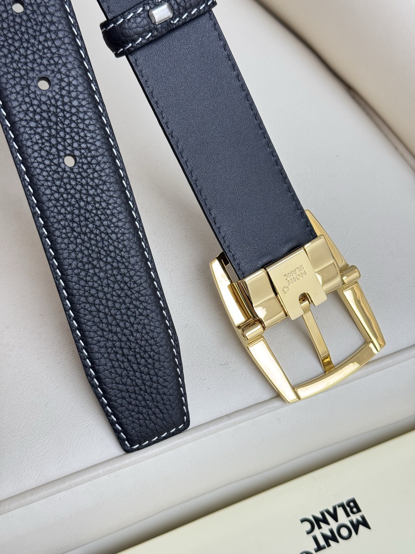 Montblanc 3.5cm wide genuine leather belt with pin buckle, business casual style.