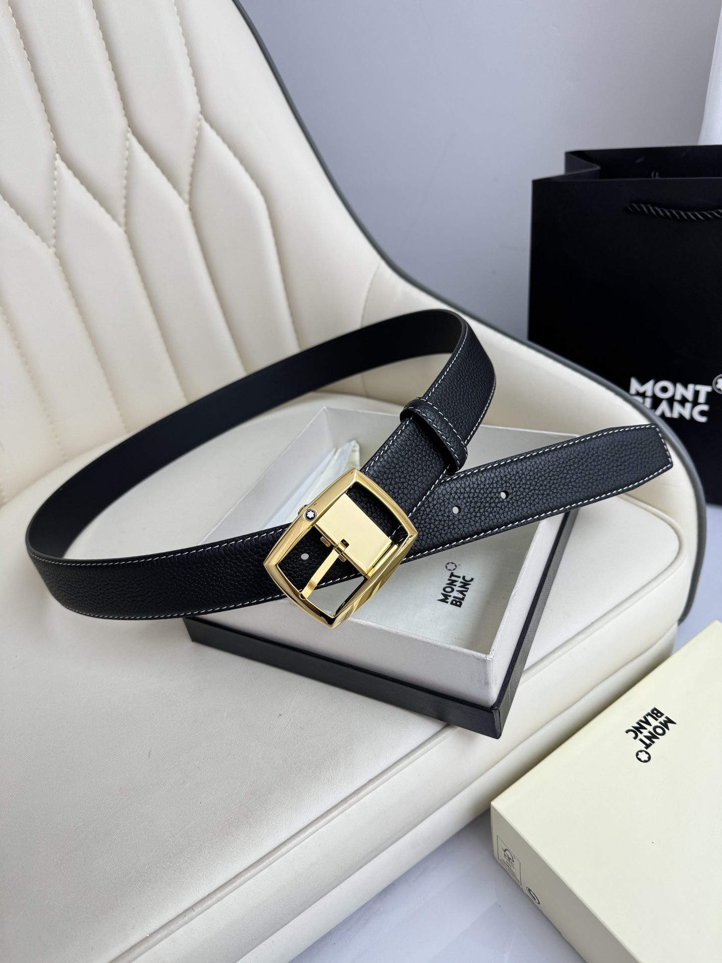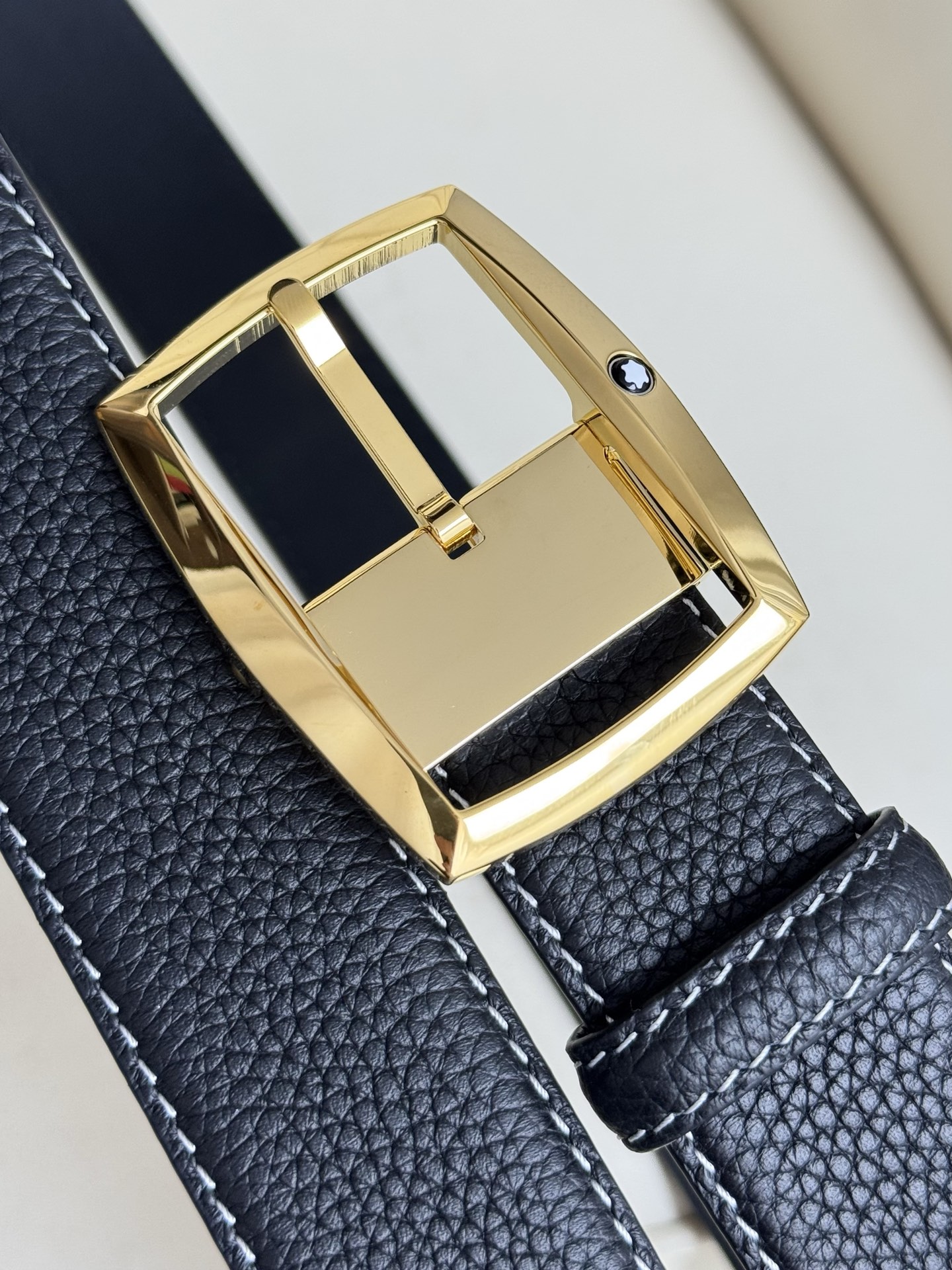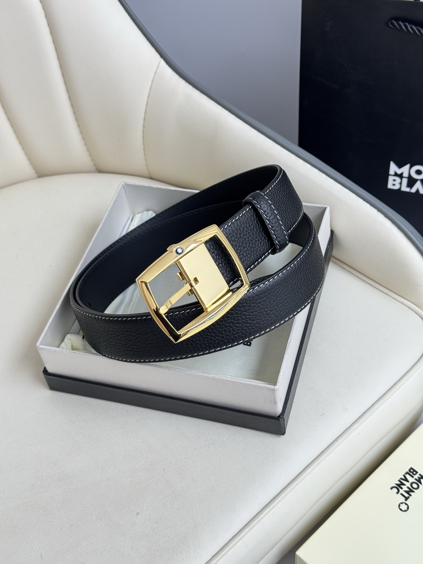 Montblanc 3.5cm wide genuine leather belt with pin buckle, business casual style.
