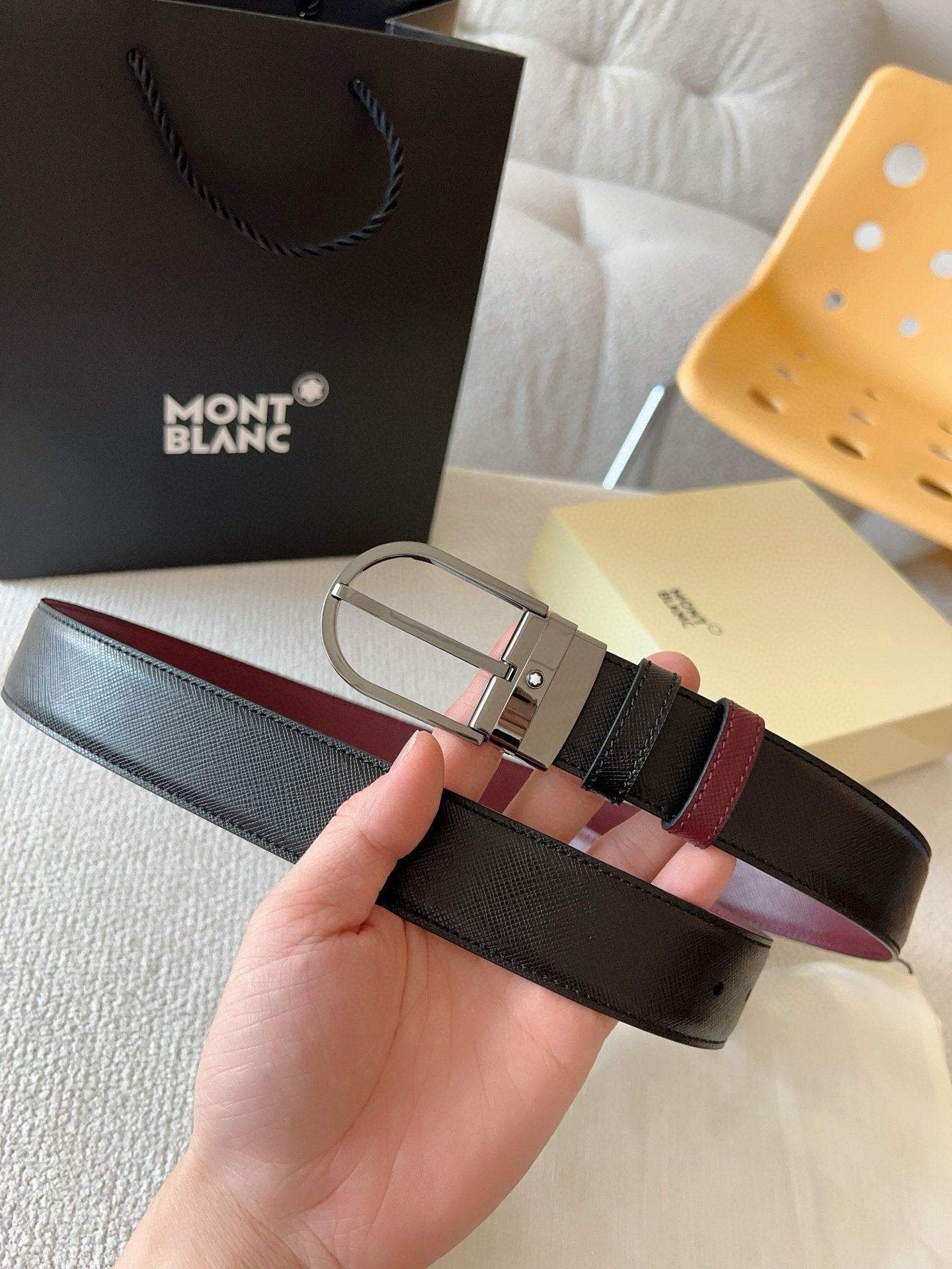 Montblanc 3.5cm wide genuine leather belt with pin buckle, business casual style.