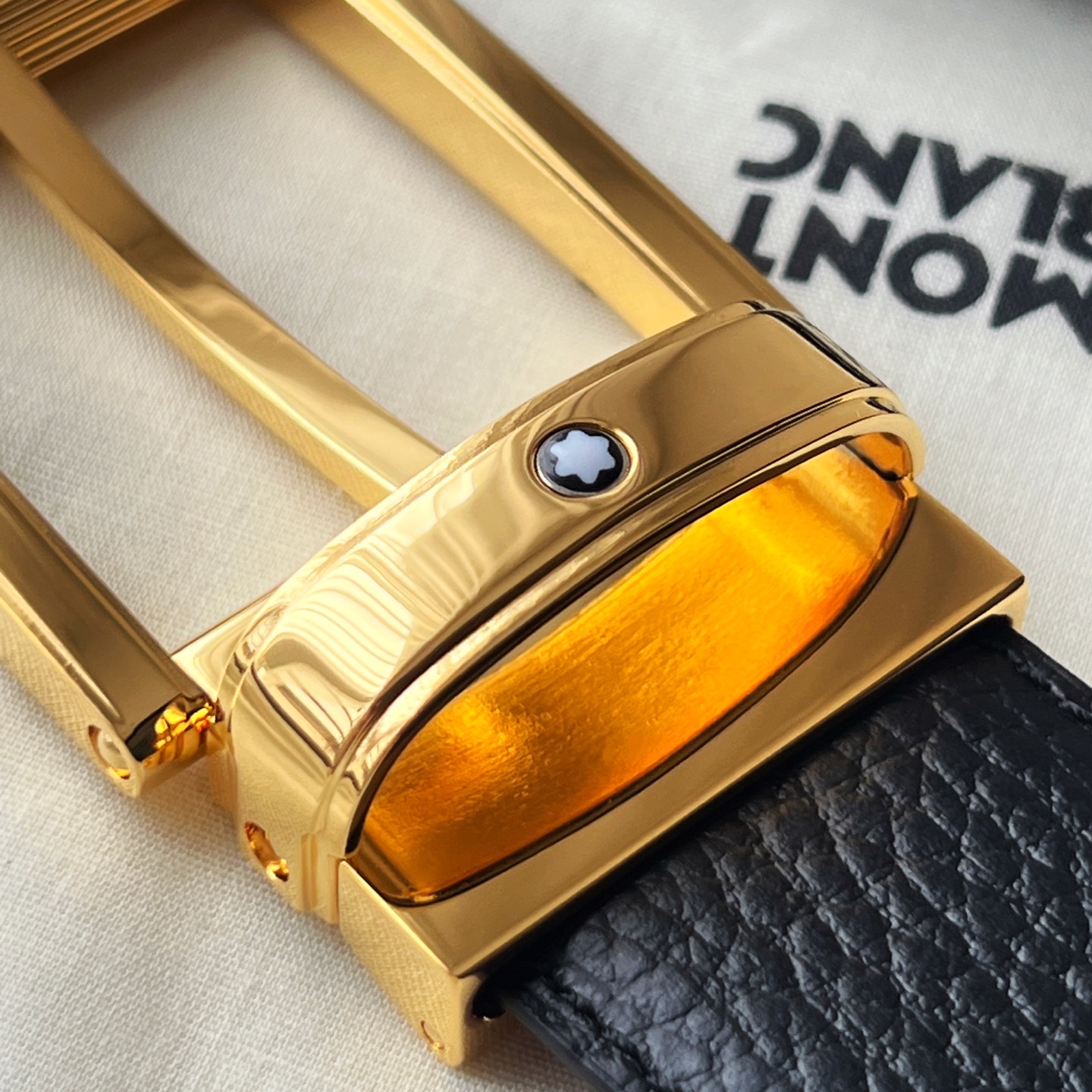 Montblanc Square Buckle Black Blue Belt 35mm