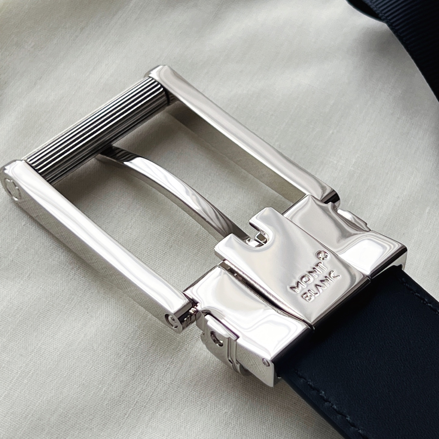 Montblanc Square Buckle Black Blue Belt 35mm