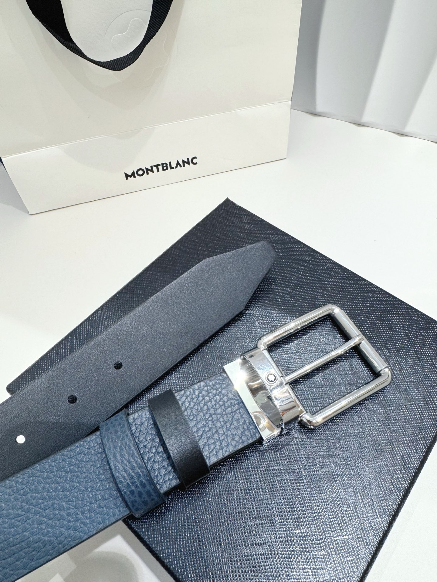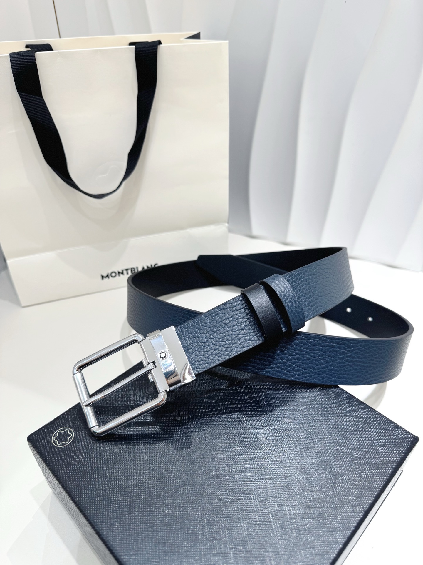 Montblanc business fashion men's belt, stainless steel buckle, adjustable size, width: 3.5cm, size 90-110.