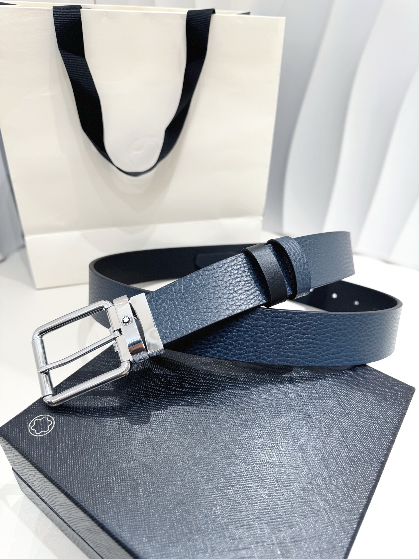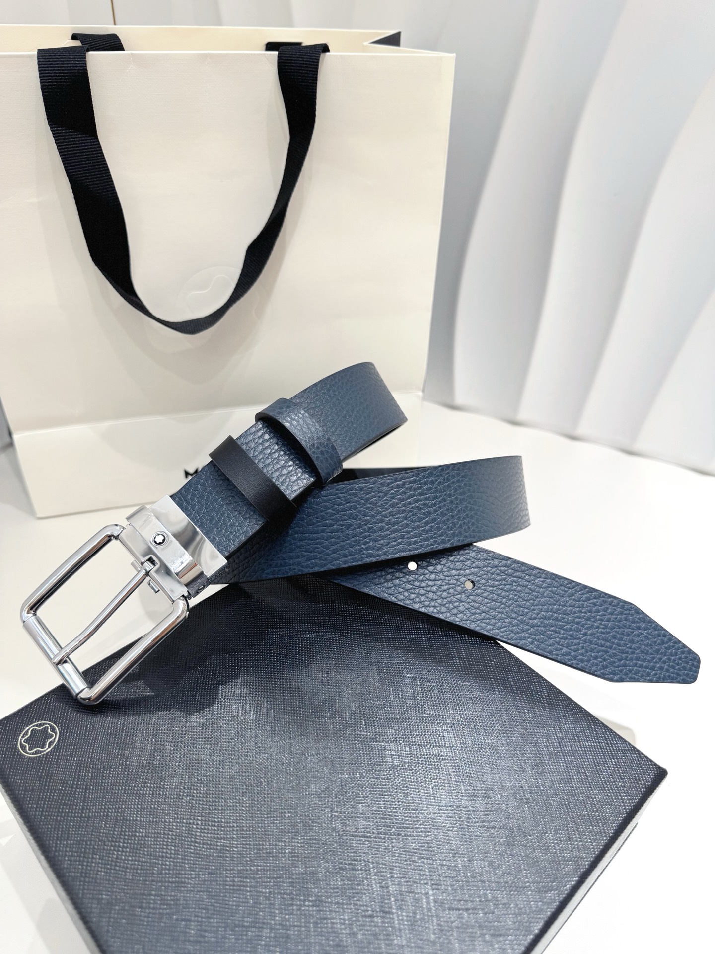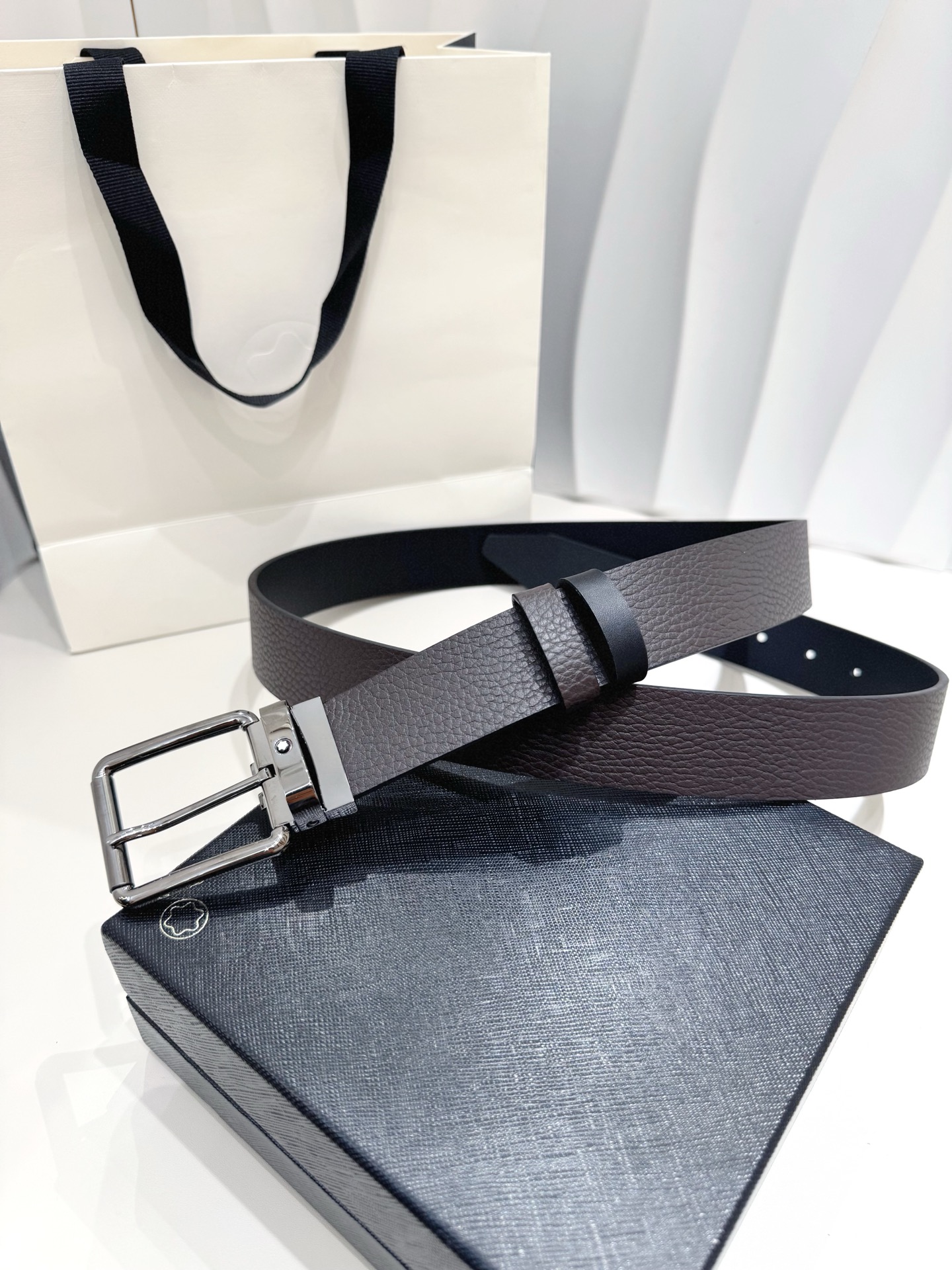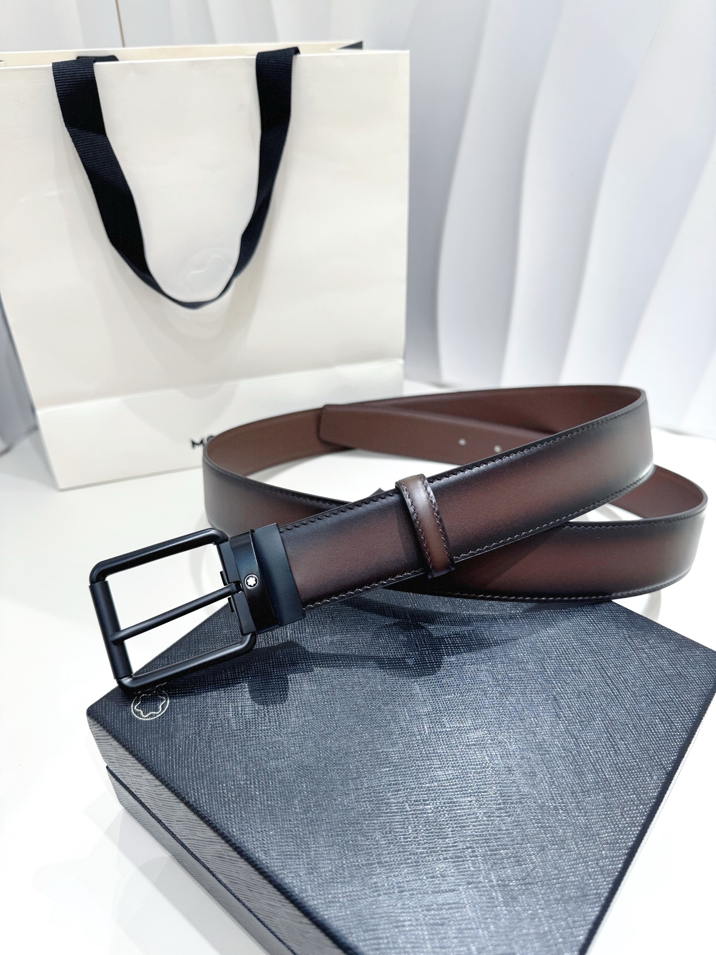 Montblanc business fashion men's belt, stainless steel buckle, adjustable size 90-110, width 3.5cm.
