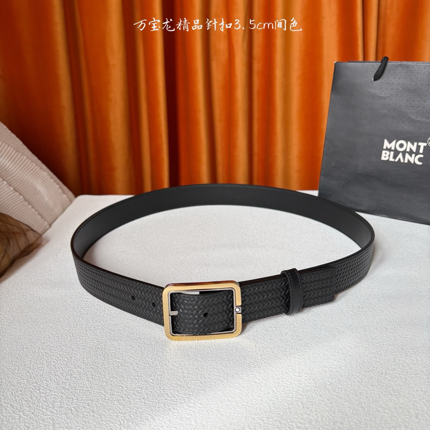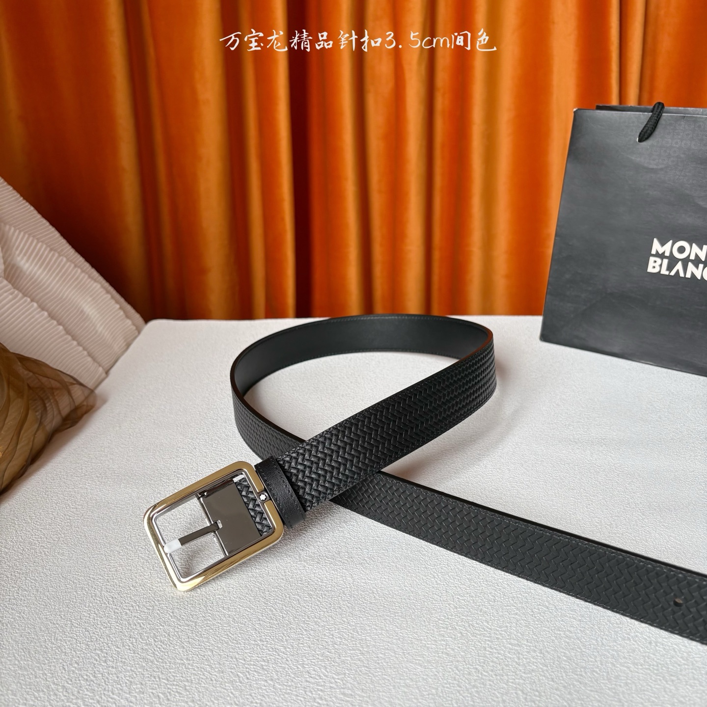 Montblanc exudes elegance and sophistication with imported calfskin and solid brass details. Essential for men, width: 3.5cm.