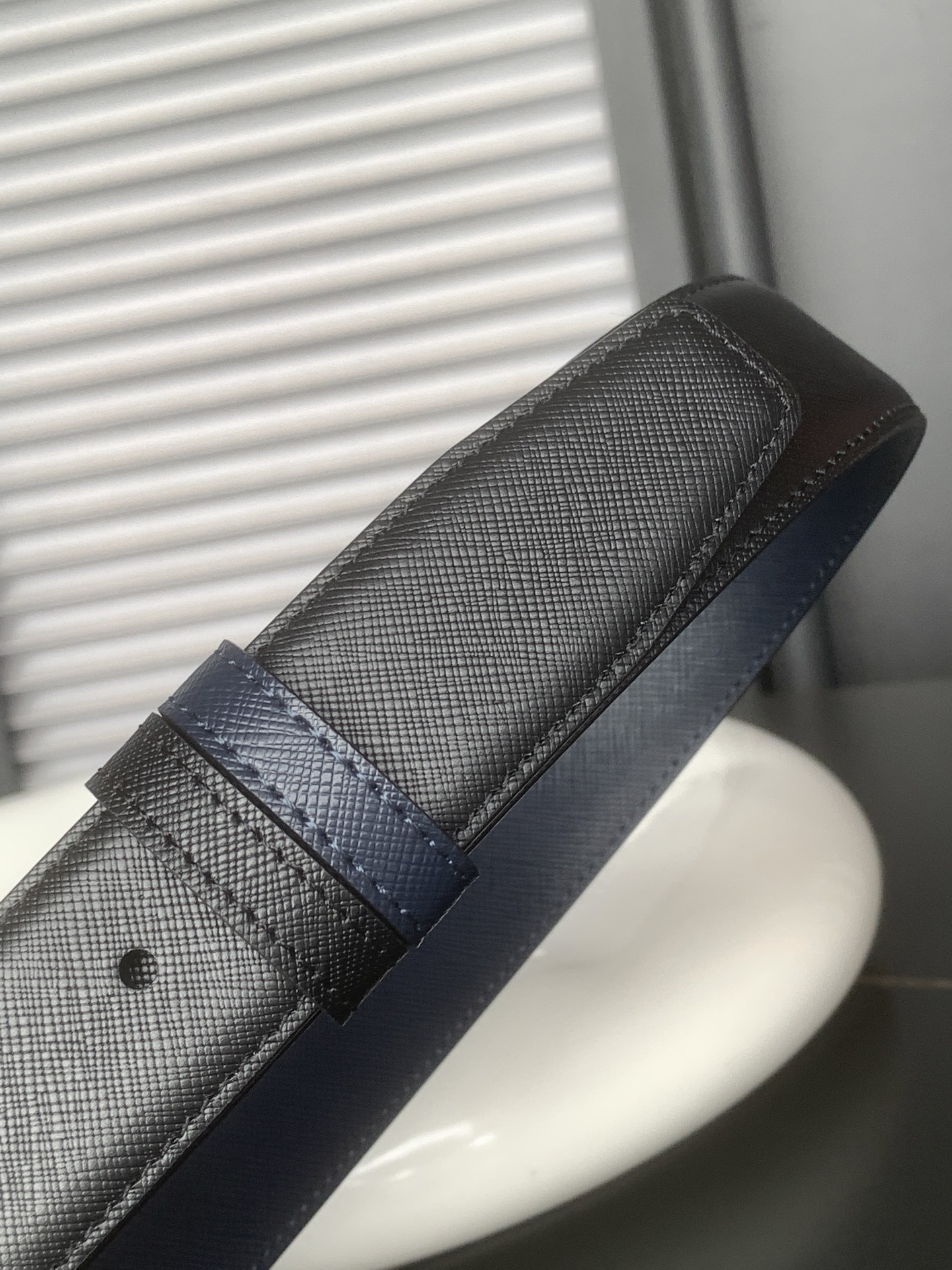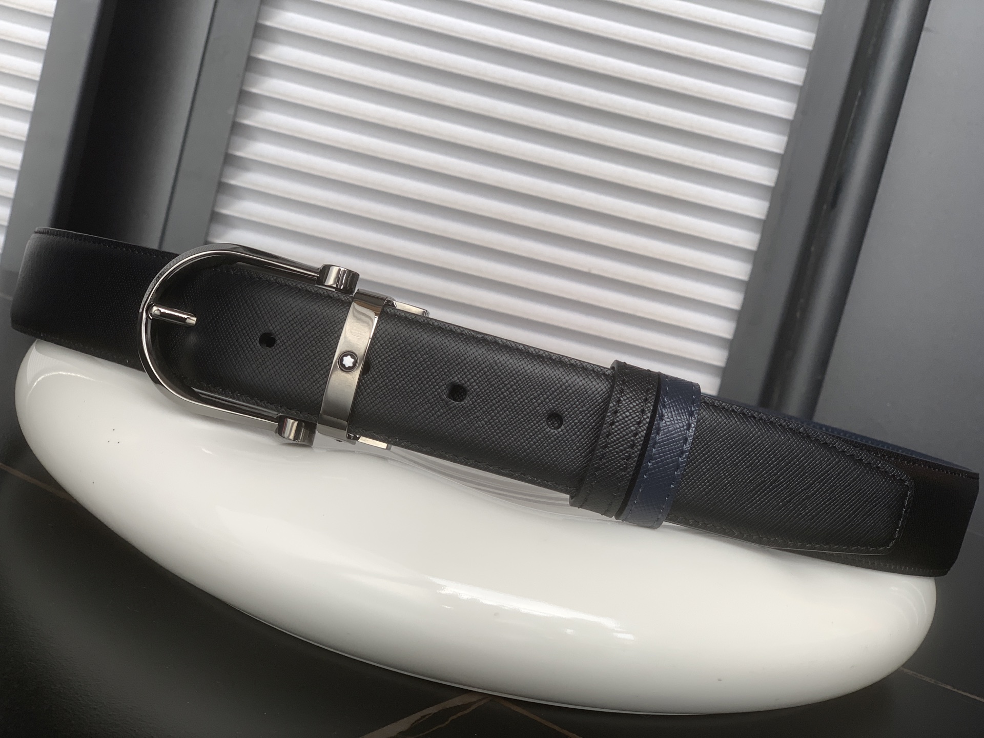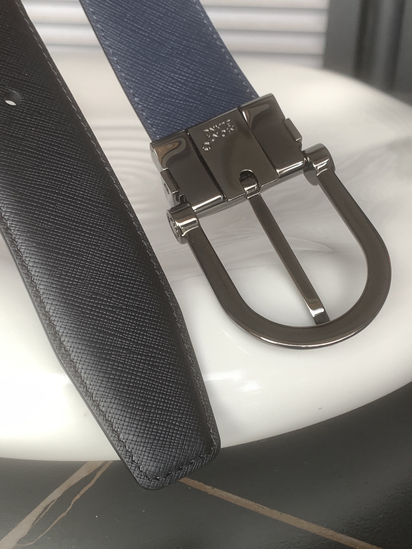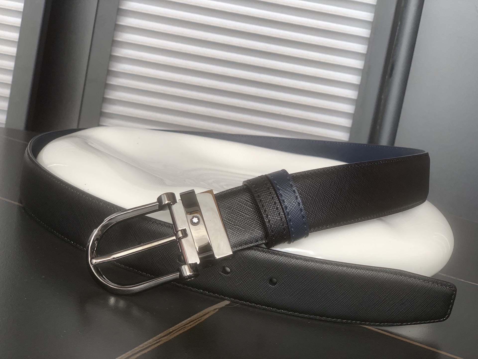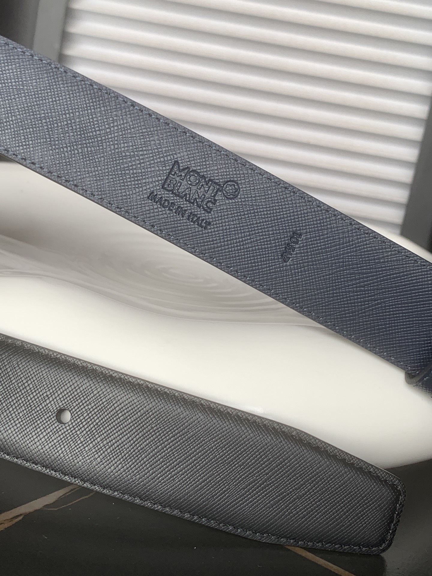 Montblanc factory direct. High-end dual-sided brown leather belt with palladium buckle. Adjustable length, 3.5cm width.