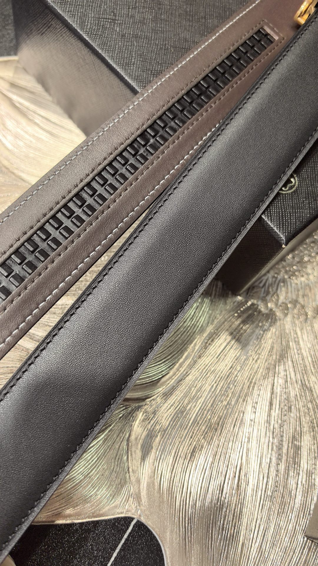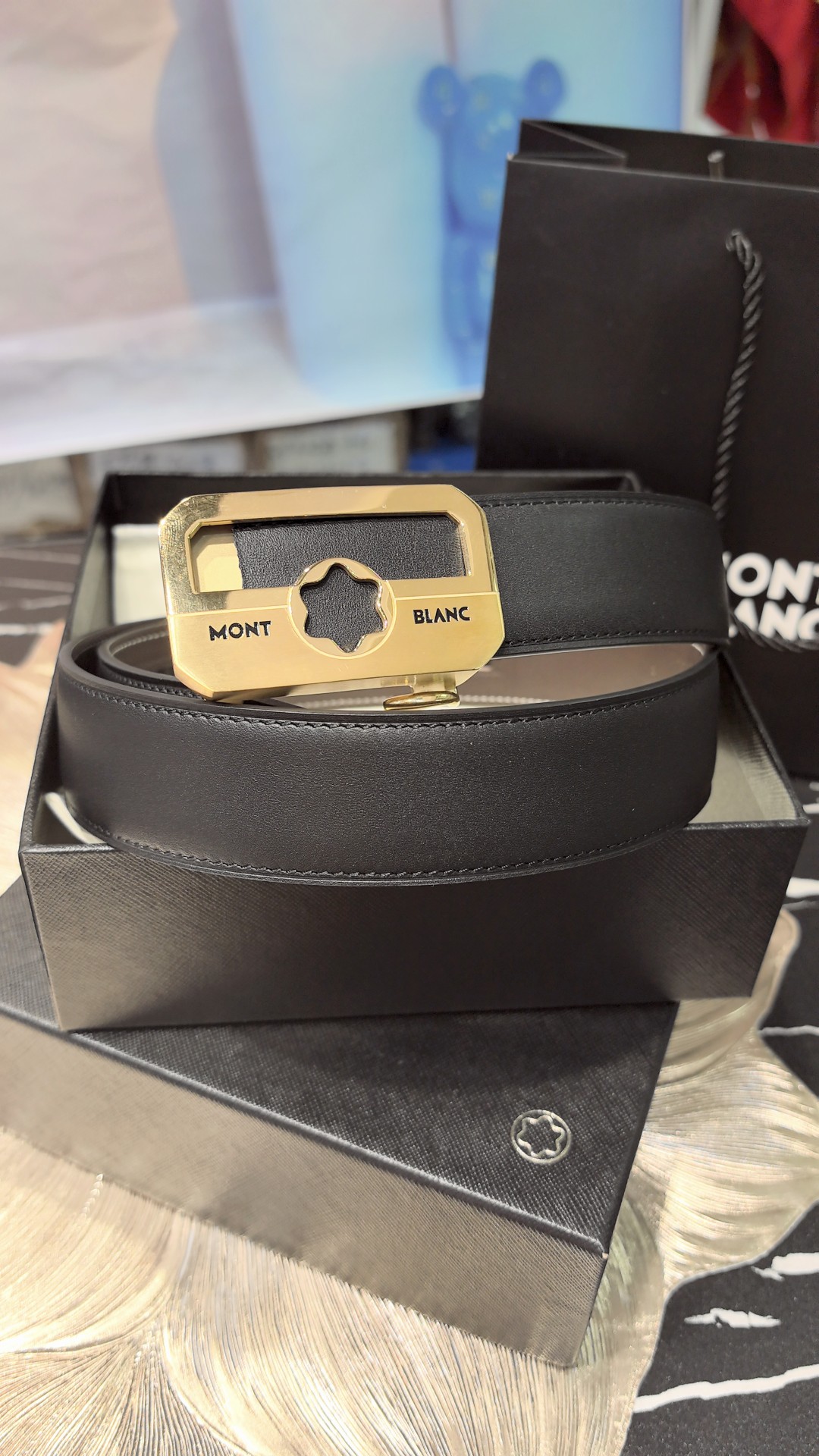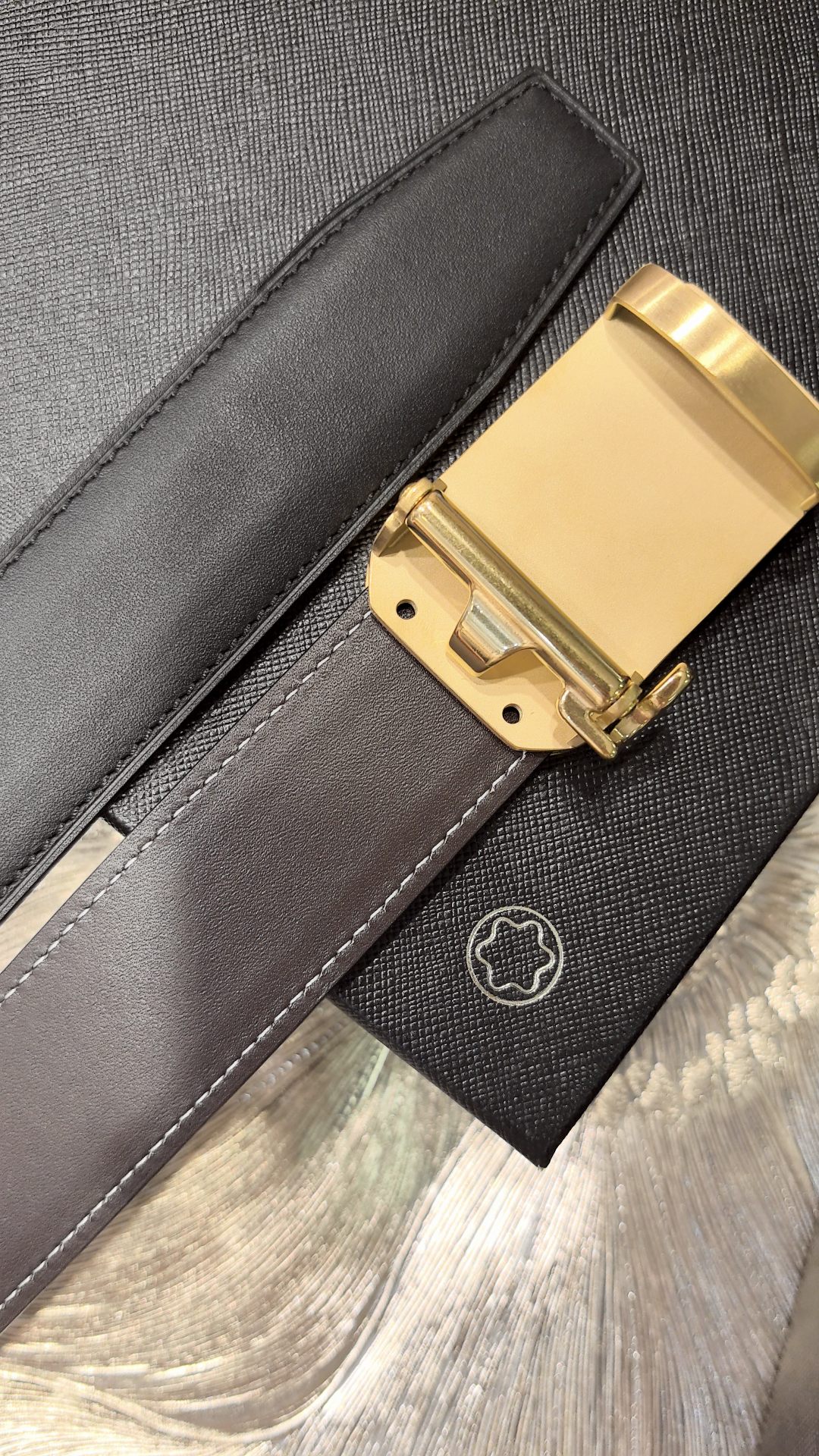 Montblanc original high-end quality, width 3.5 exquisite automatic steel buckle, Italian double-sided imported top-layer calfskin, original black and khaki, excellent feel, great on-body effect, men's favorite, business casual.