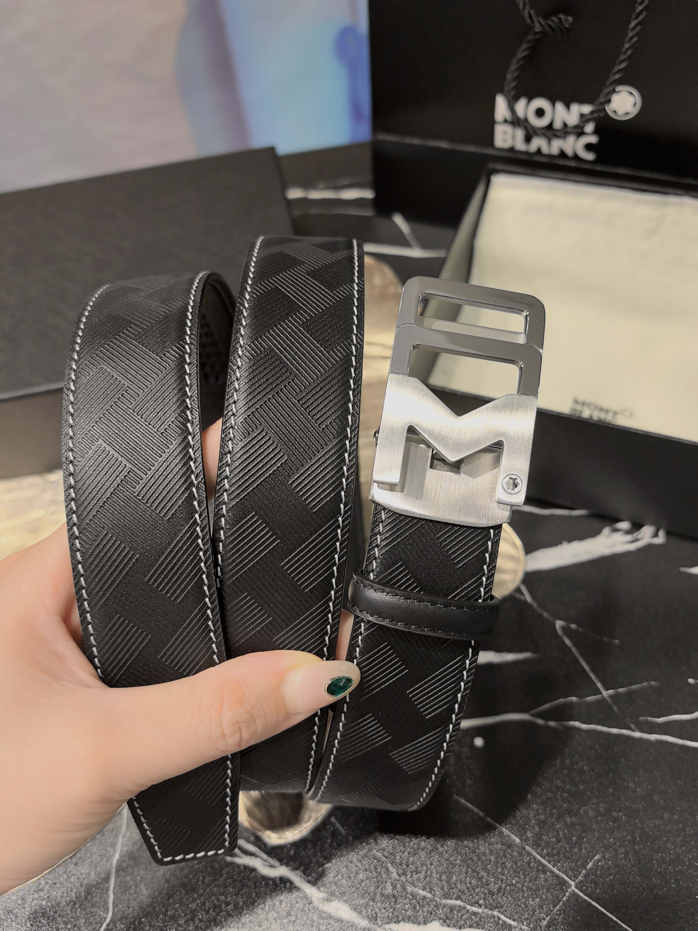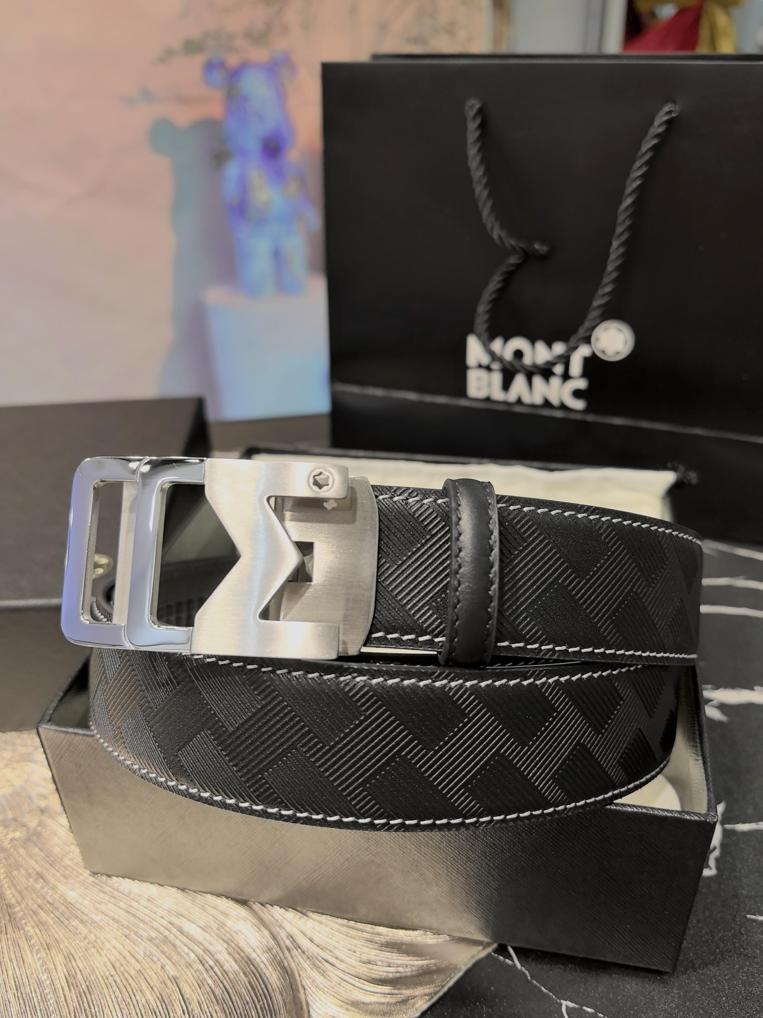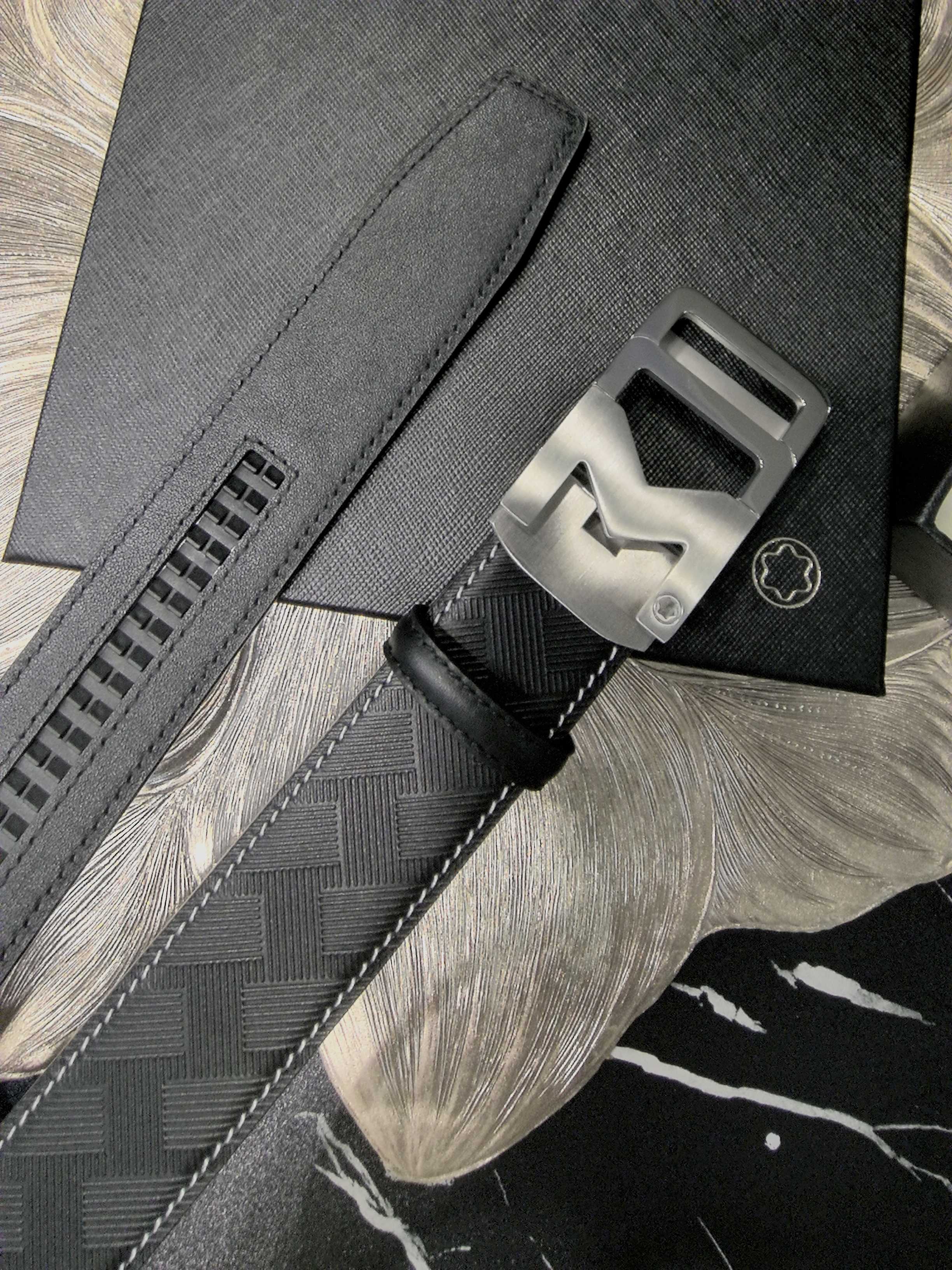 Montblanc high-quality 3.5cm automatic steel buckle Italian double-sided imported calfskin leather men's business casual belt