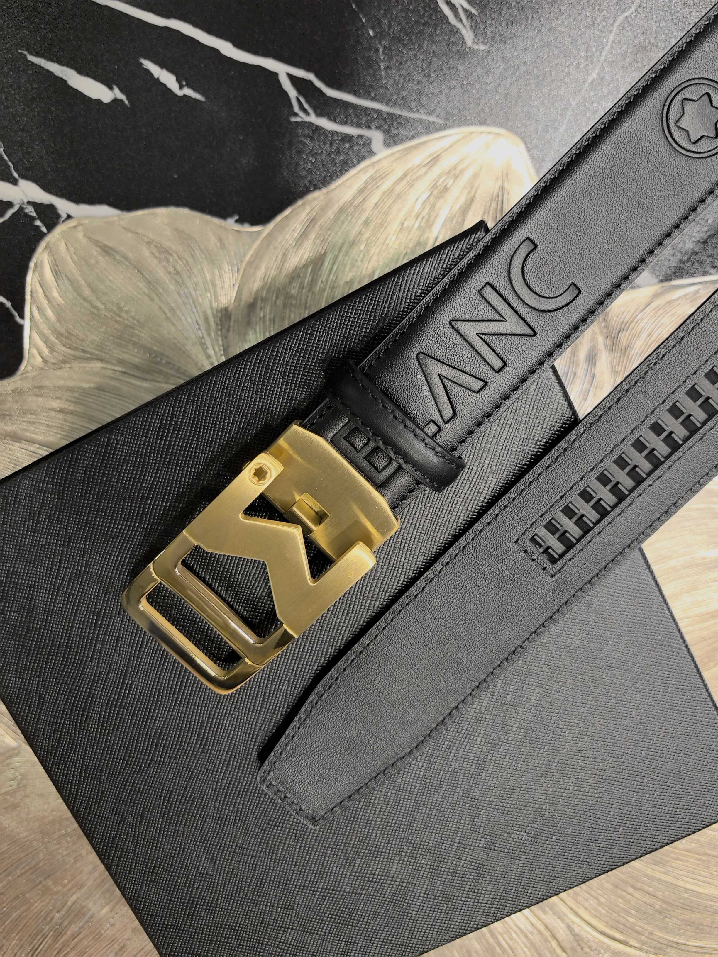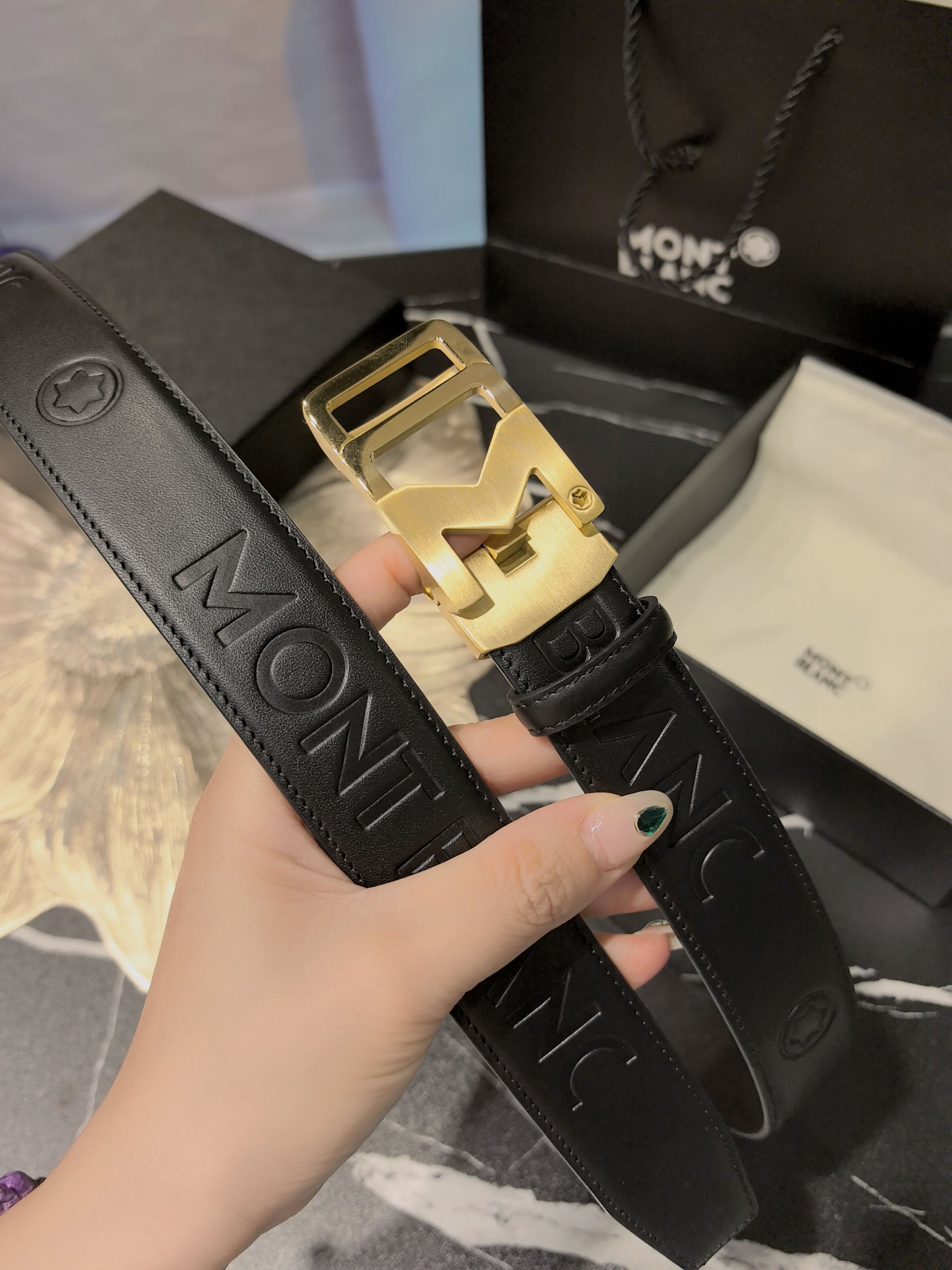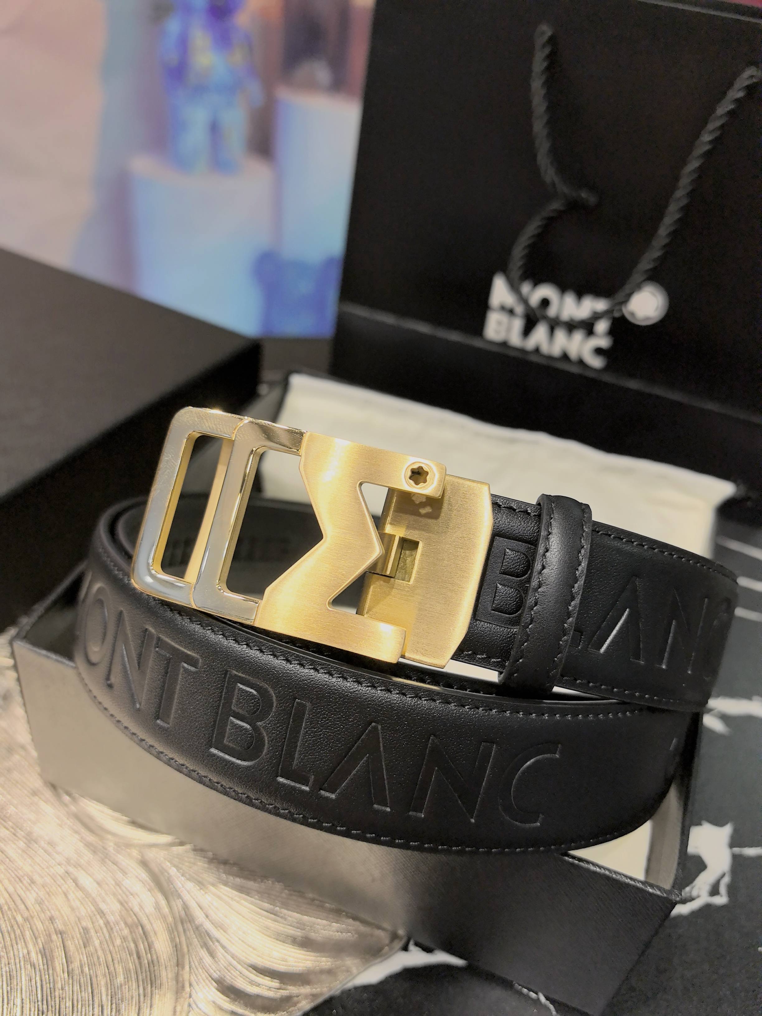 Montblanc original high-end quality, width 3.5 exquisite automatic steel buckle, Italian double-sided imported top-layer calfskin, original black and khaki, excellent feel, great on-body effect, men's favorite, business casual.