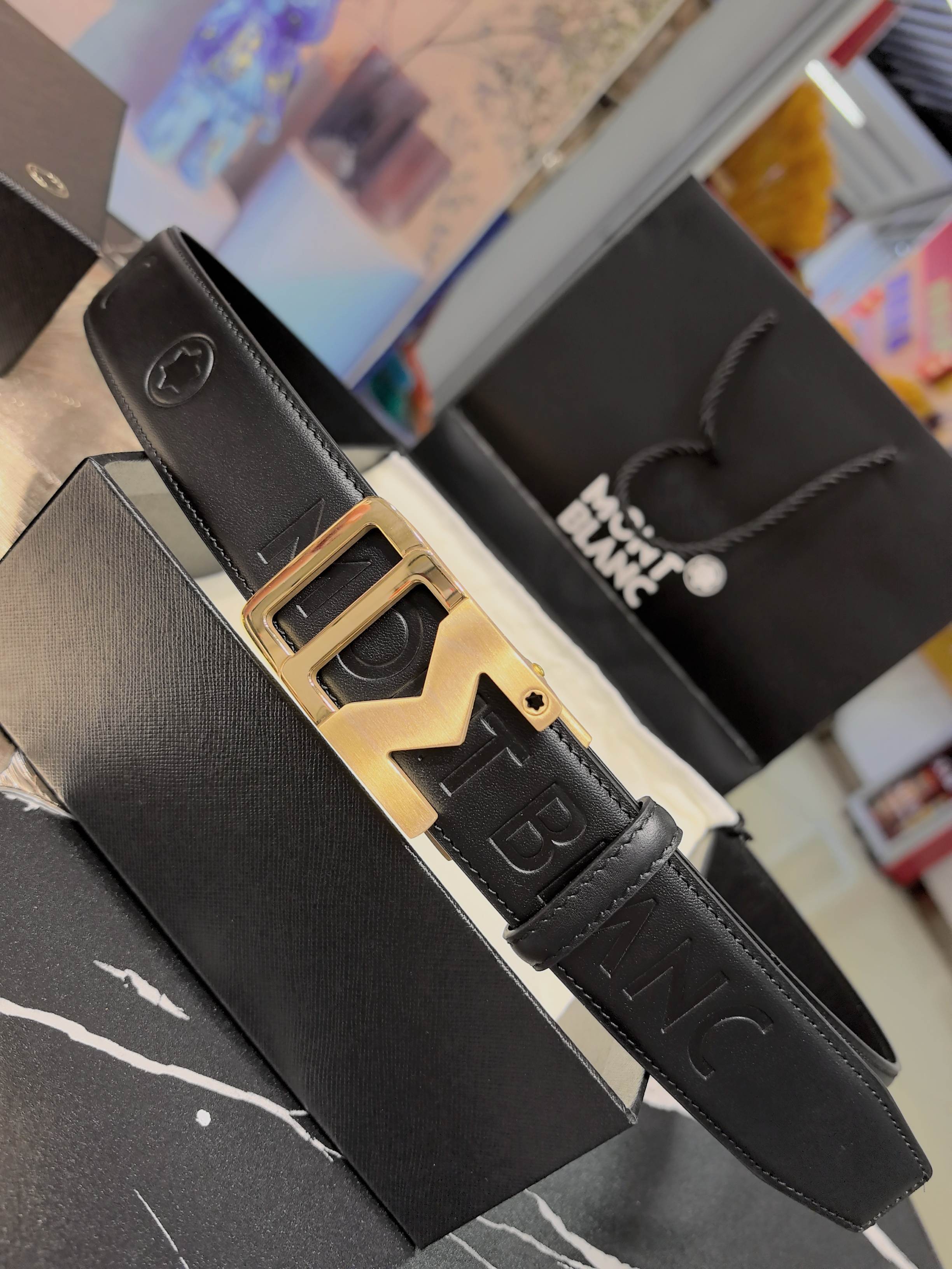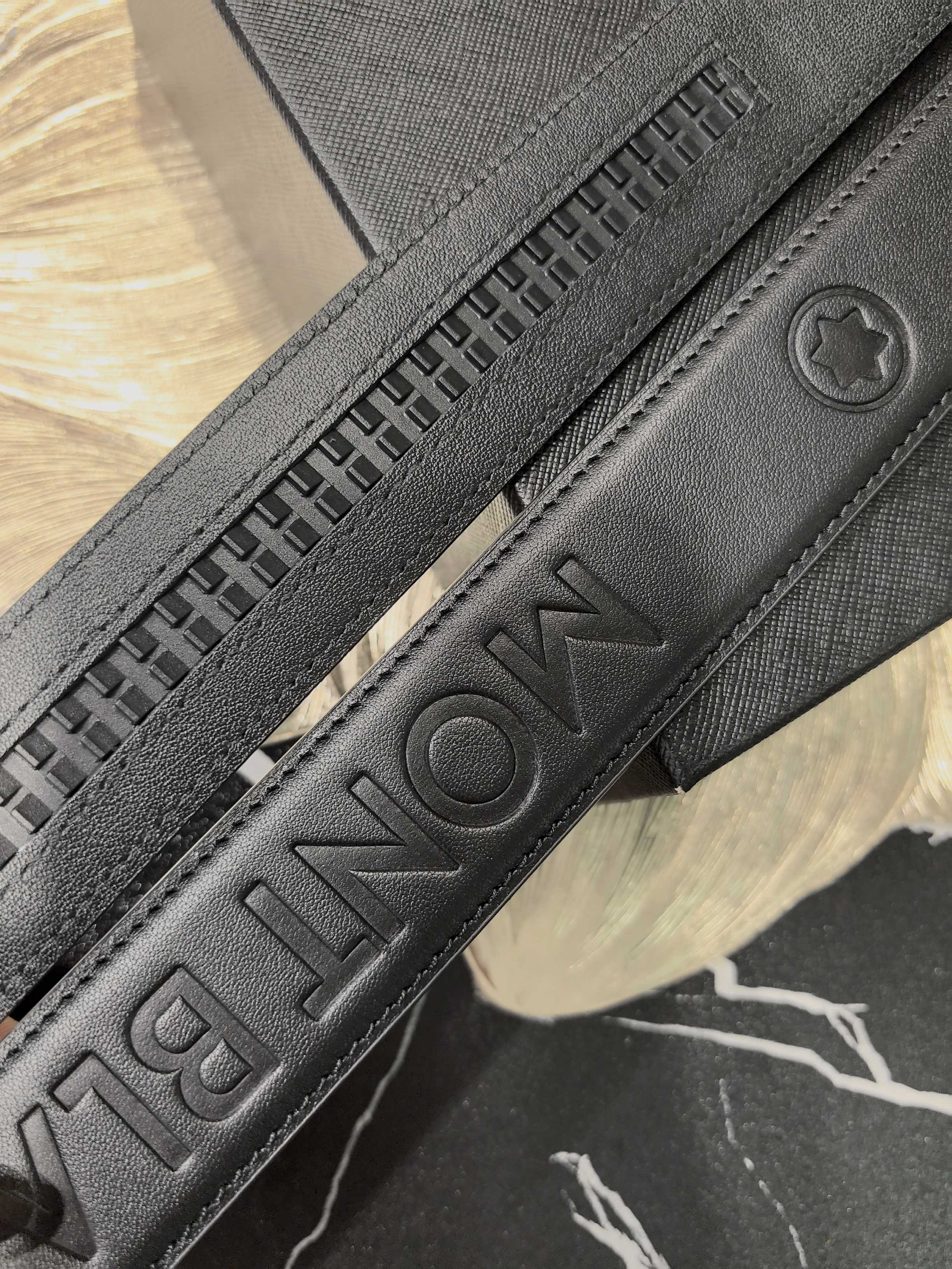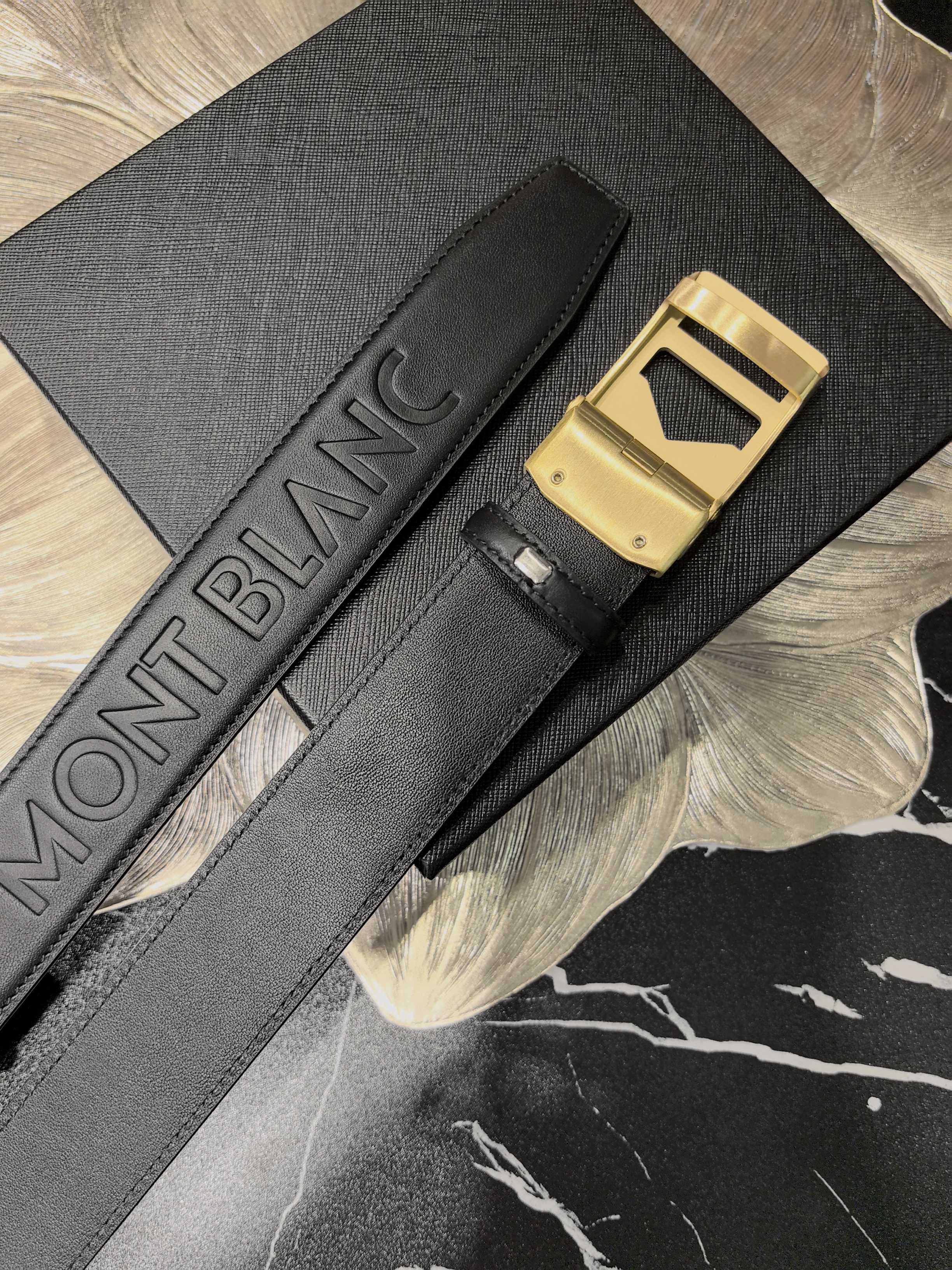 Montblanc high-quality 3.5cm width automatic steel buckle. Italian double-sided imported calfskin, black and tan, excellent texture. Ideal for men's business casual style.