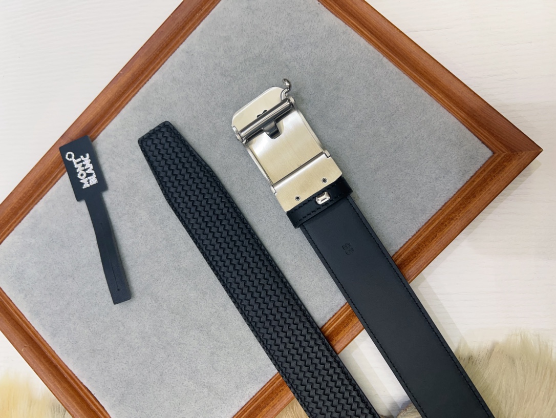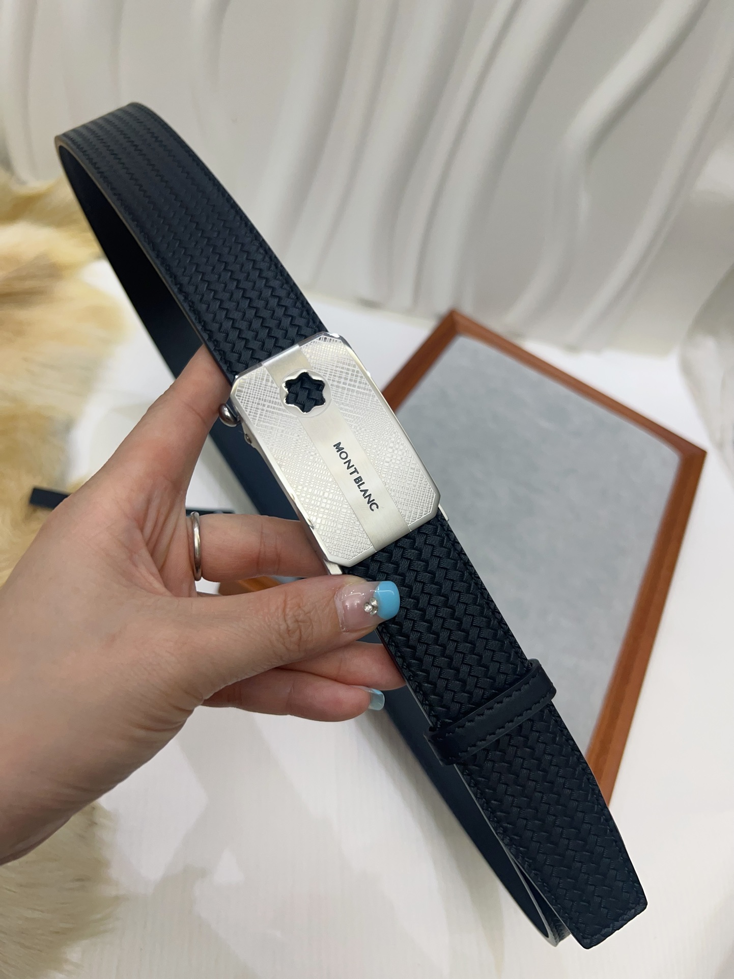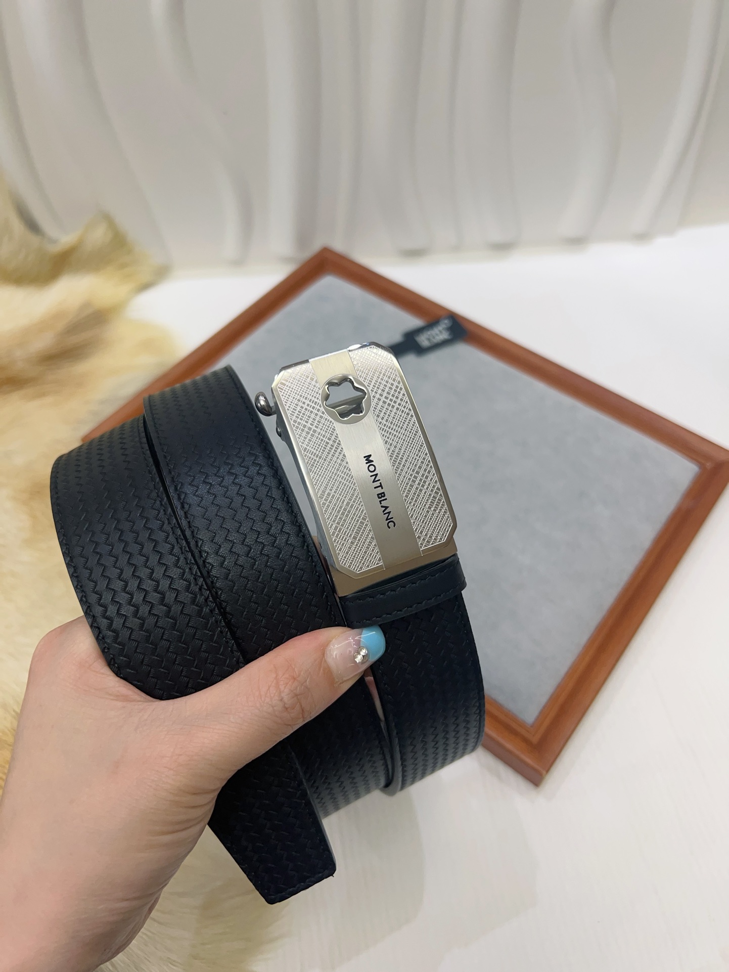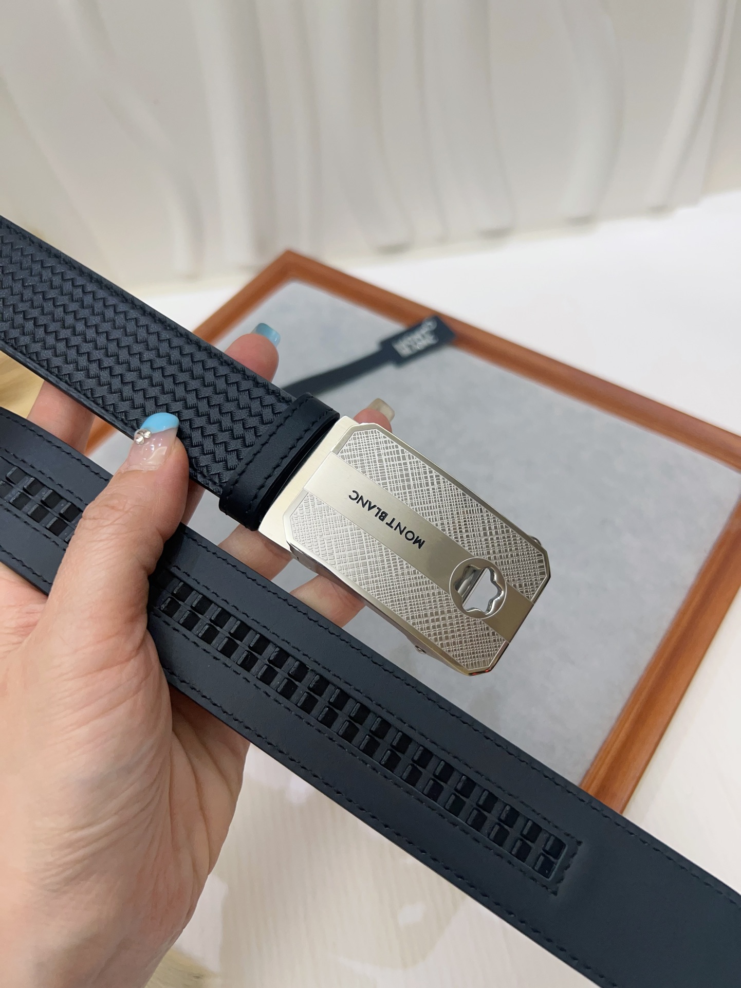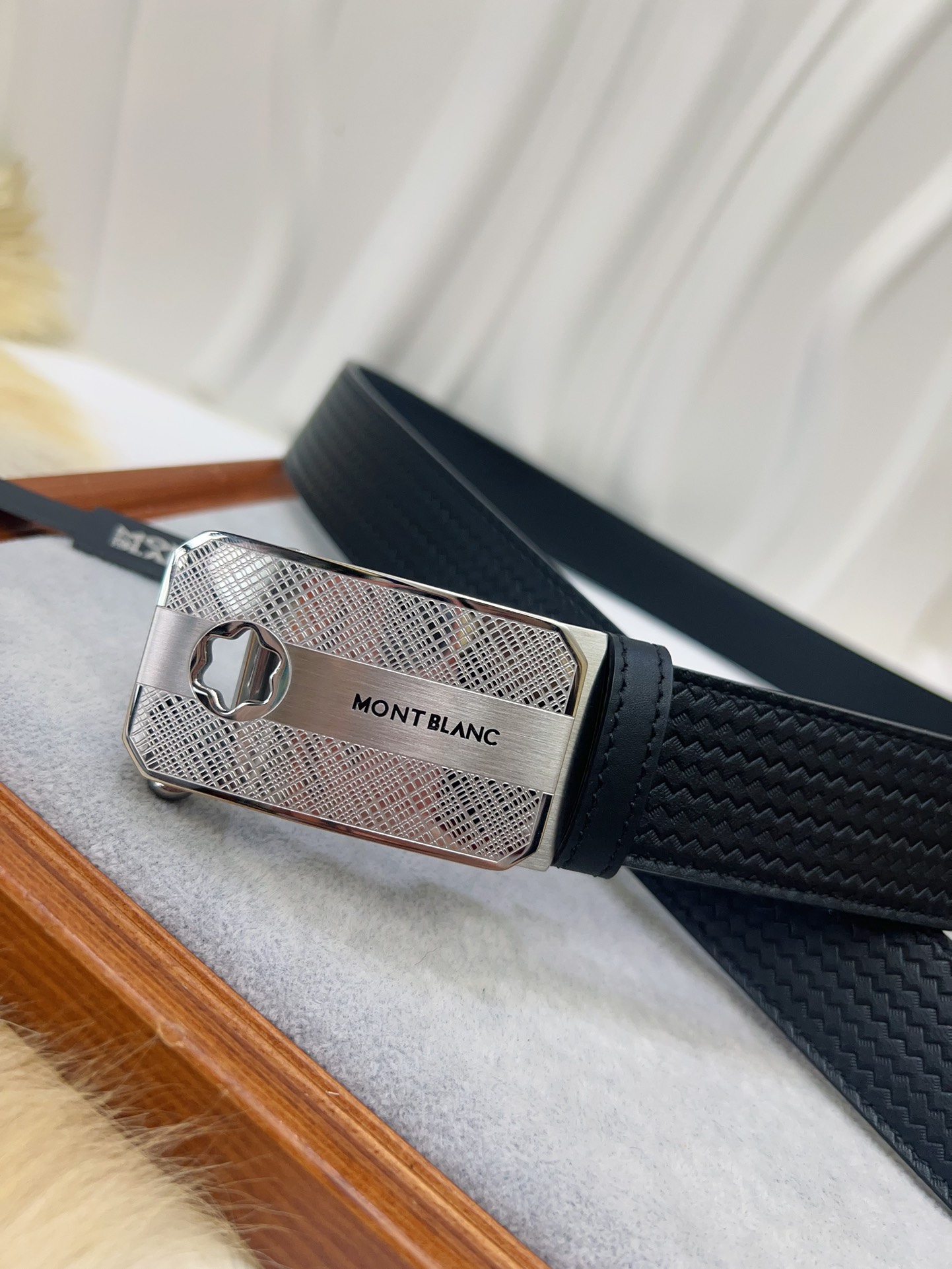 Montblanc high-quality 3.5cm width automatic steel buckle, Italian double-sided imported calfskin, excellent original feel, great for men's business casual wear.