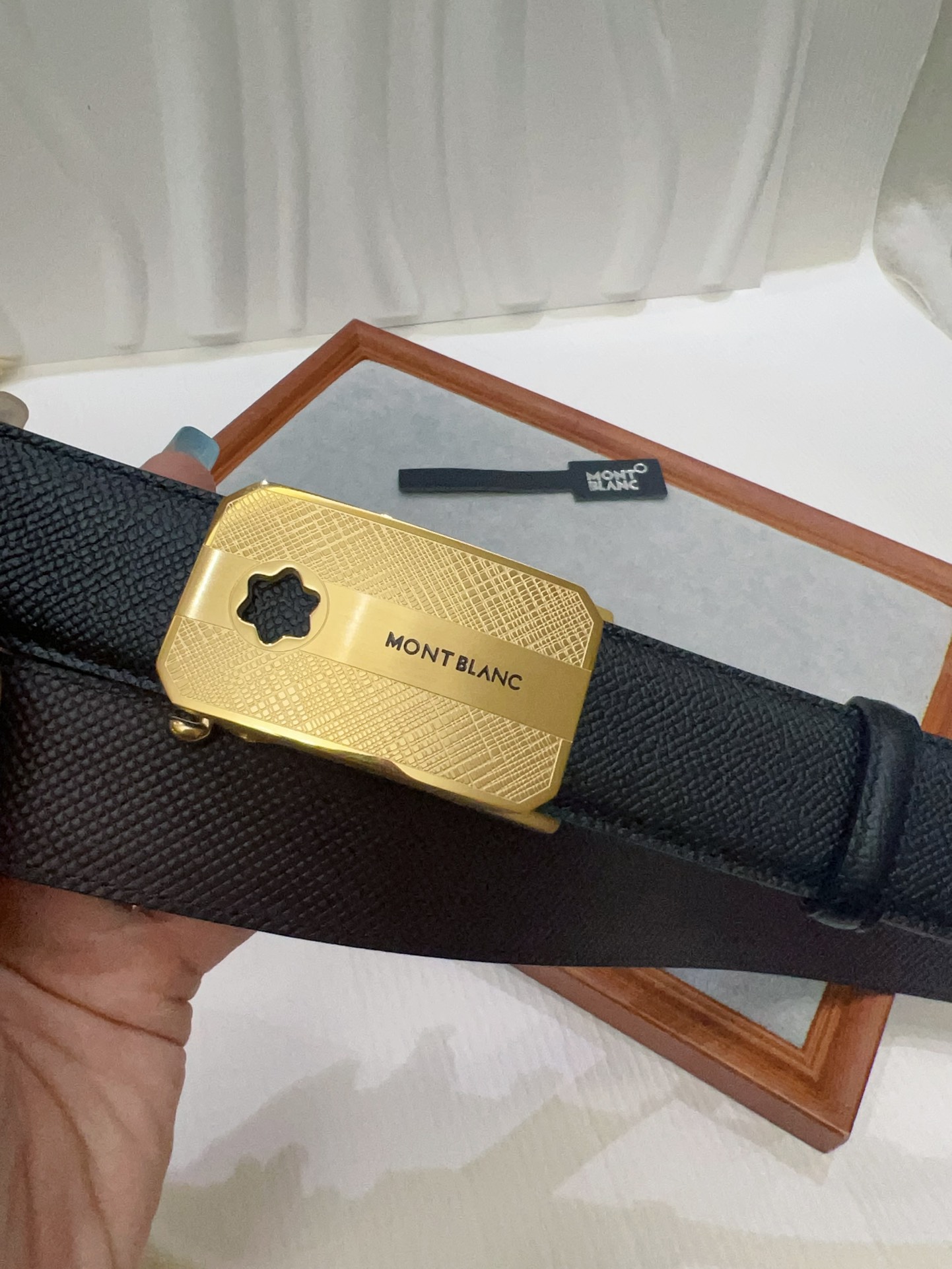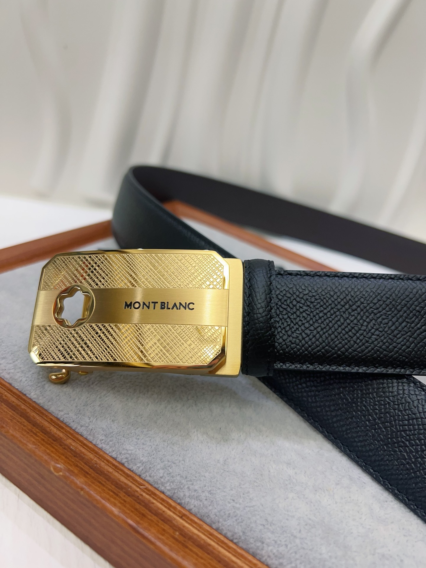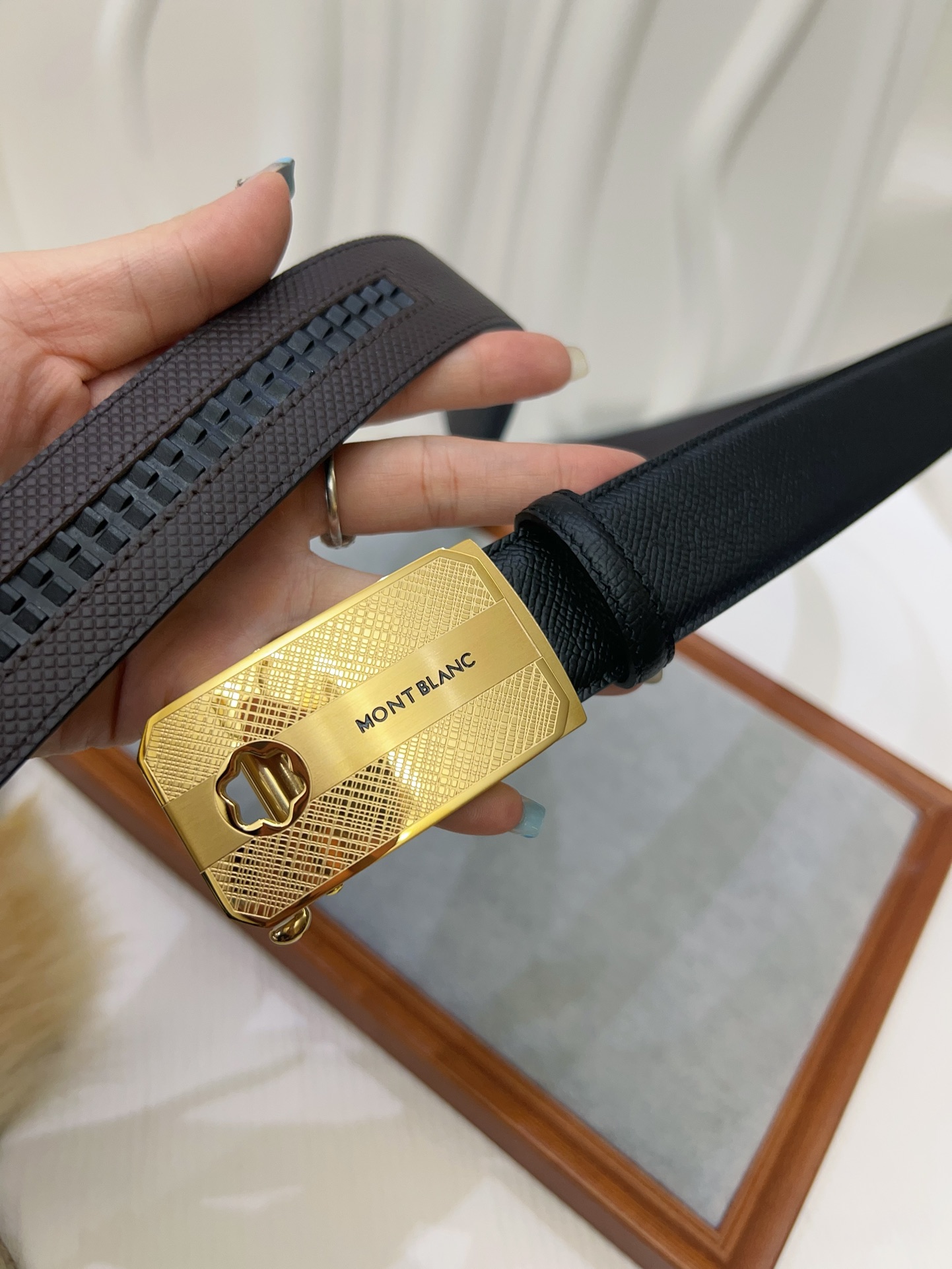 Montblanc high-quality 3.5cm width automatic steel buckle. Italian double-sided imported calfskin, excellent original texture. Great for men's business casual style.