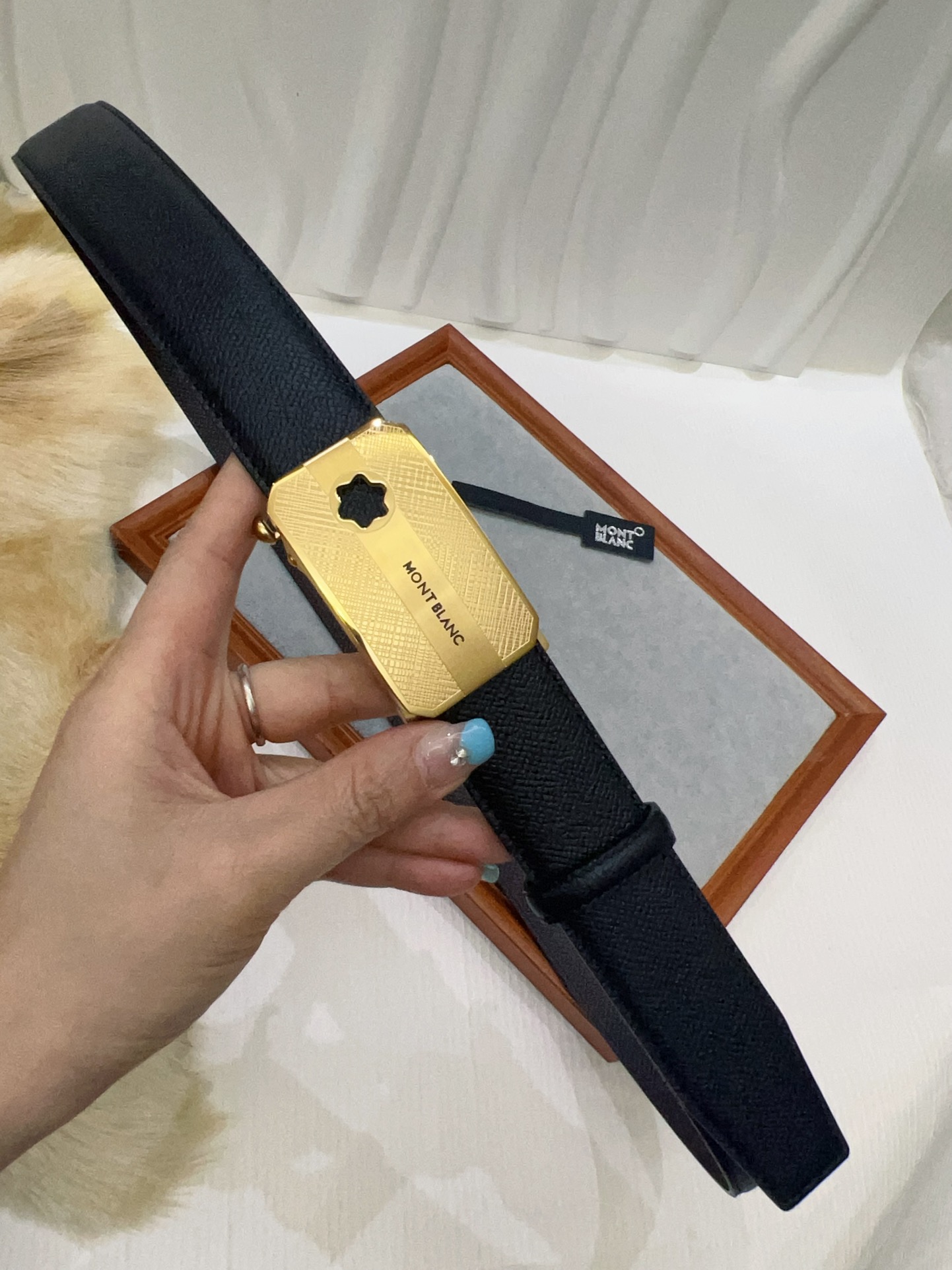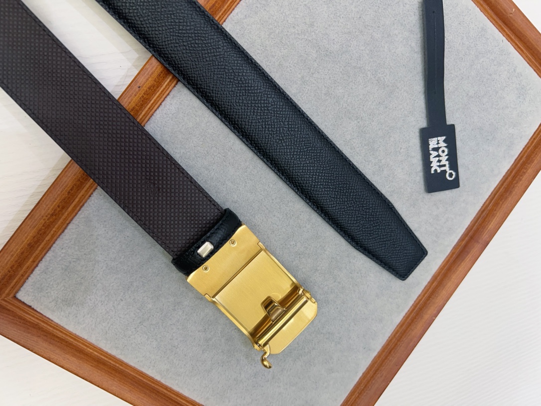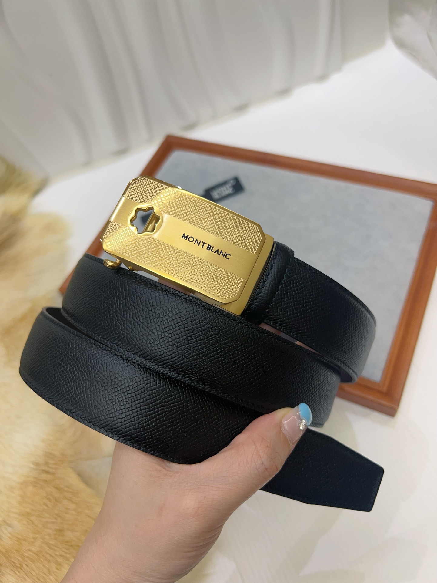 Montblanc high-quality 3.5cm width automatic steel buckle. Italian double-sided imported calfskin, excellent original texture. Great for men's business casual style.