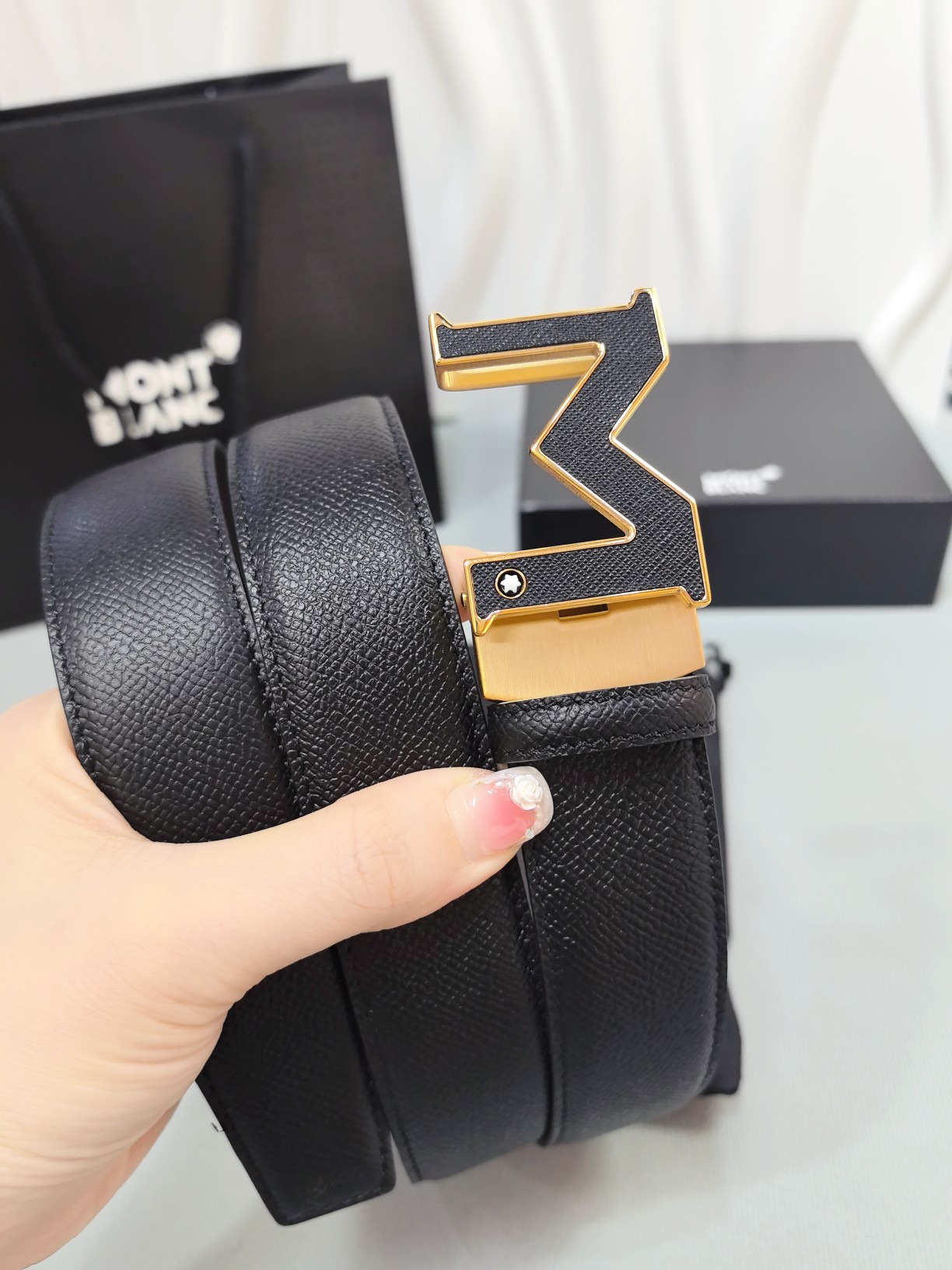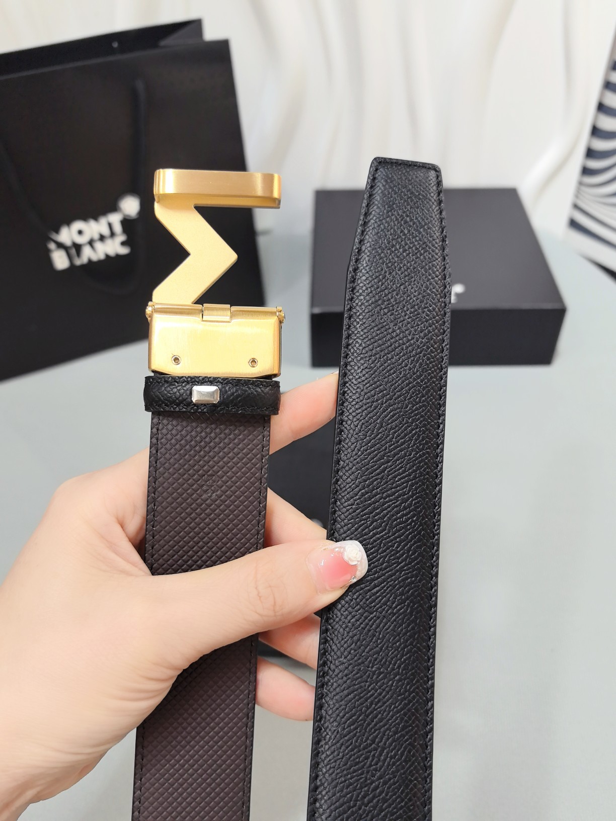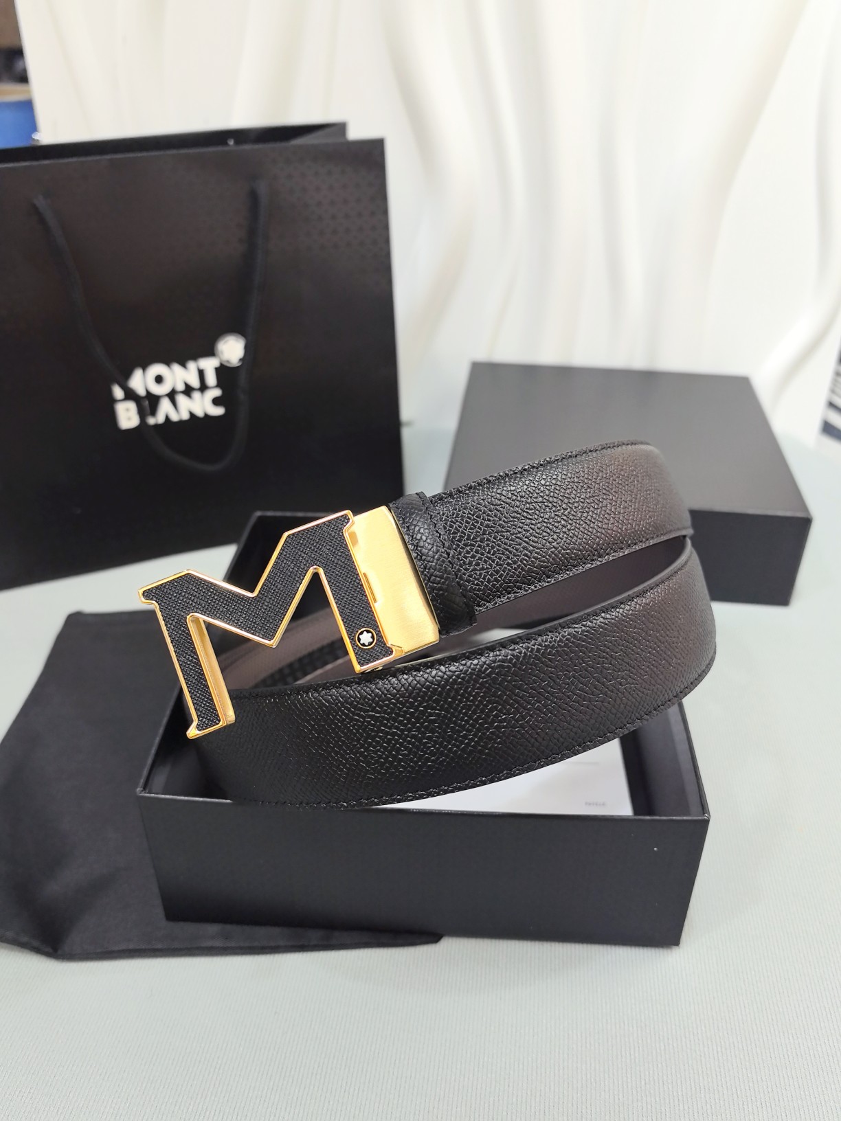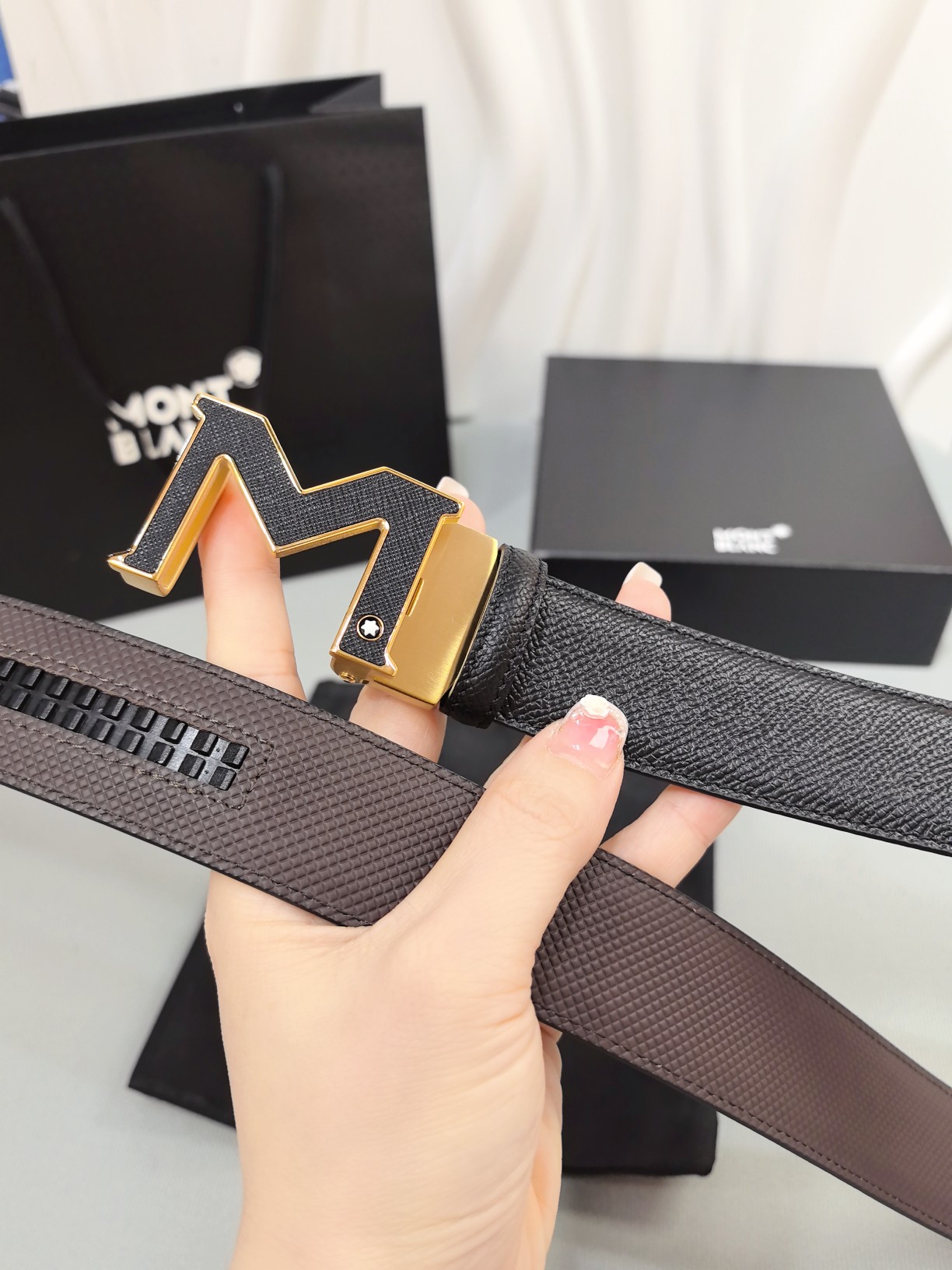 Montblanc original high-end quality, width 3.5 exquisite automatic steel buckle, Italian double-sided imported top-layer calfskin, original black and khaki, excellent feel, great on-body effect, men's favorite, business casual
