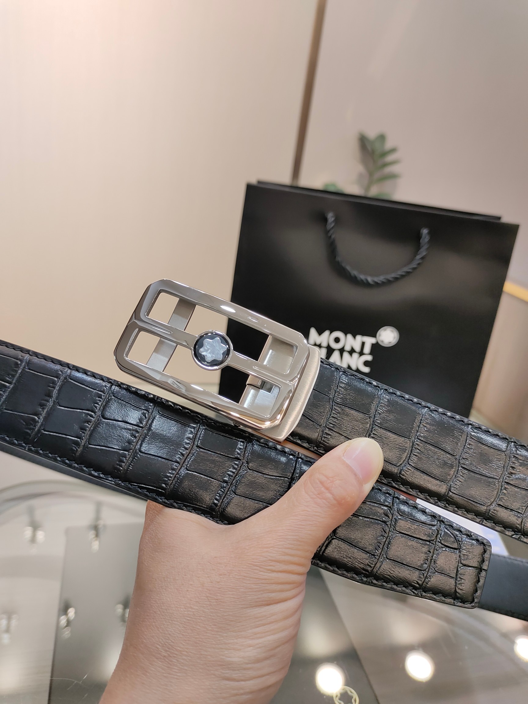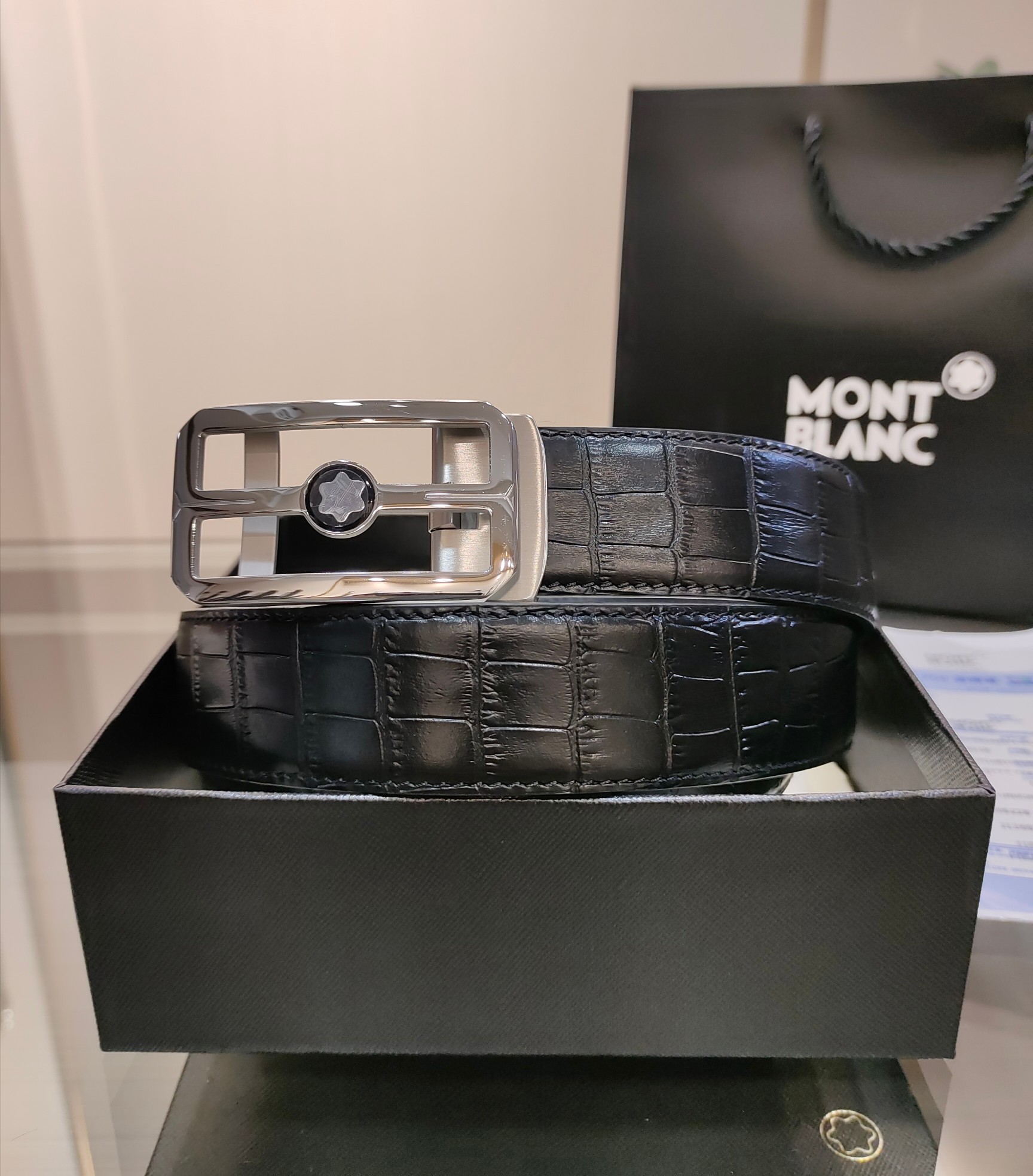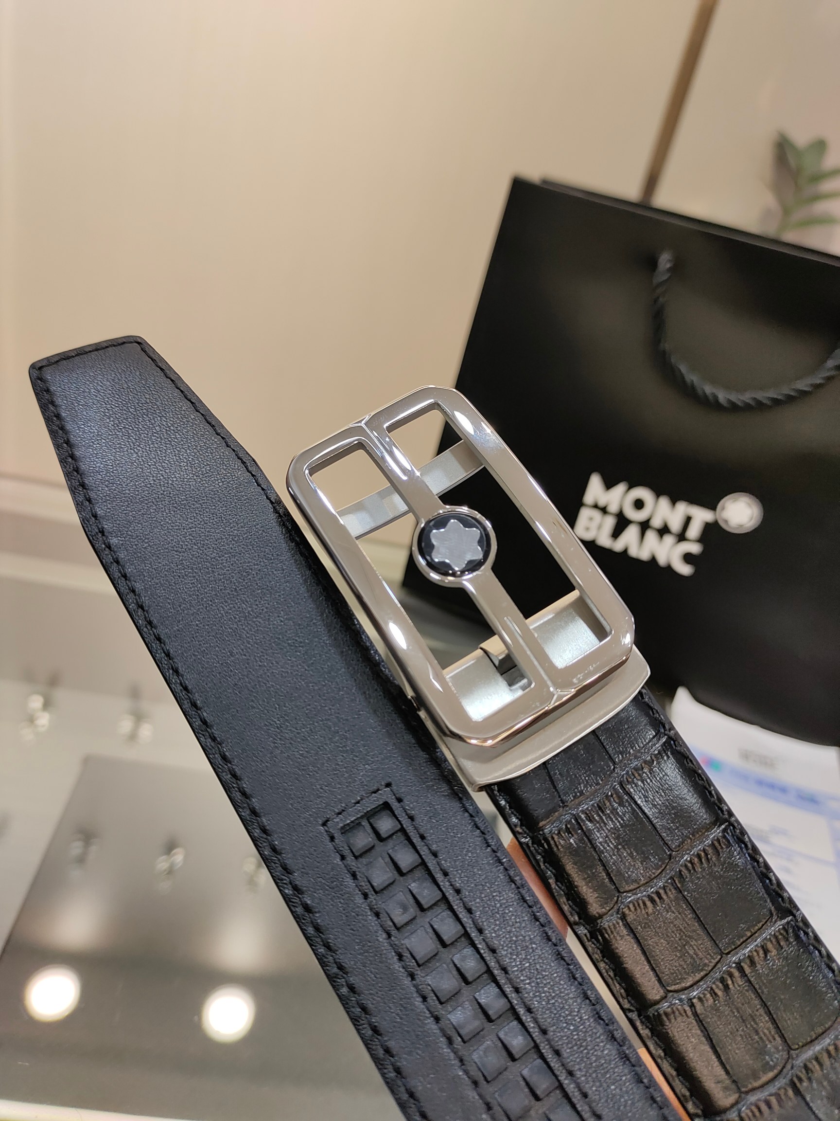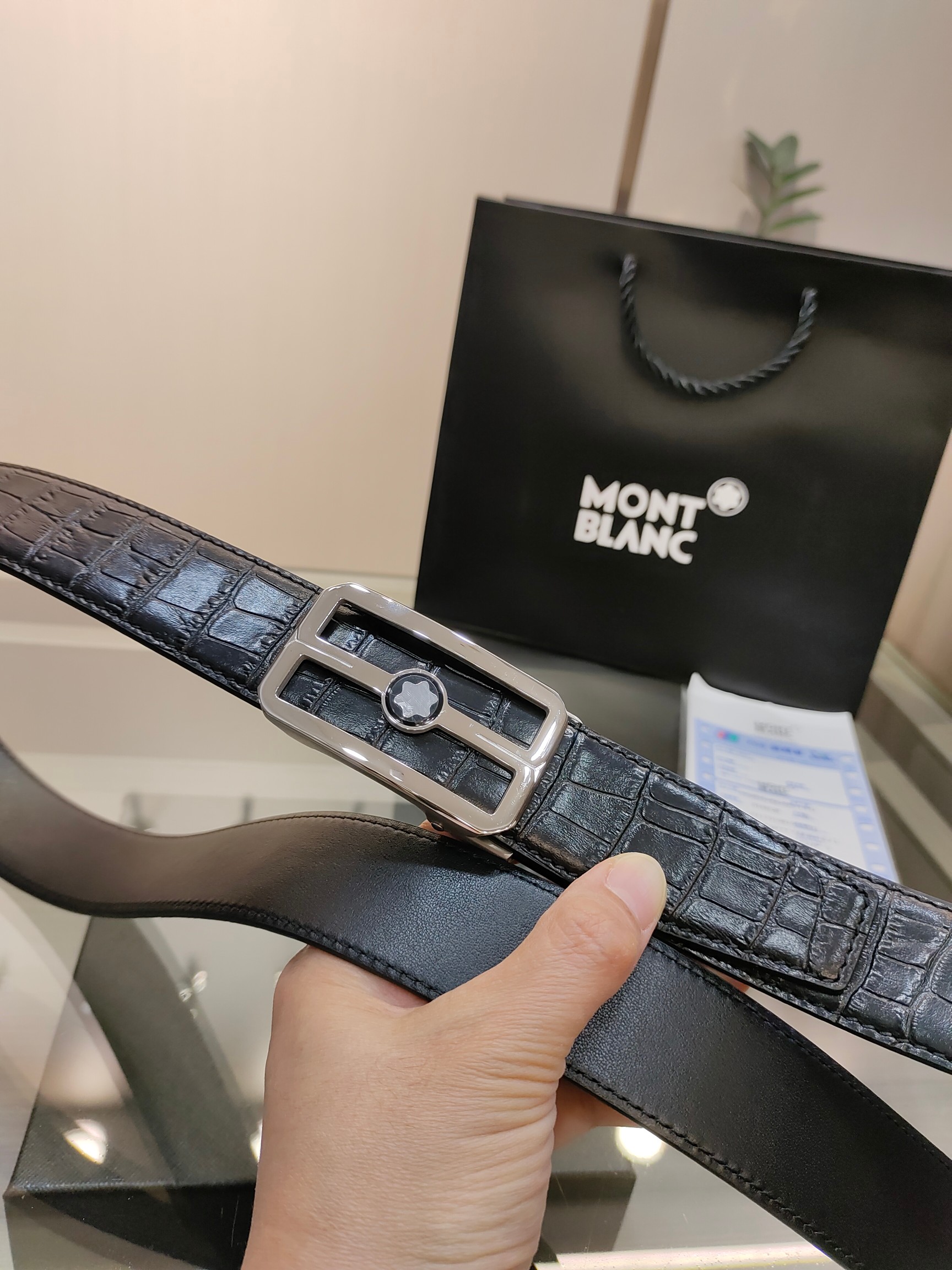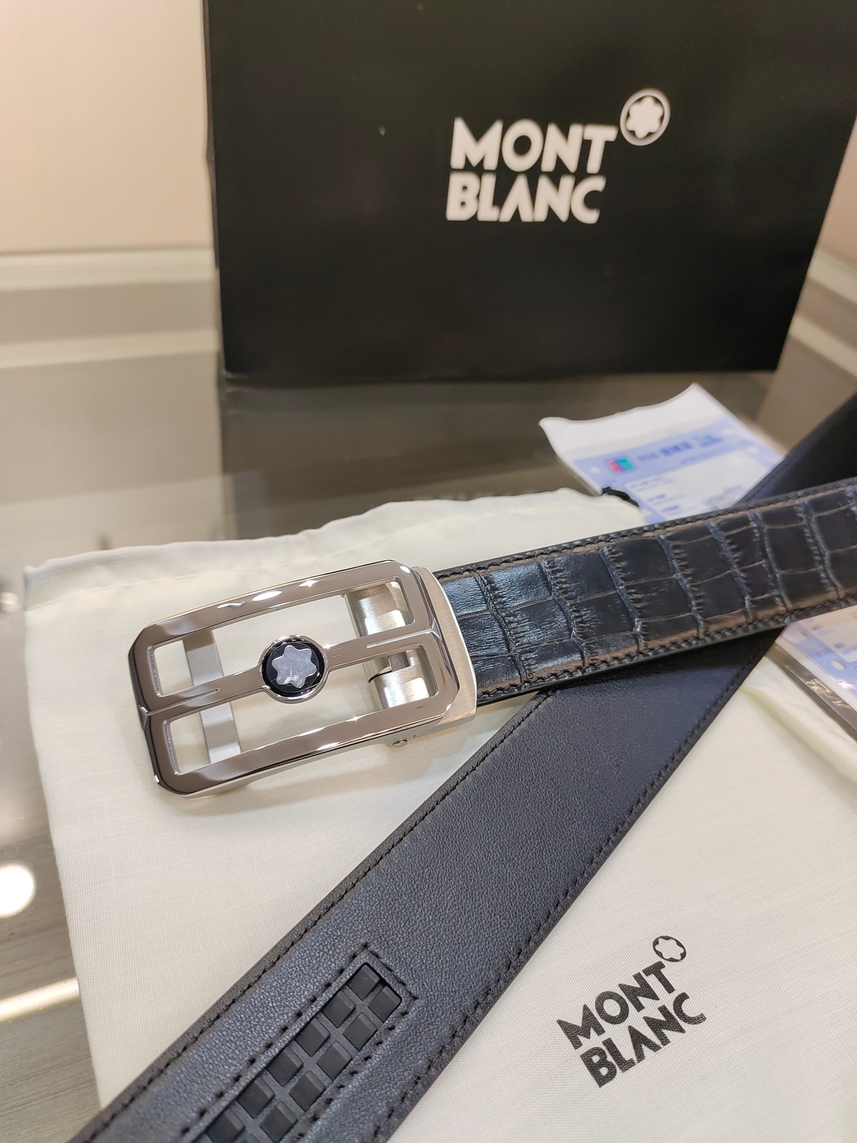 Montblanc Men's Automatic Belt - Width 34MM Premium Steel Buckle Exquisitely Crafted Soft Feel Length Can Be Adjusted