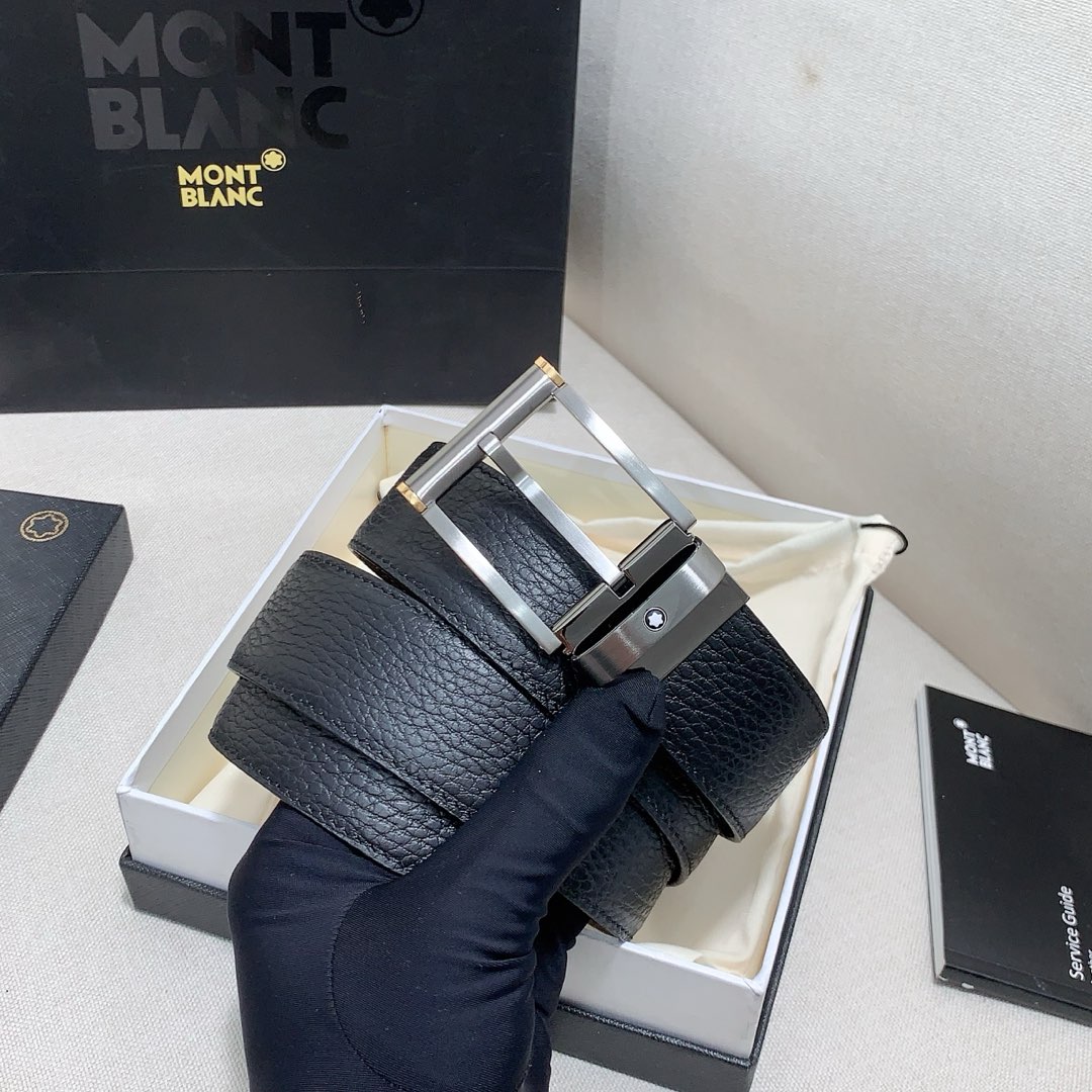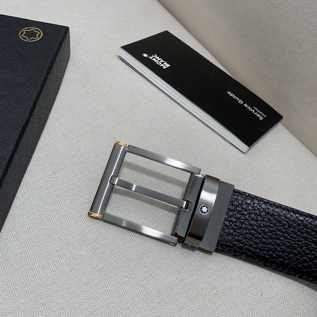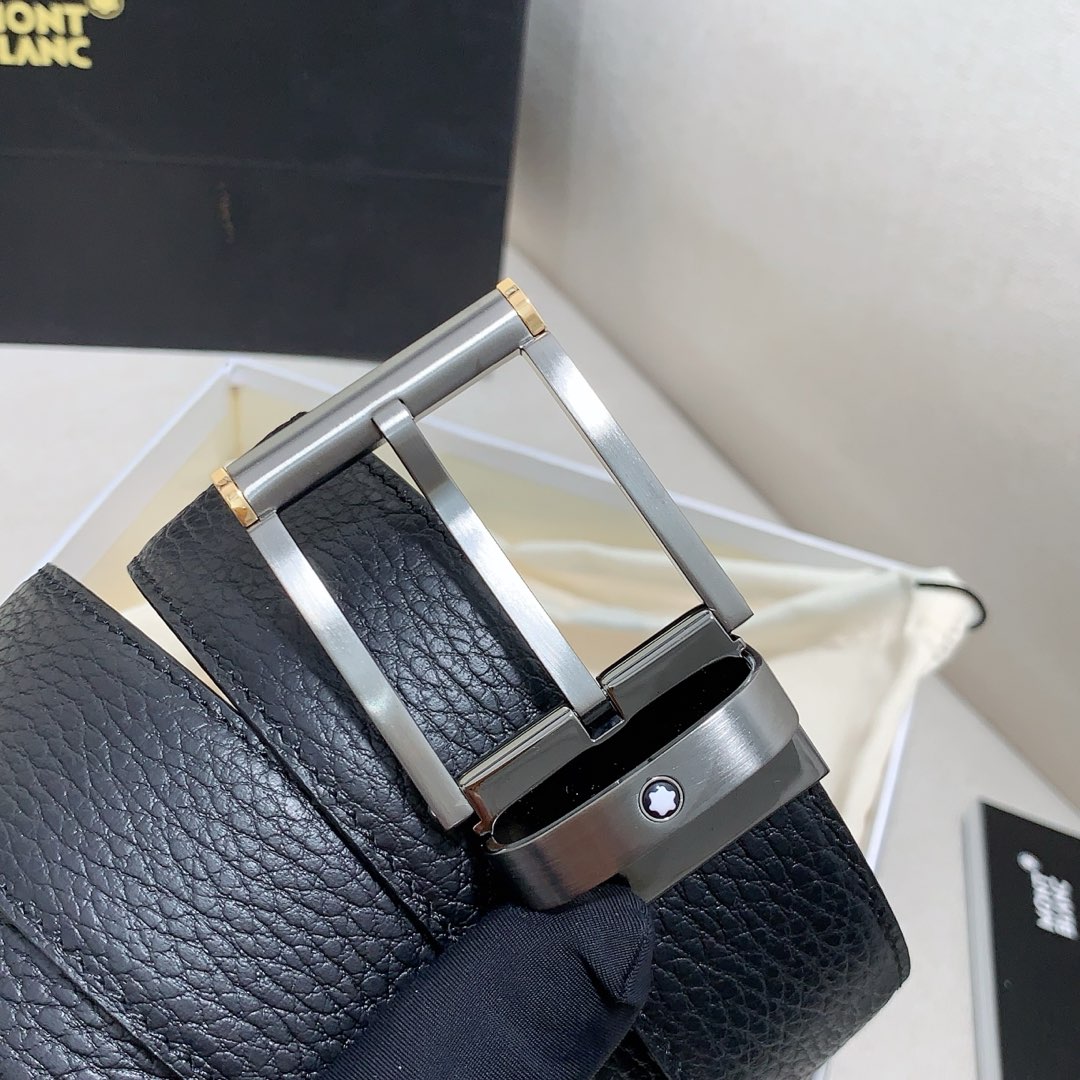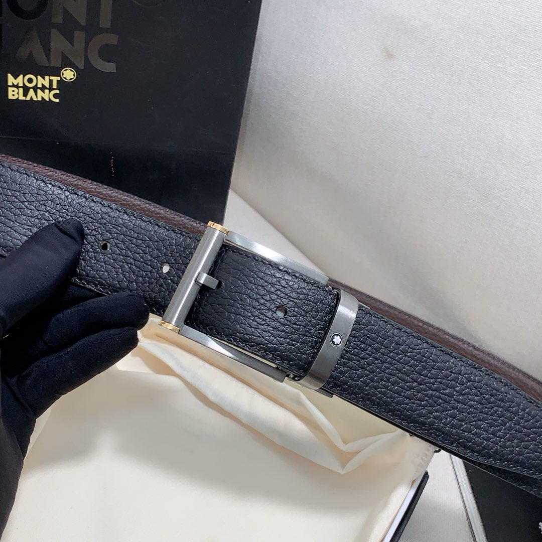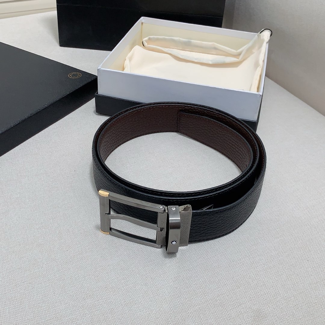Montblanc men's belt, 3.5cm wide, imported double-sided leather, adjustable size, versatile brass buckle.