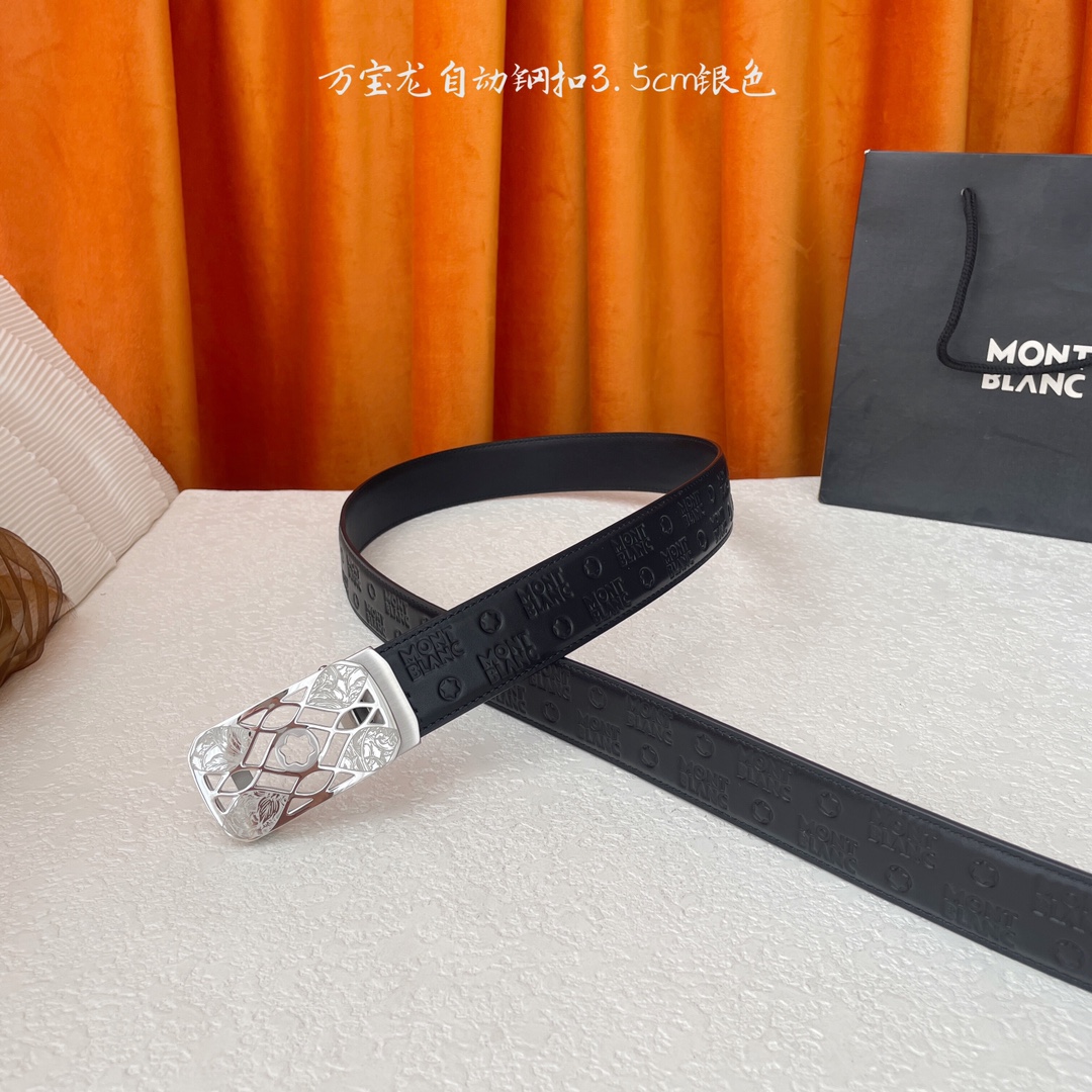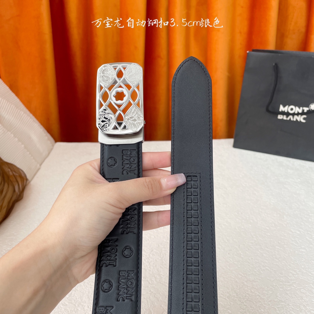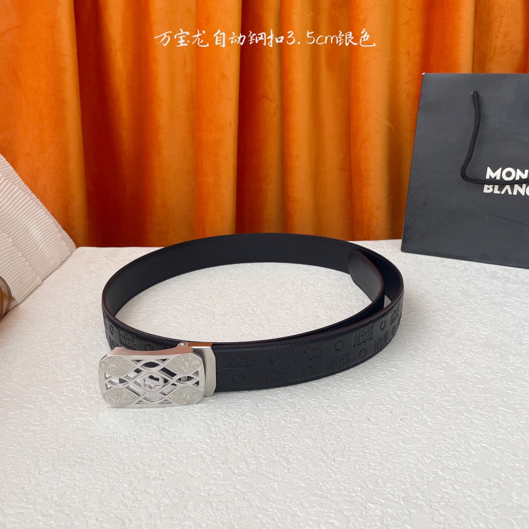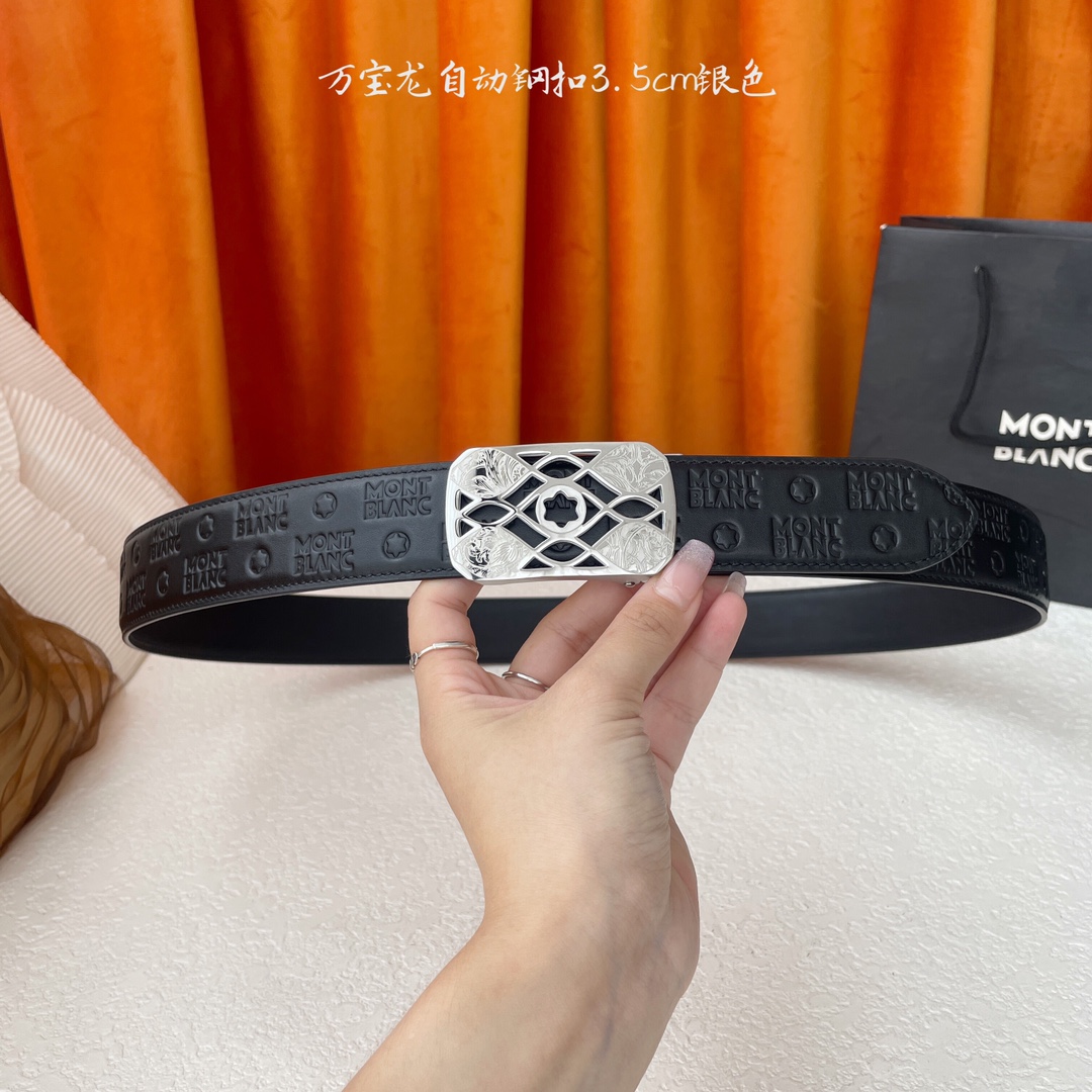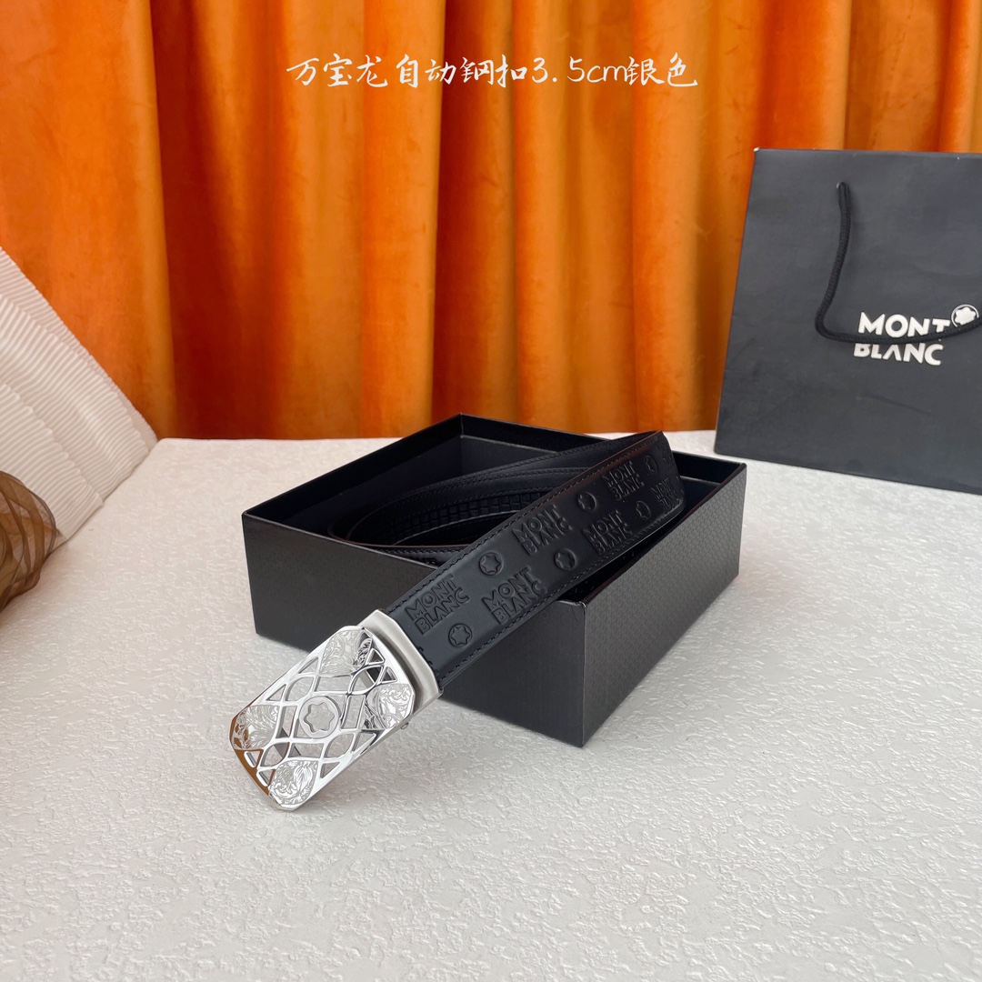 Montblanc men's leather belt, 3.5cm width, automatic buckle.