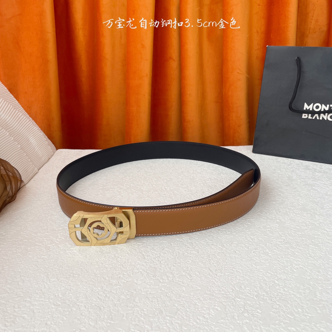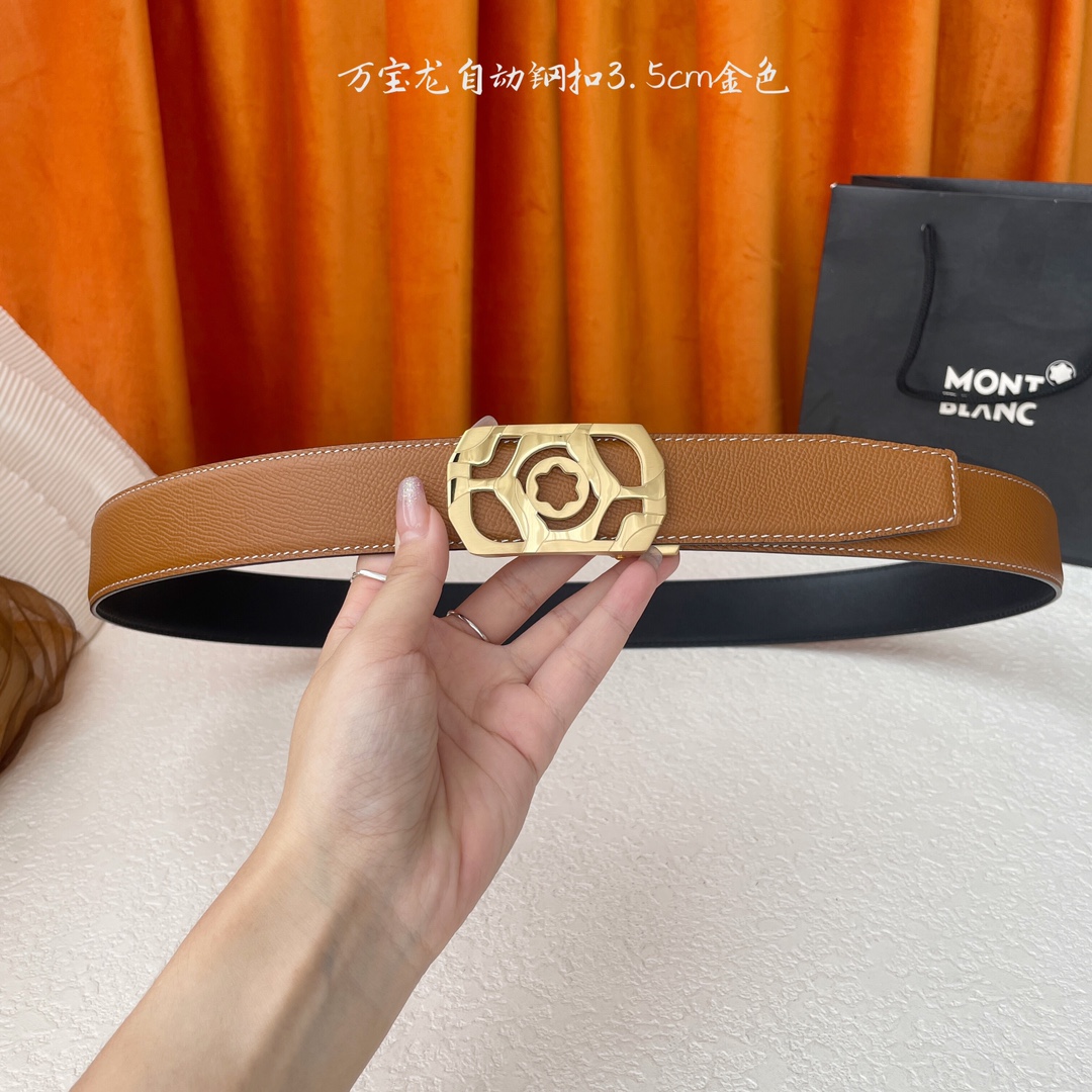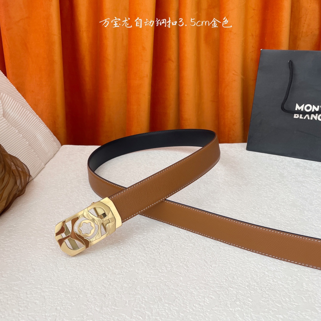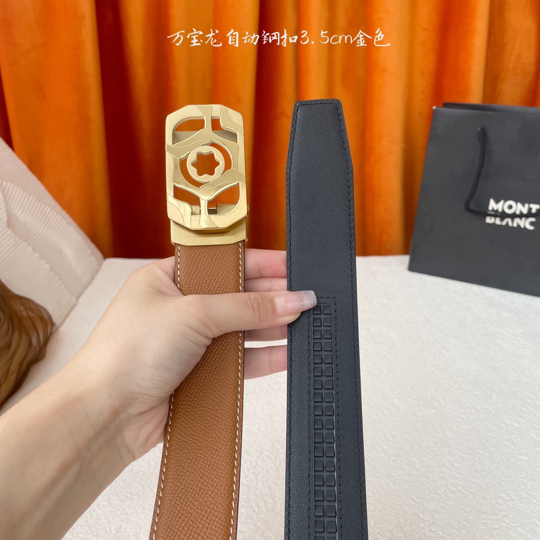 Montblanc men's leather belt, 3.5cm width, automatic buckle.
