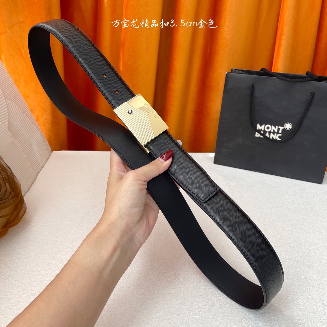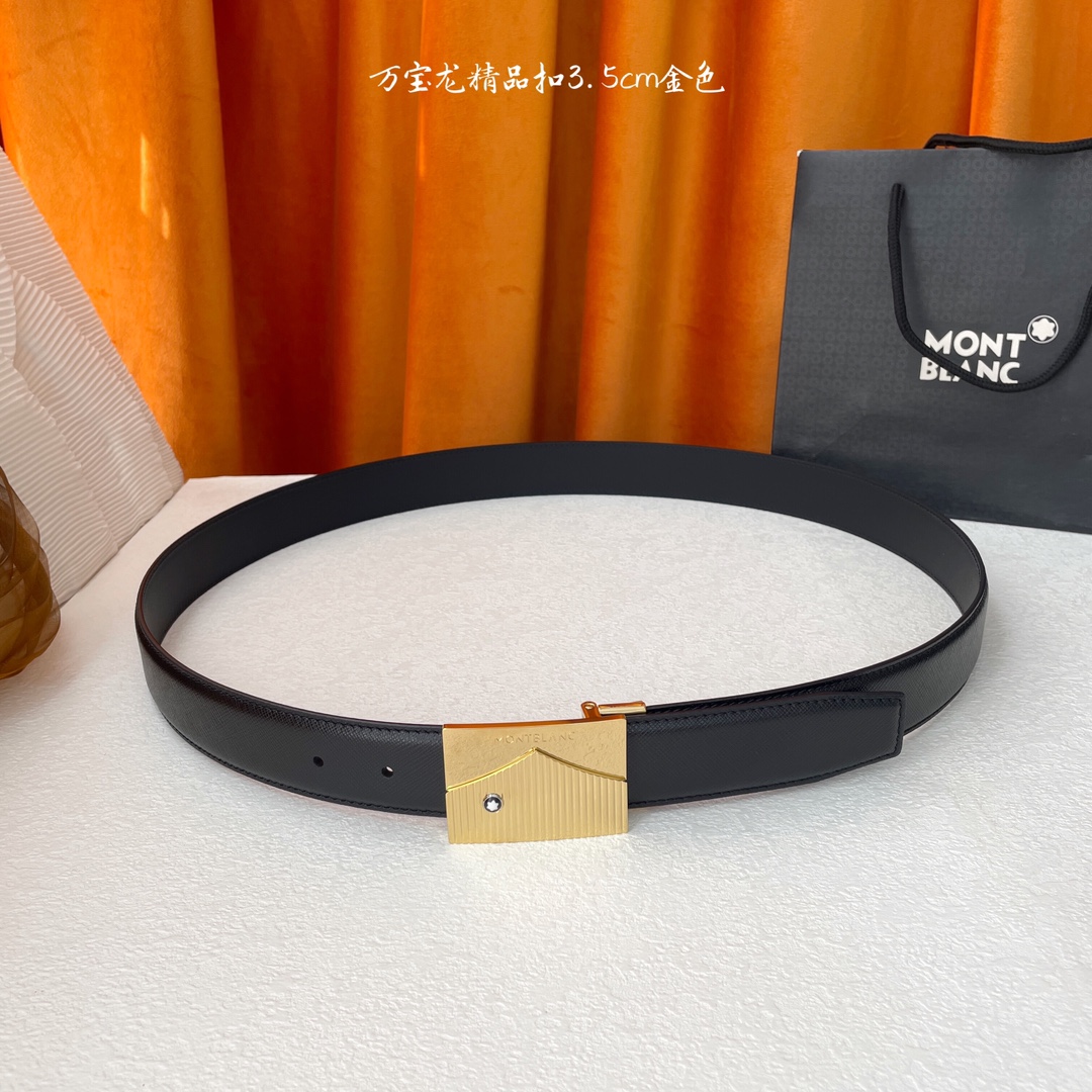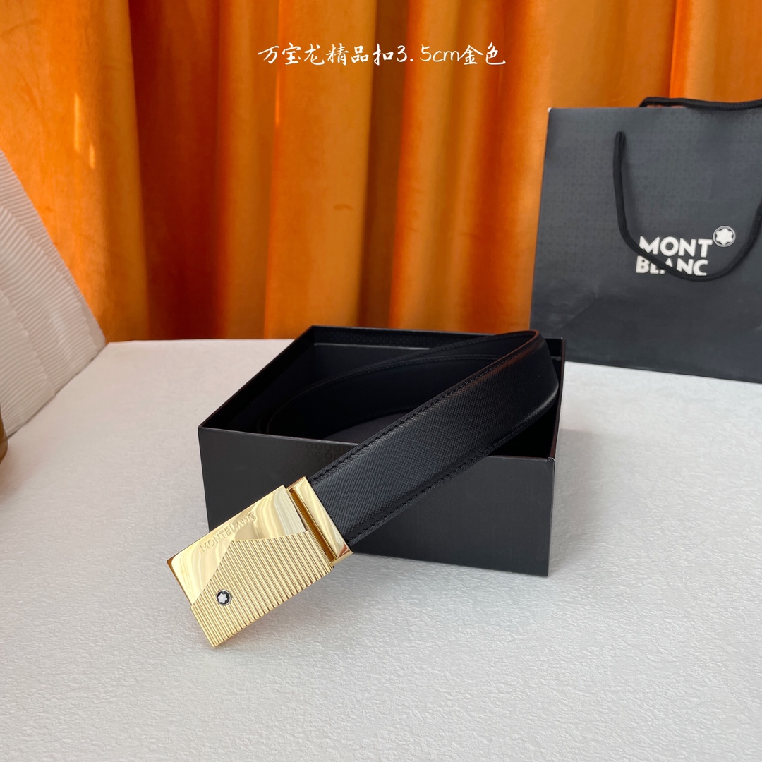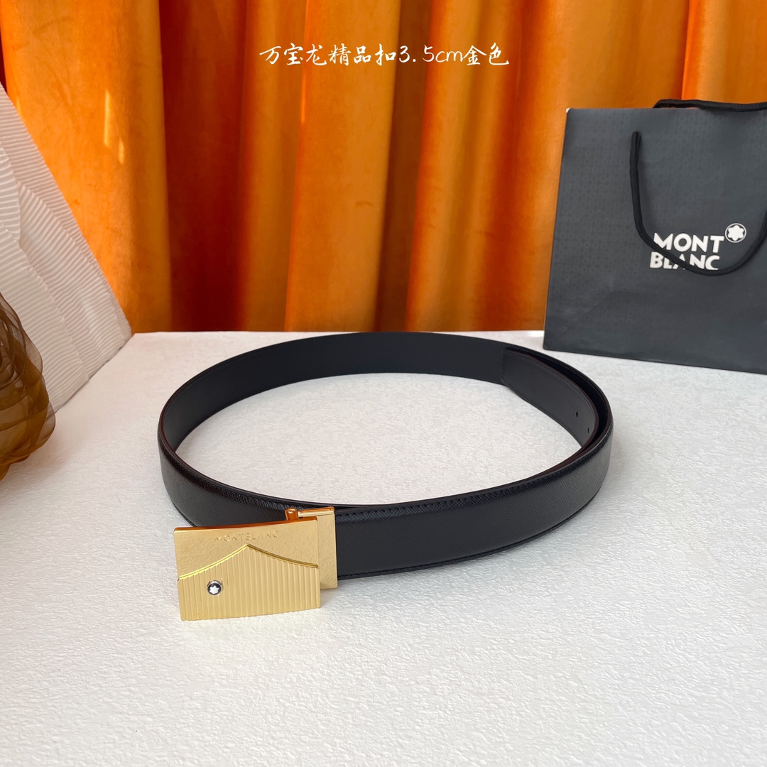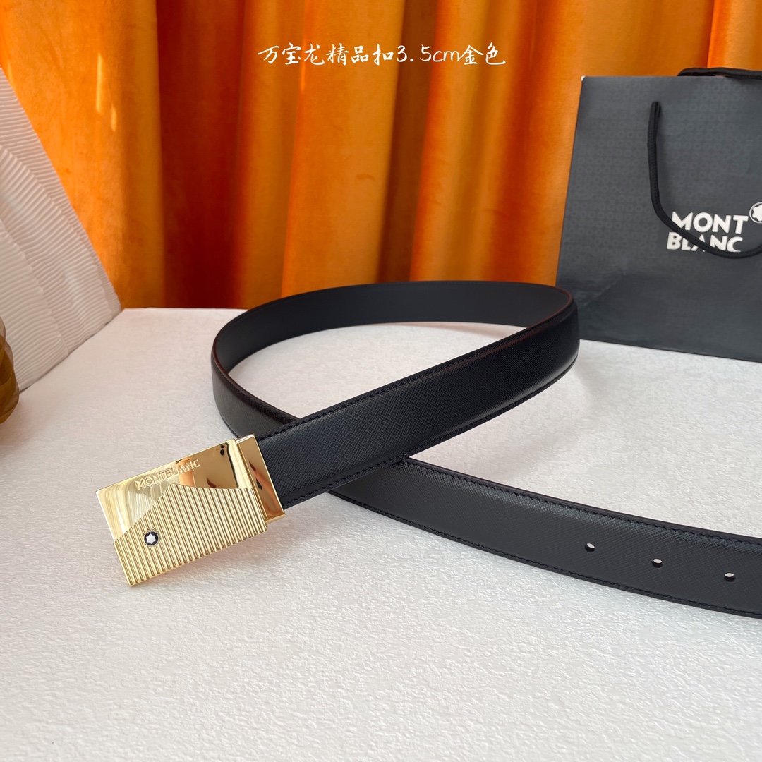 Montblanc men's leather belt, elegant style, imported calfskin, brass buckle, width 3.5cm.