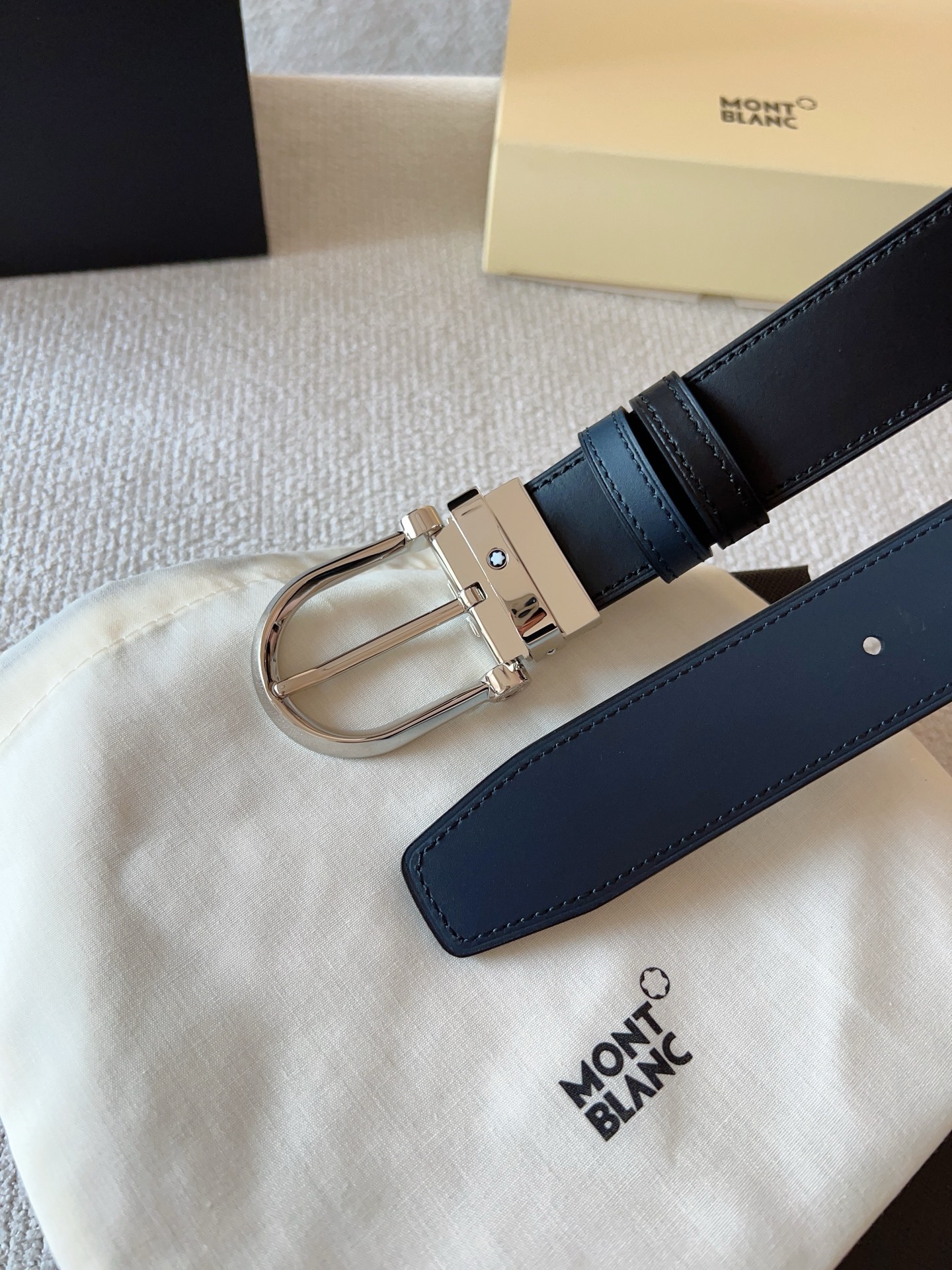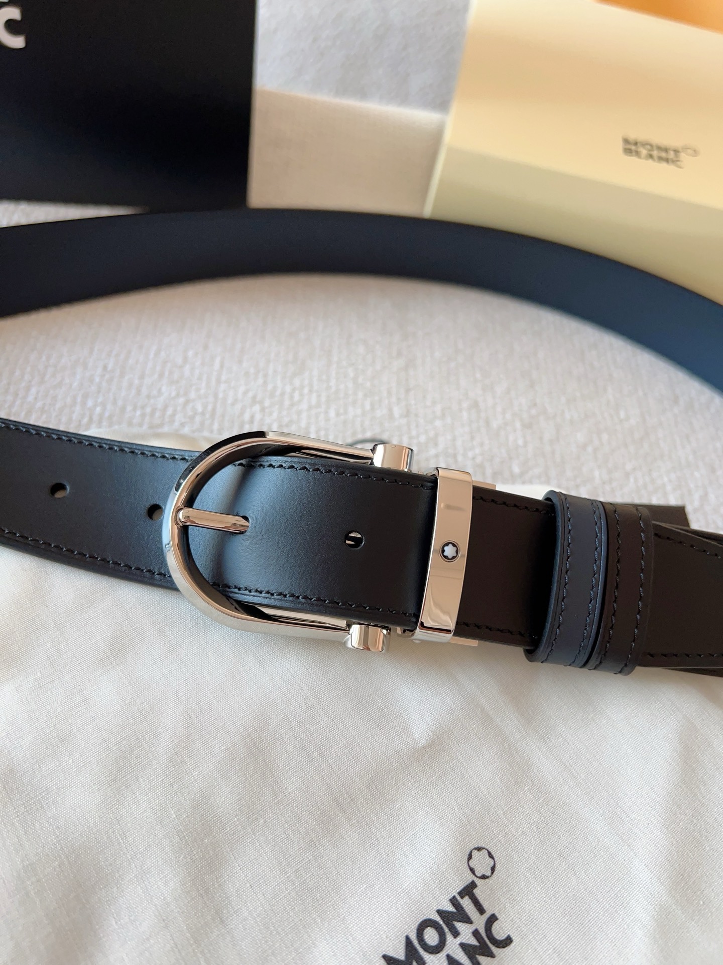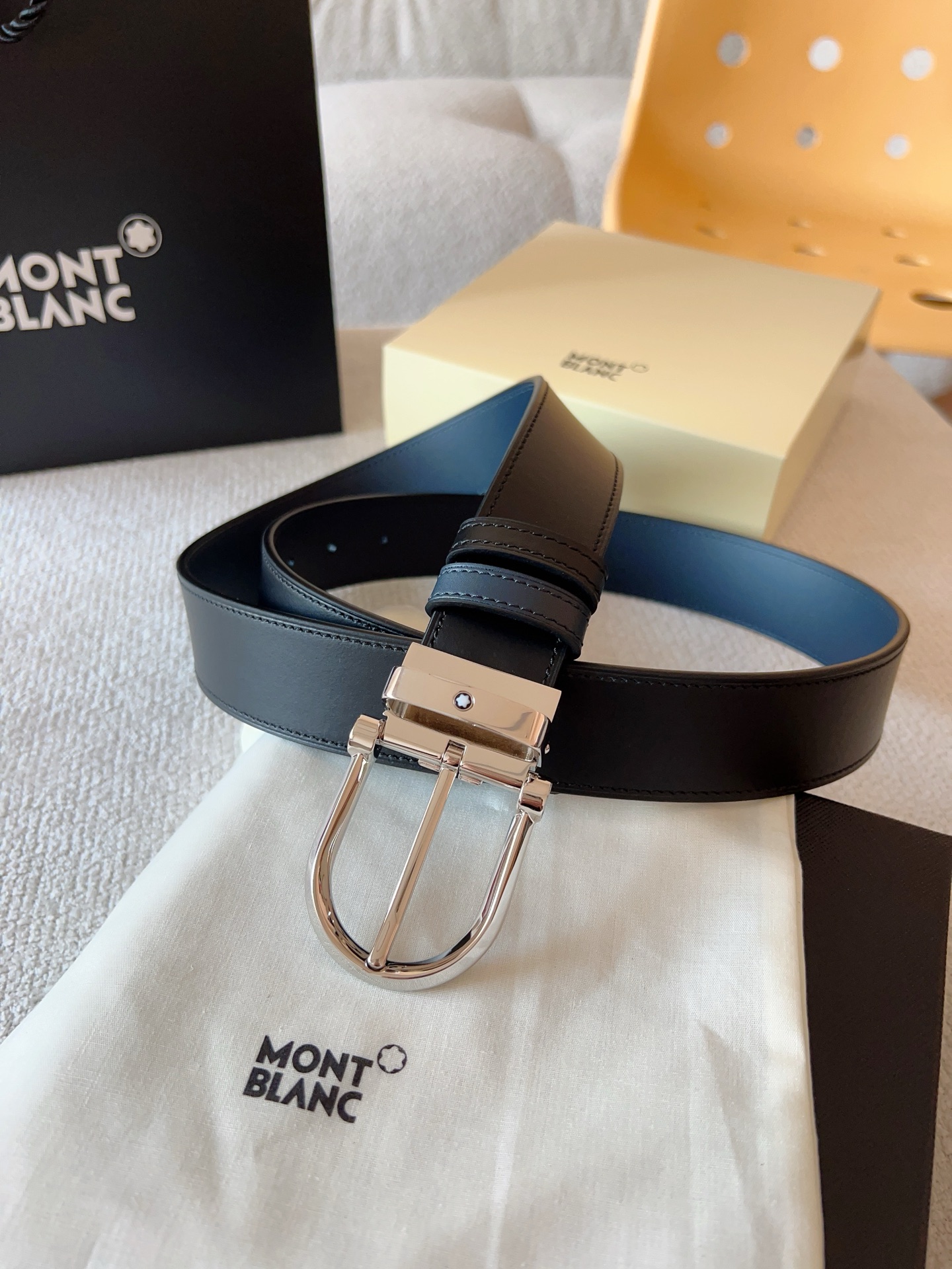 Montblanc new horseshoe buckle belt with 3D浮雕, adjustable dual-sided leather strap. 35mm width.