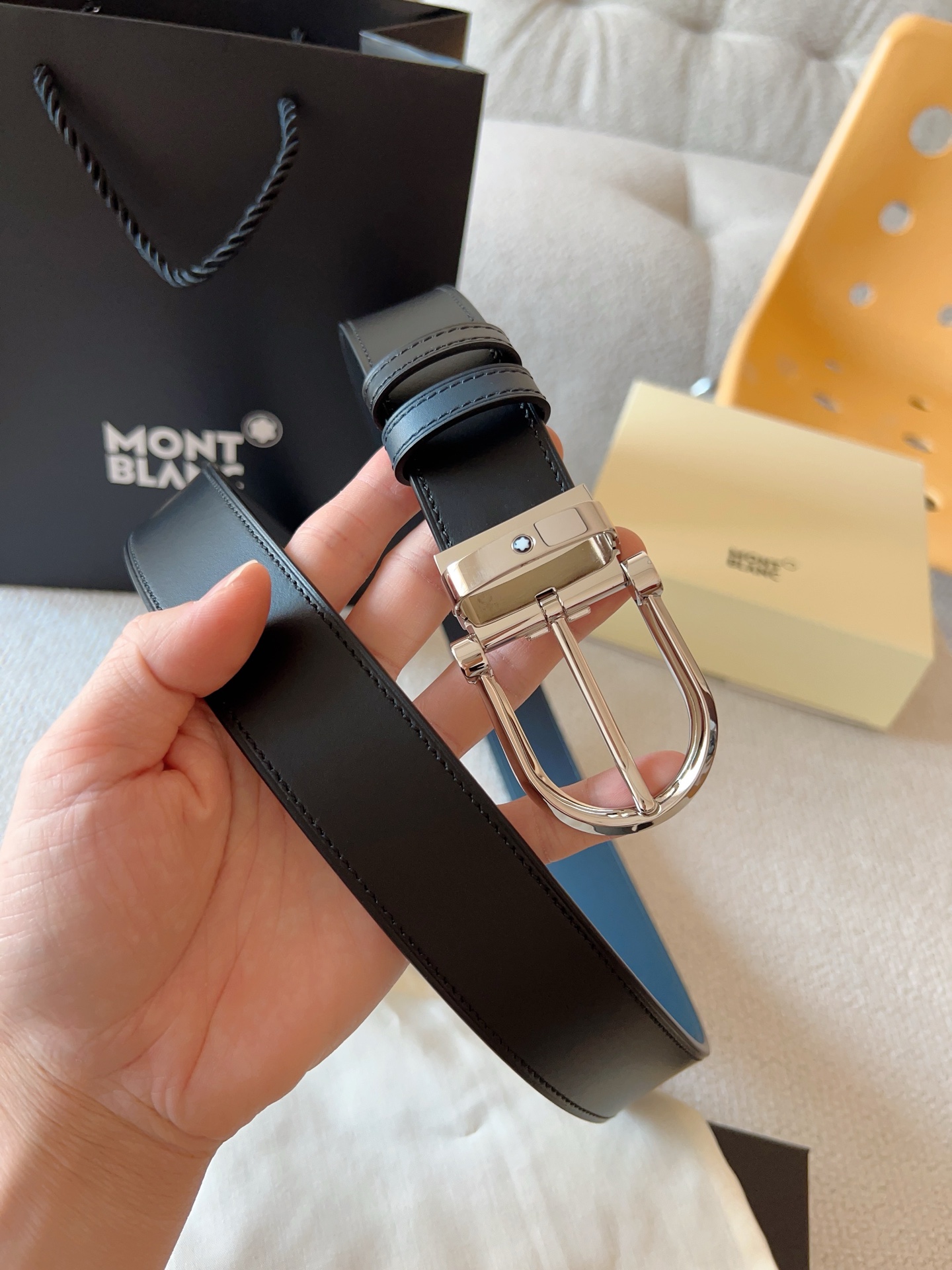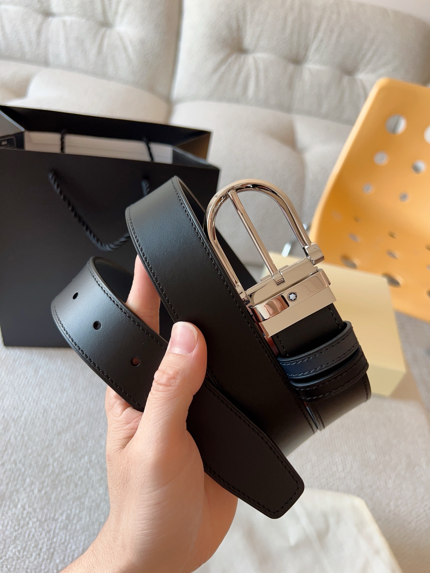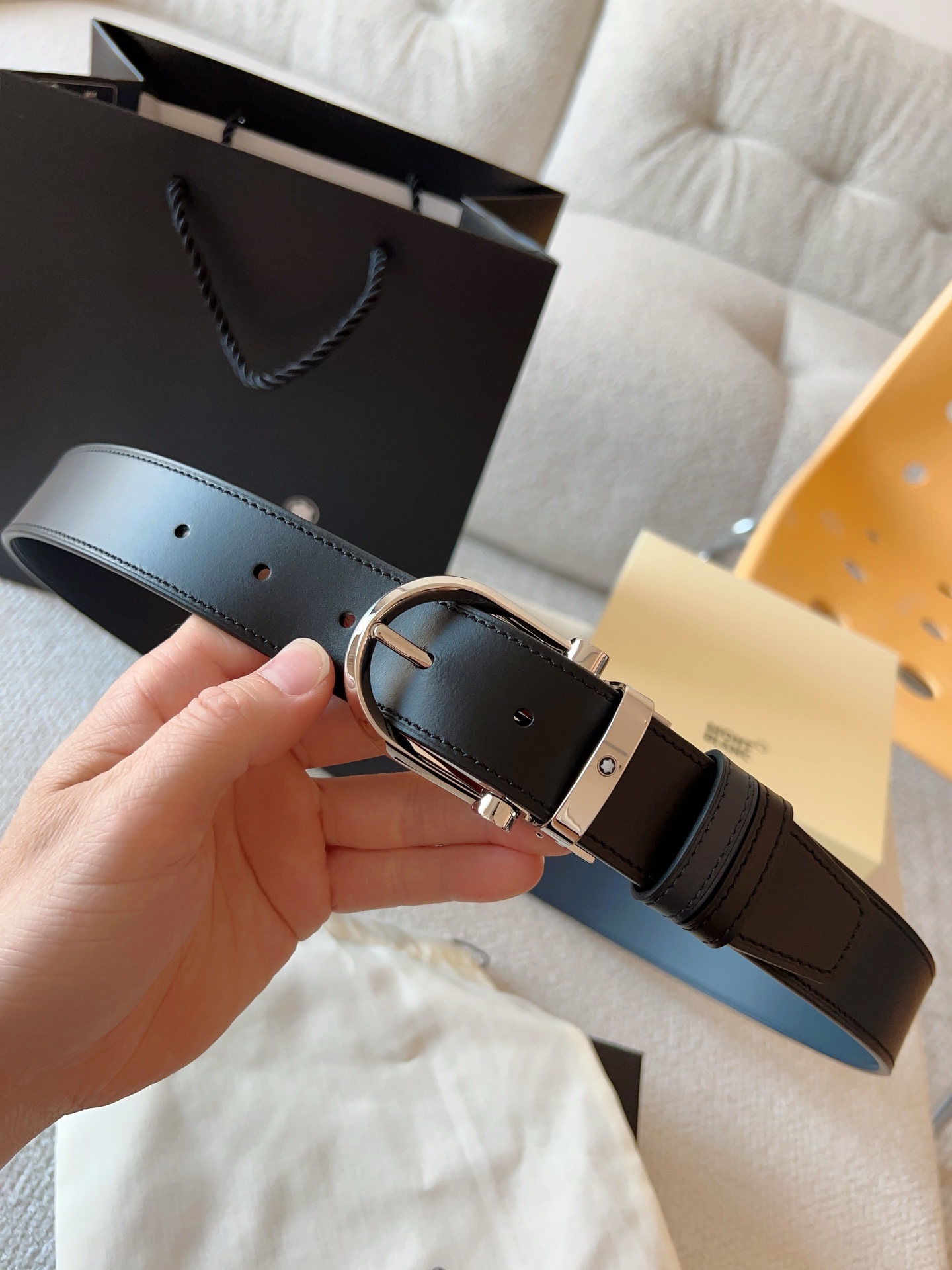 Montblanc new horseshoe buckle belt with 3D浮雕, adjustable dual-sided leather strap. 35mm width.